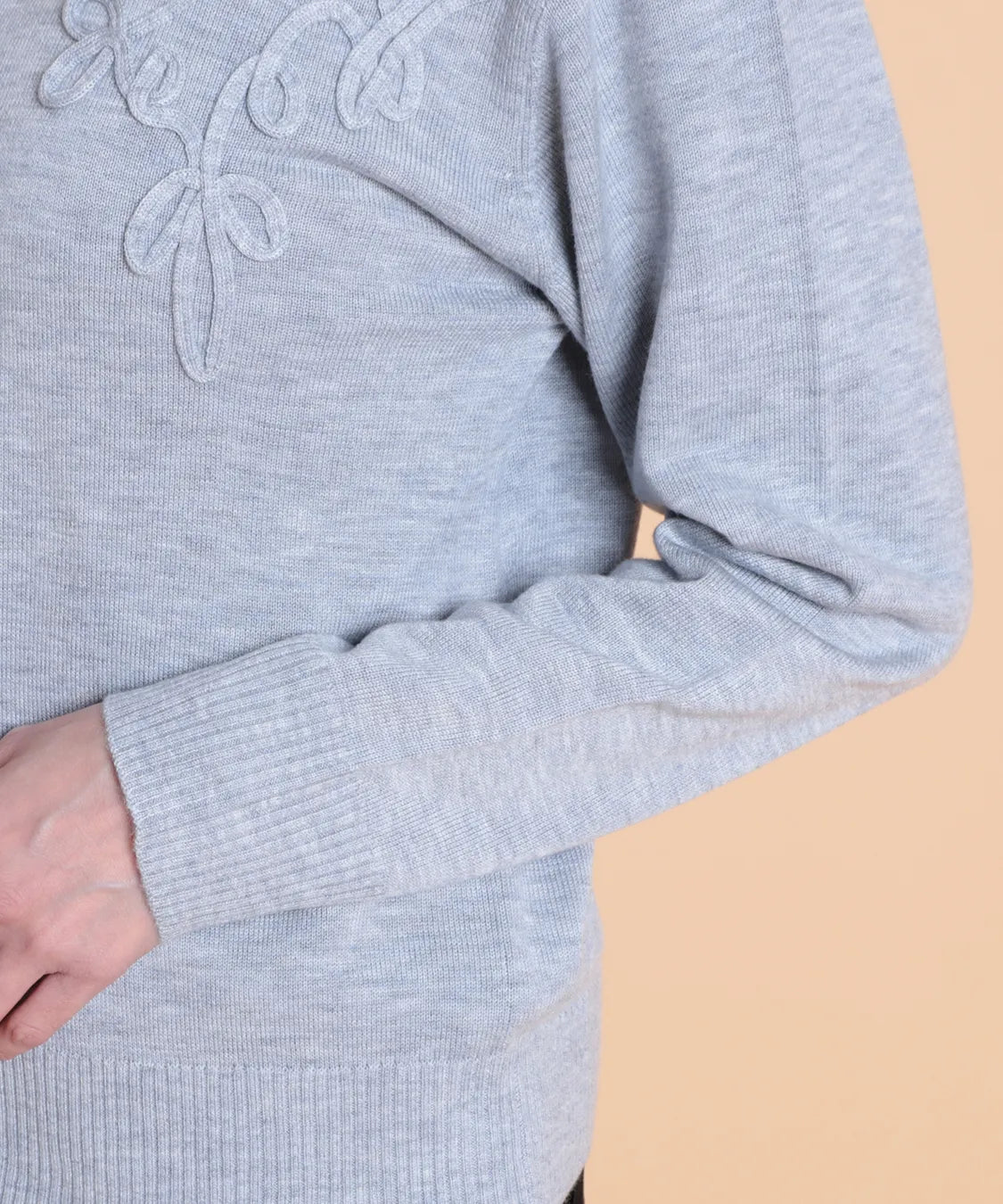 ・胸元にあしらった立体的なコード刺繍が、さりげないアクセント