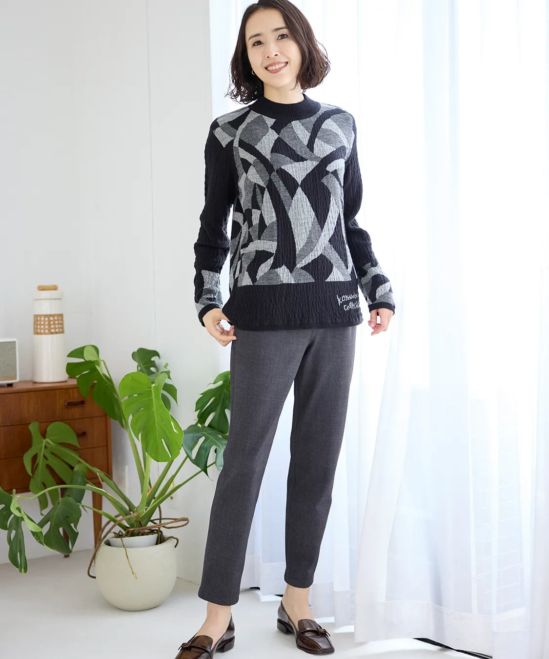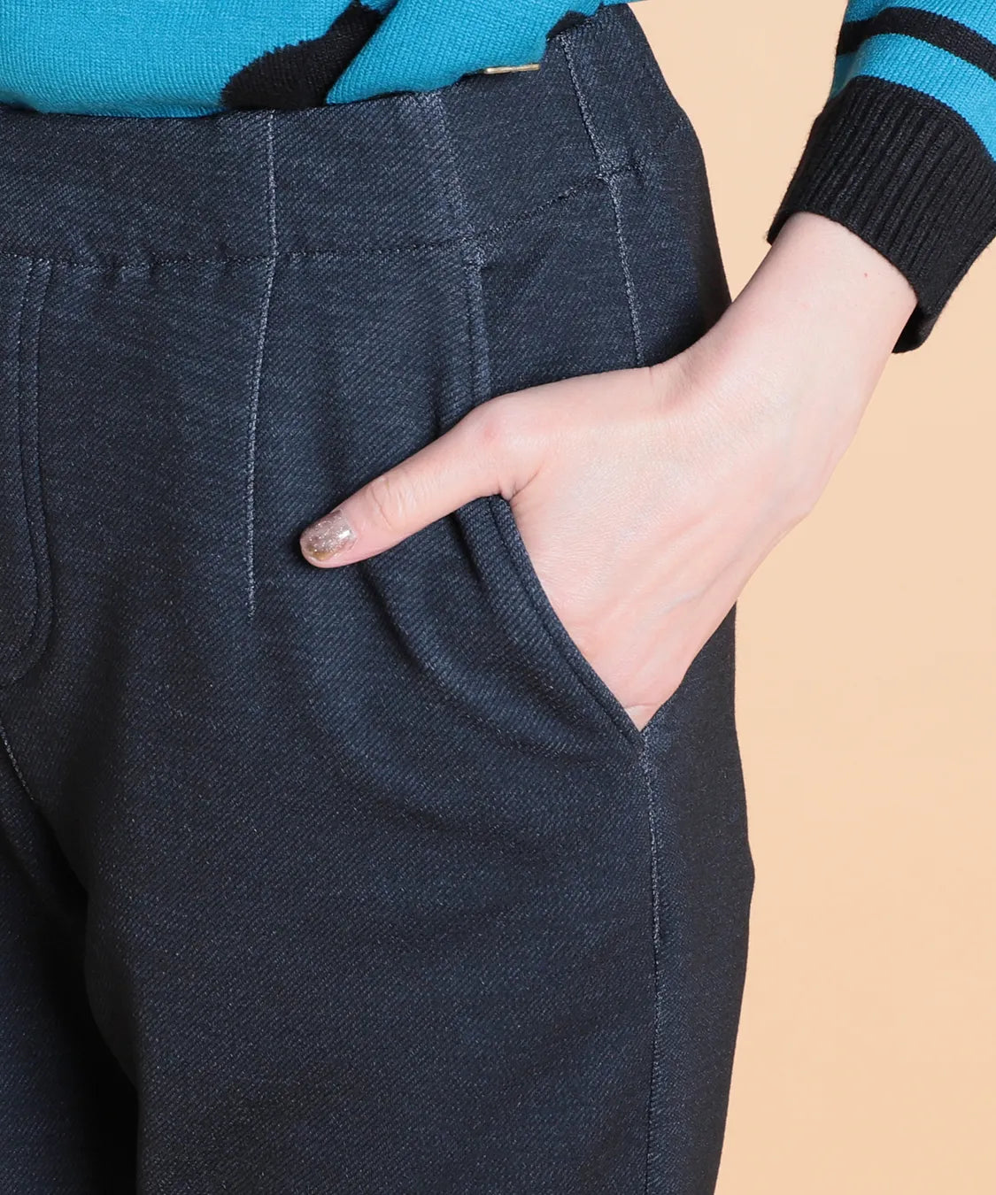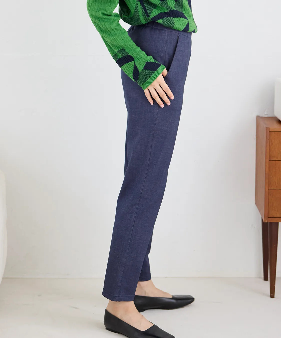 裏側がシャギー素材の暖かく着用できるパンツはストレッチ性も良く、ウエストは総ゴムでラクに履いていただけます。