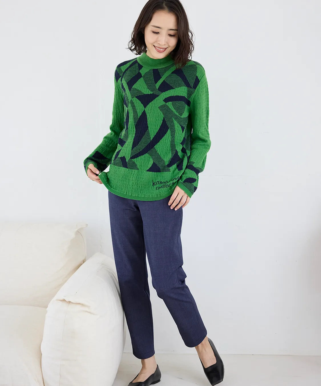 デニムプリントが無地感覚で、落ち着いたトーンは大人のコーデと相性抜群。
