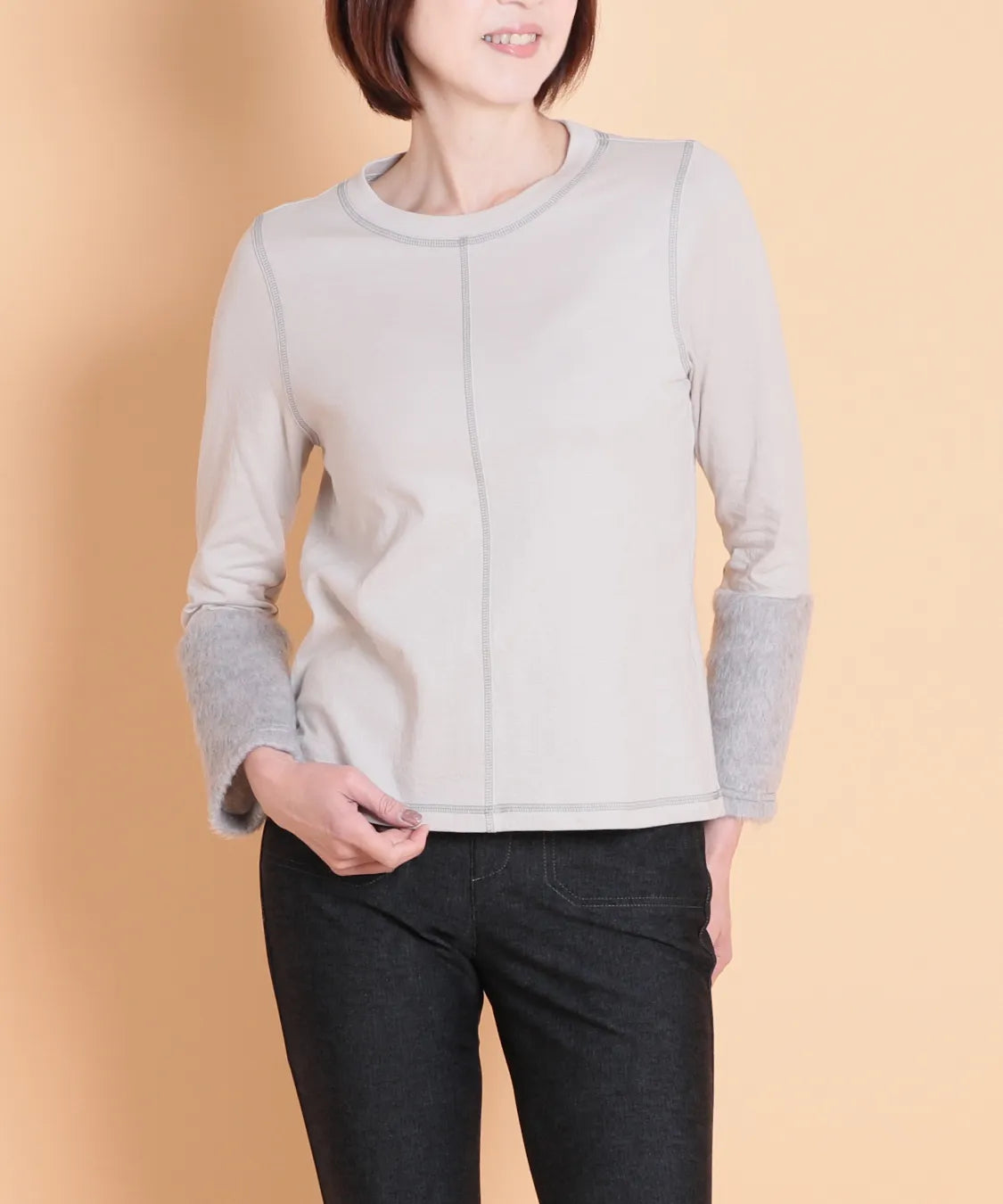 袖口のふわふわ素材がポイントの長袖カットソー。
