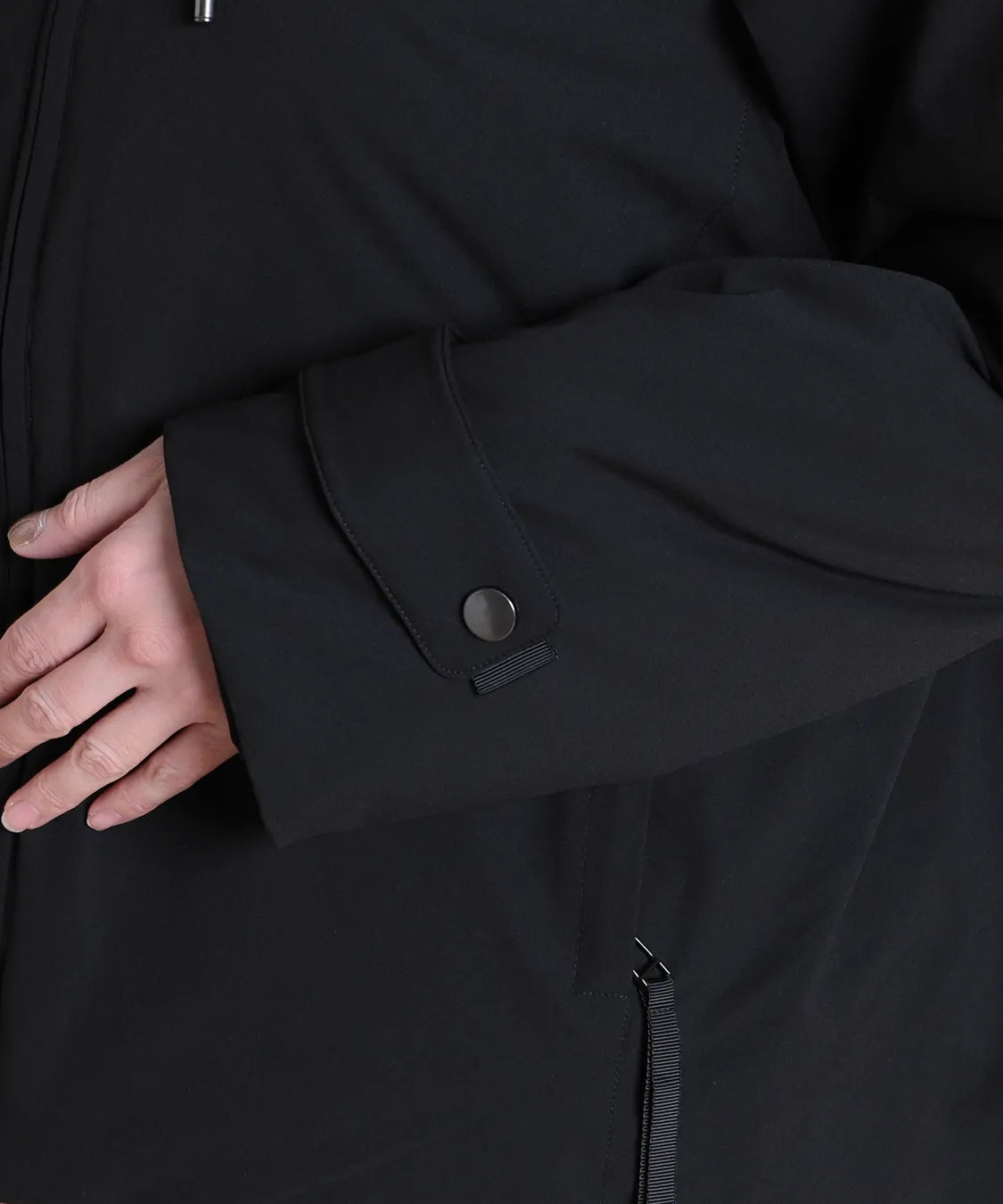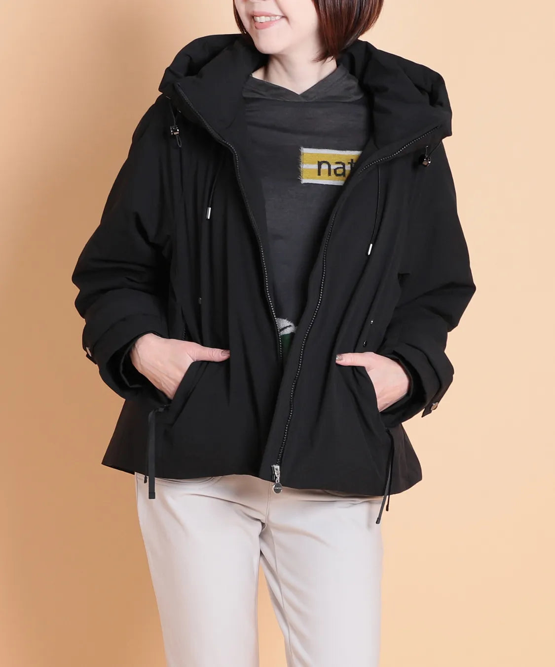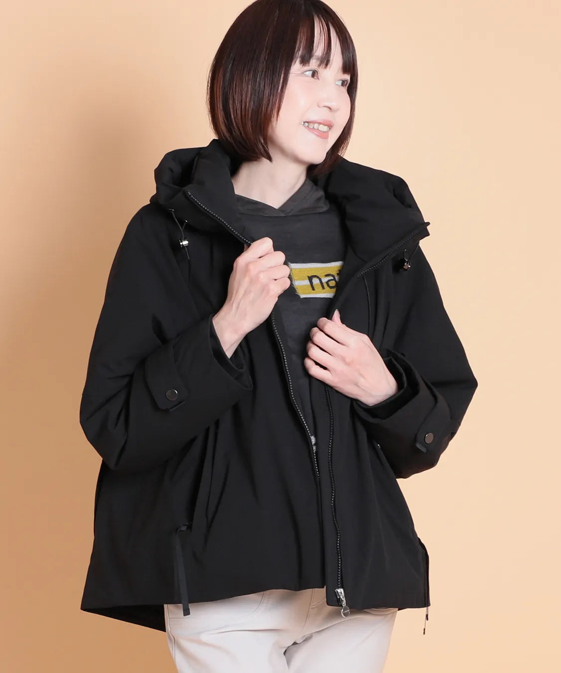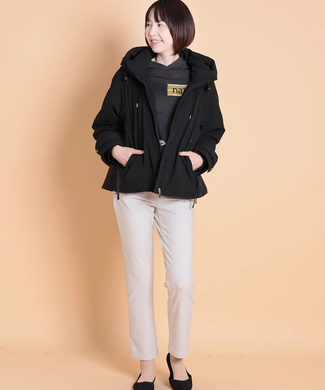 程よいゆとりがありながらも着膨れしにくいバランスで、毎日の防寒に活躍。フード付きで首元までしっかり暖かく、風を防いで快適に着られます。