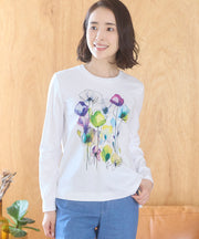 繊細な水彩画タッチのフラワープリントが目を引く大人フェミニンTシャツ