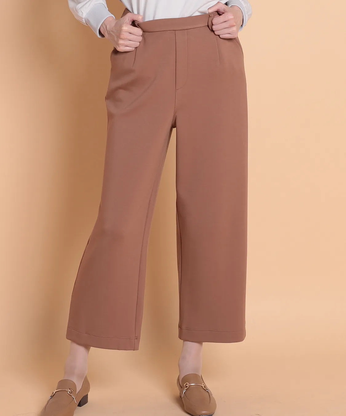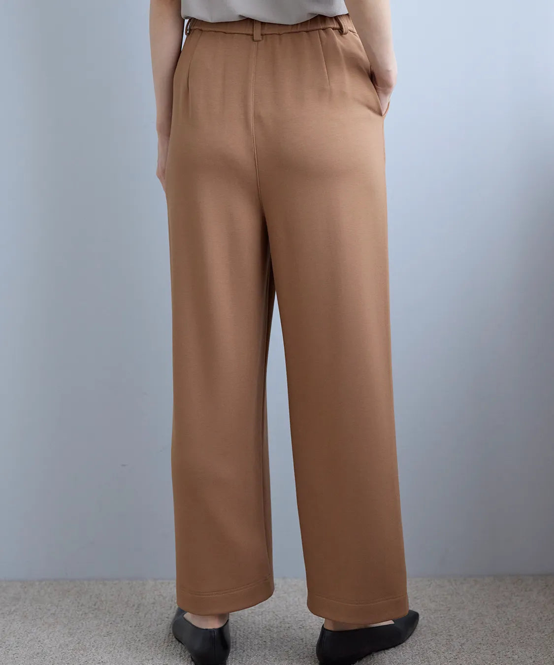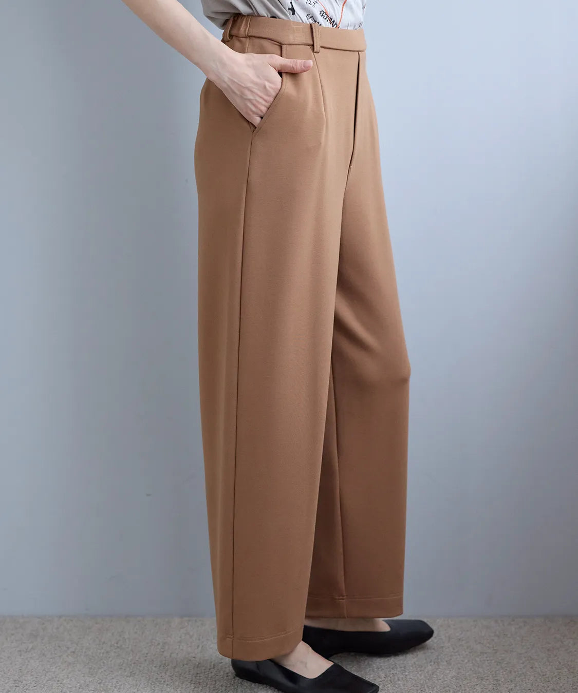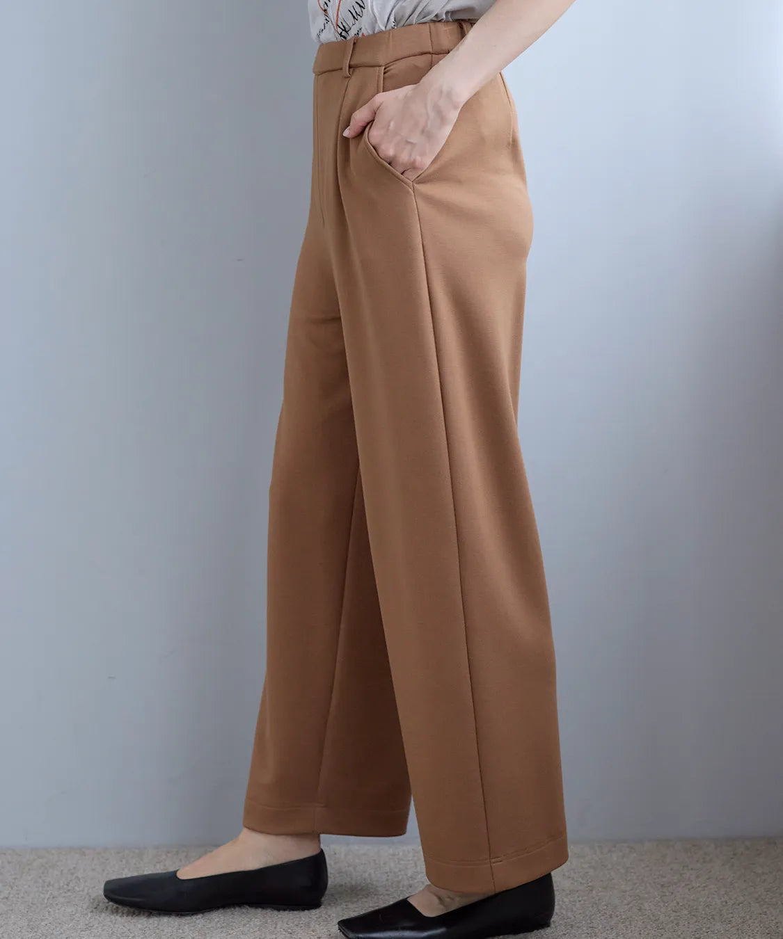 上品なワイドシルエットと柔らかなポンチ素材が魅力の、大人のためのワイドパンツ。