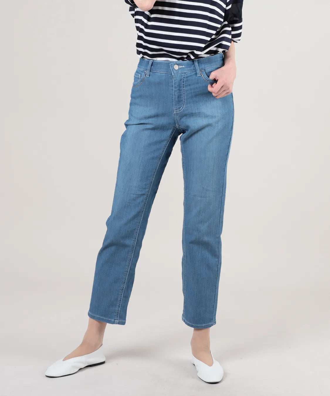 軽やかに美しく決まる、大人のデニムパンツ