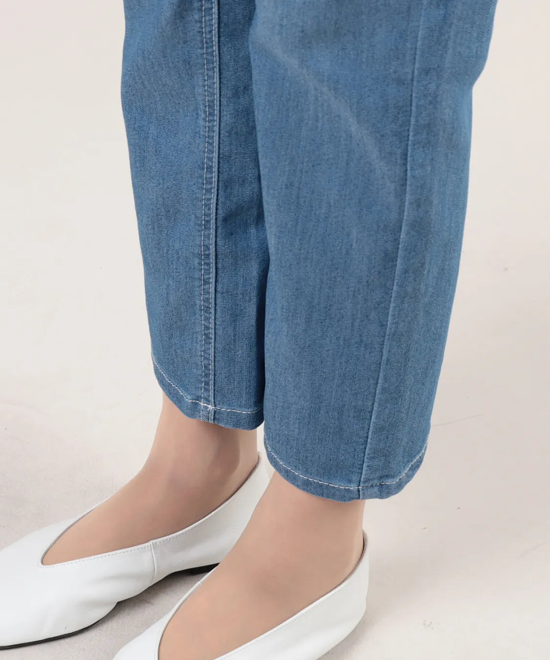 軽やかな色合いが魅力のホワイトヤーンデニムパンツ。