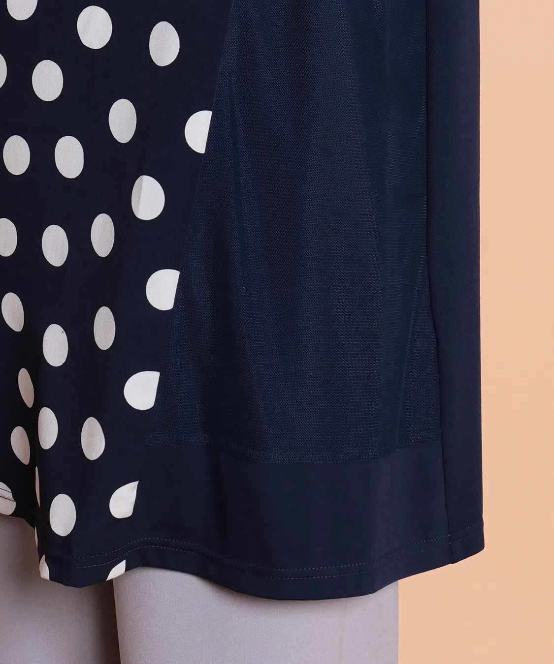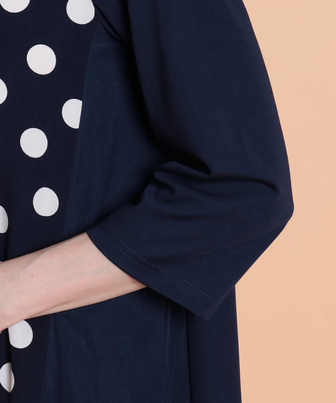 ・無地の袖とのコンビネーションで、甘すぎない大人のドット柄に