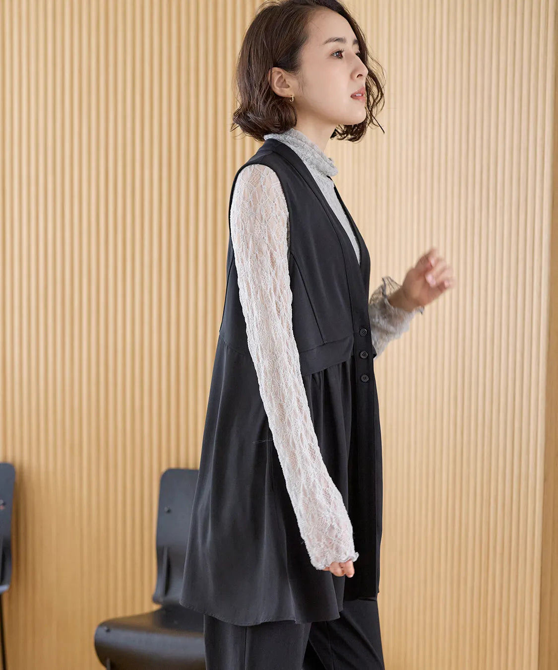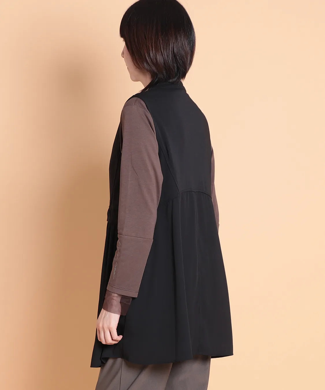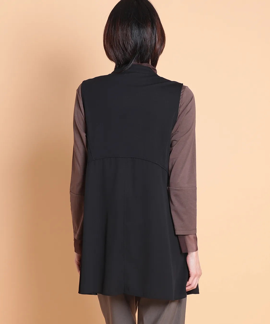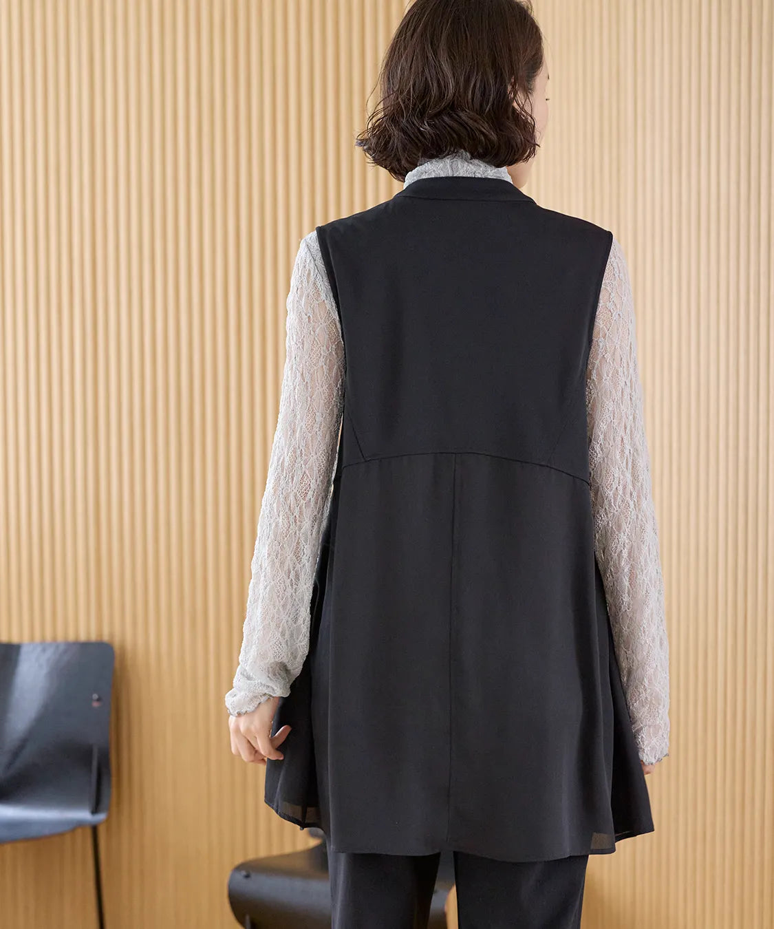 計算されたシルエットで美しいラインを描く、大人のためのロングベスト。