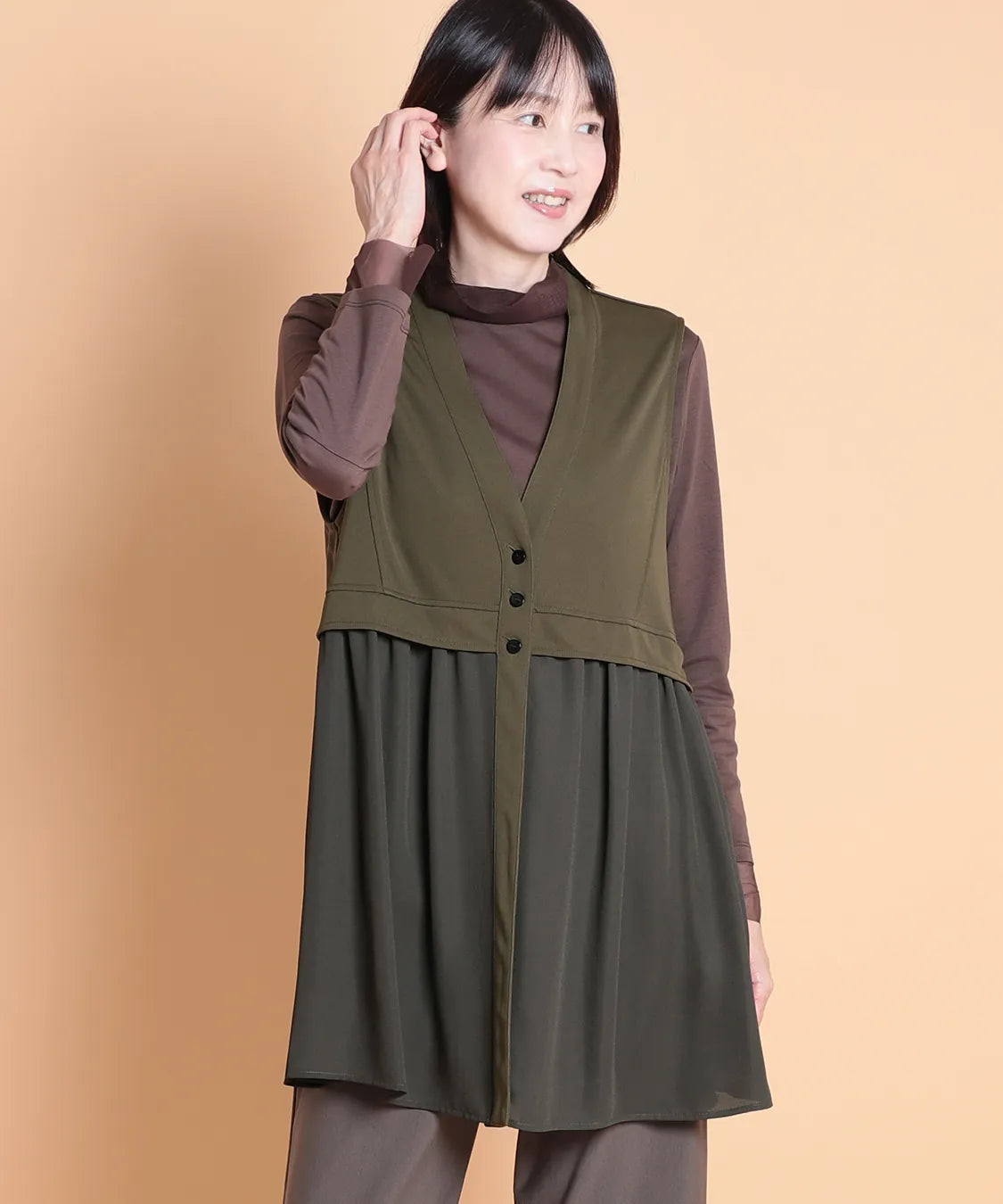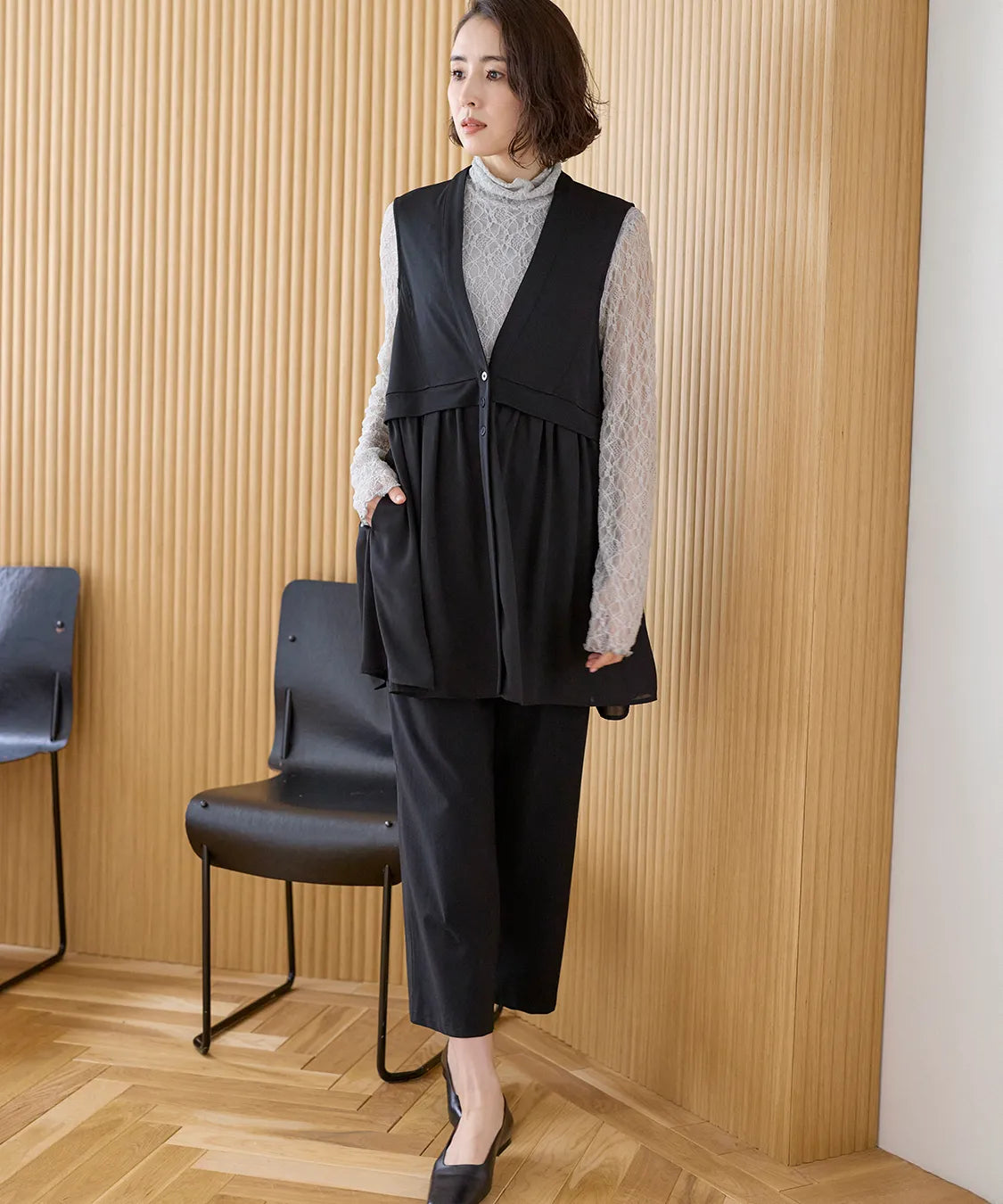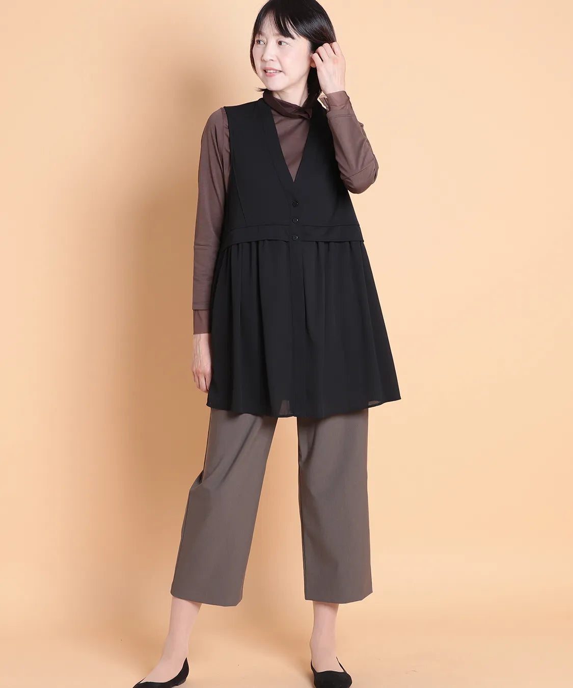 計算されたシルエットで美しいラインを描く、大人のためのロングベスト。