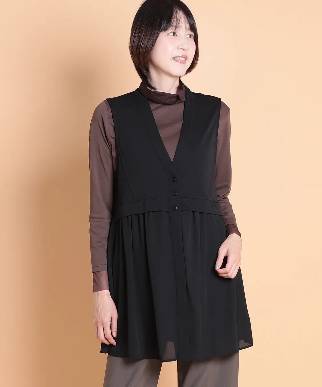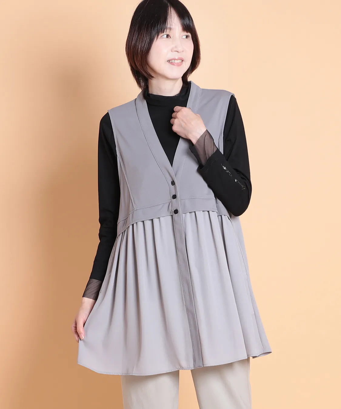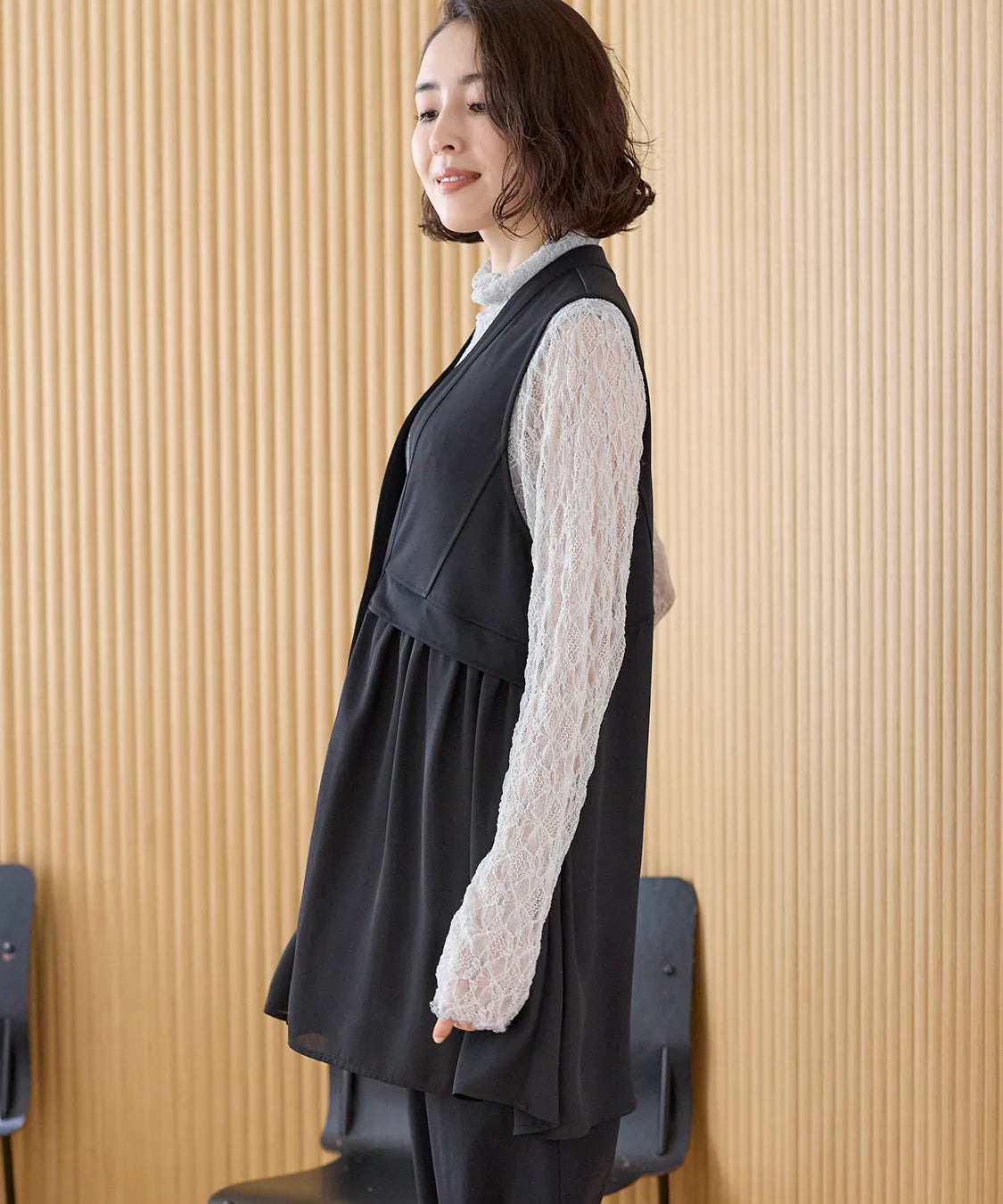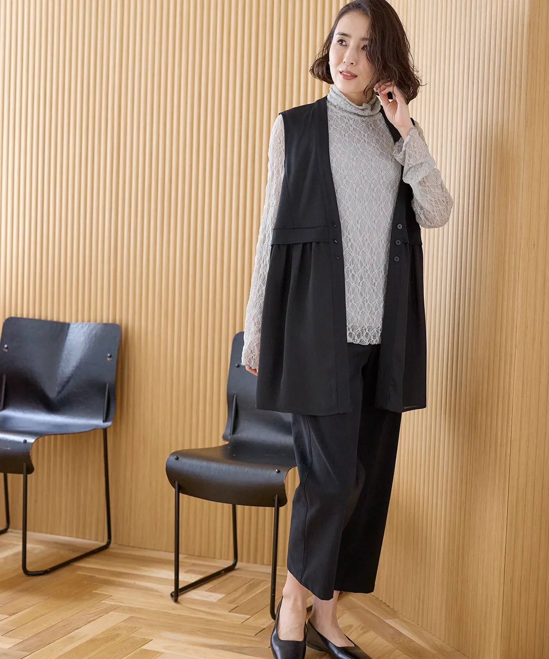計算されたシルエットで美しいラインを描く、大人のためのロングベスト。