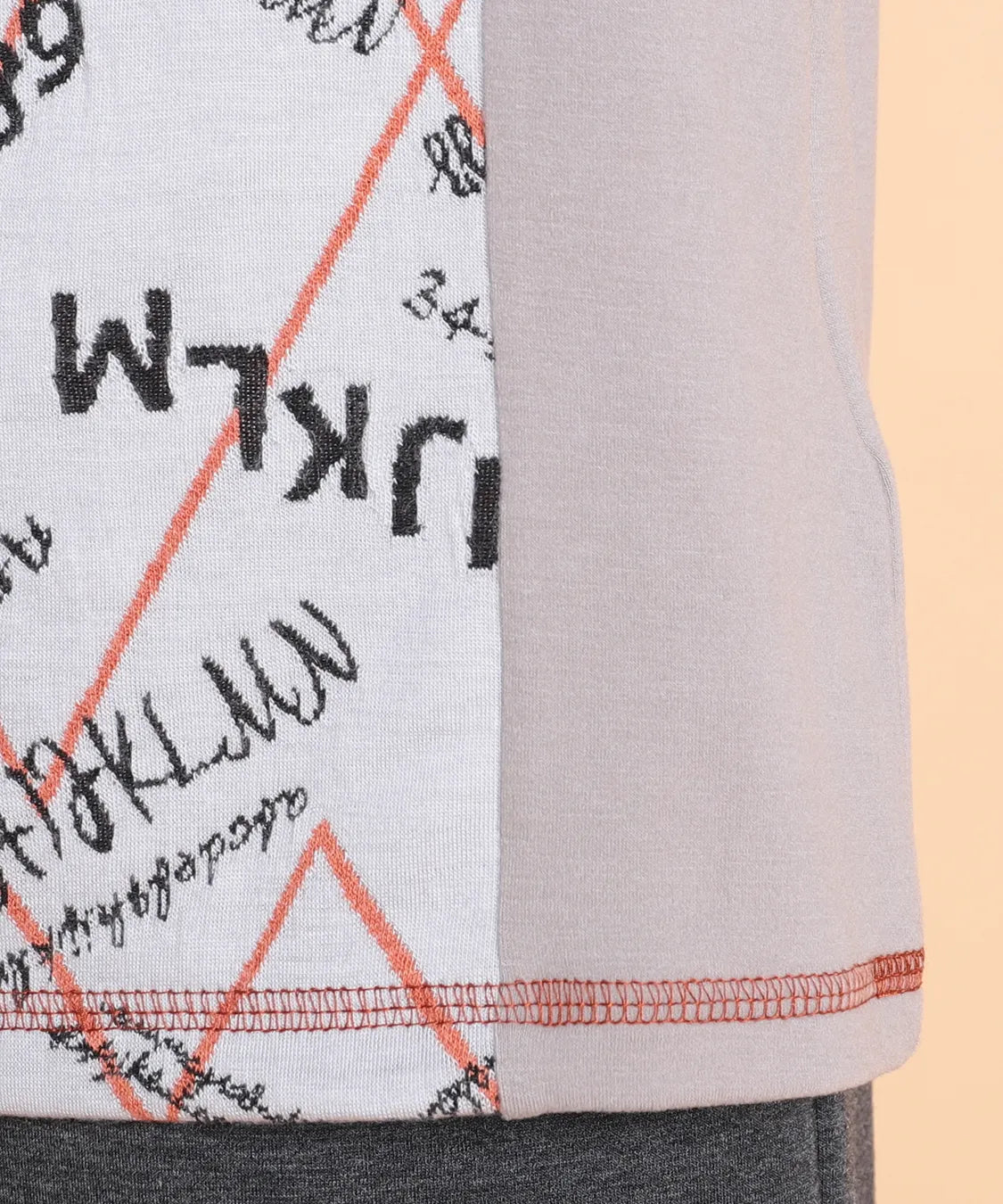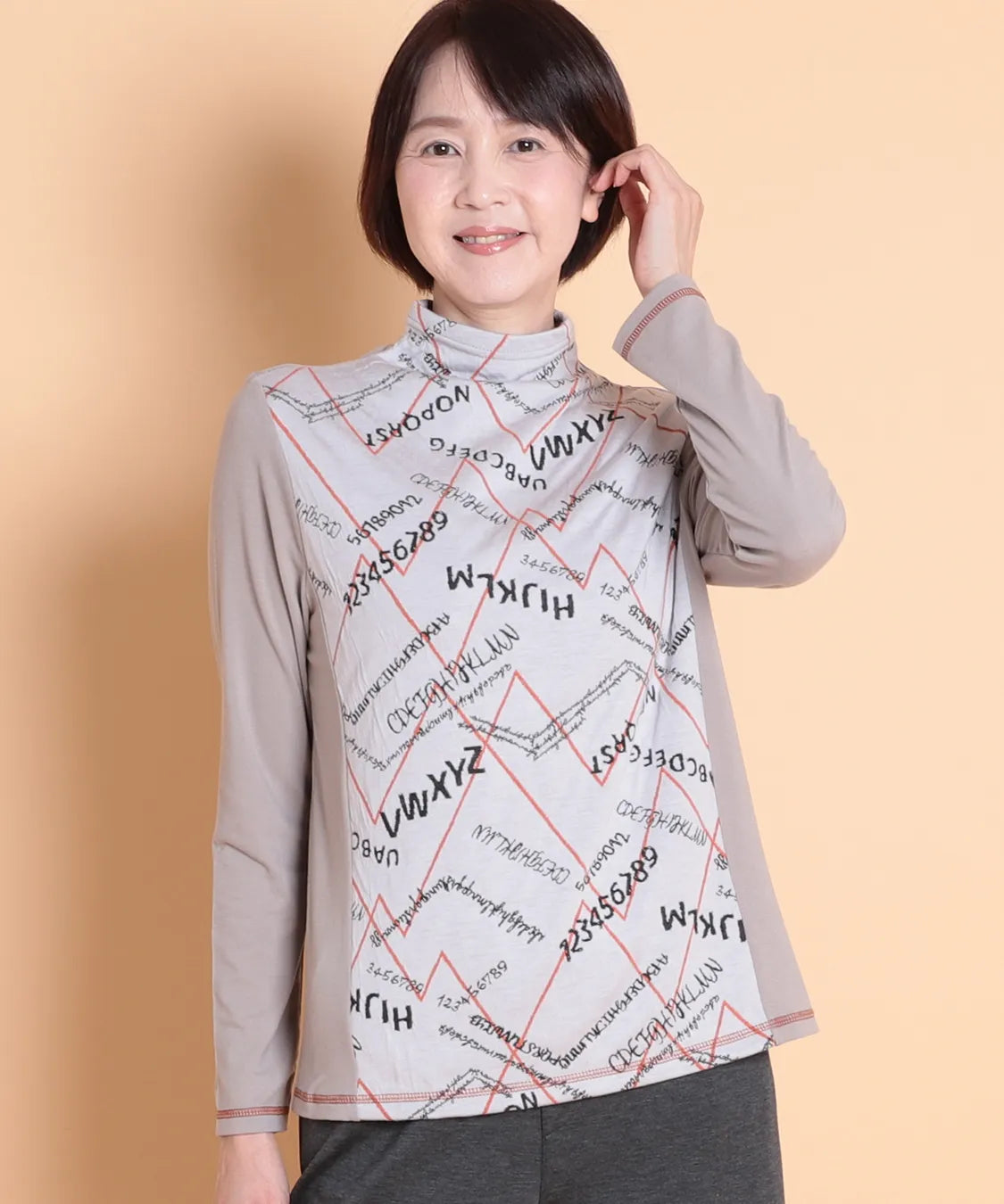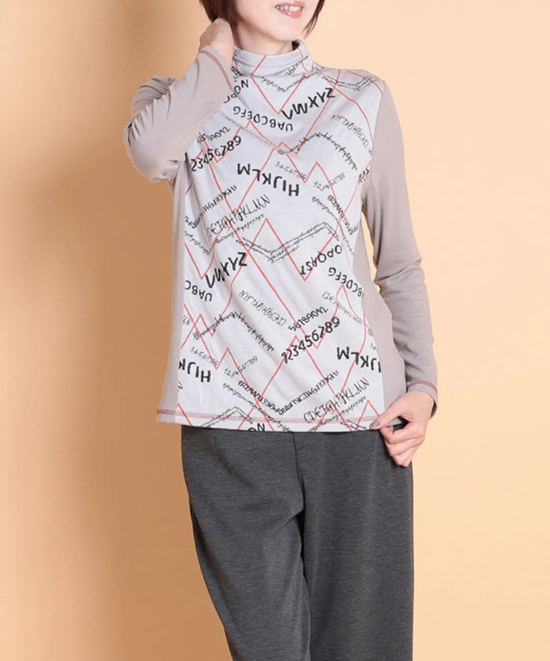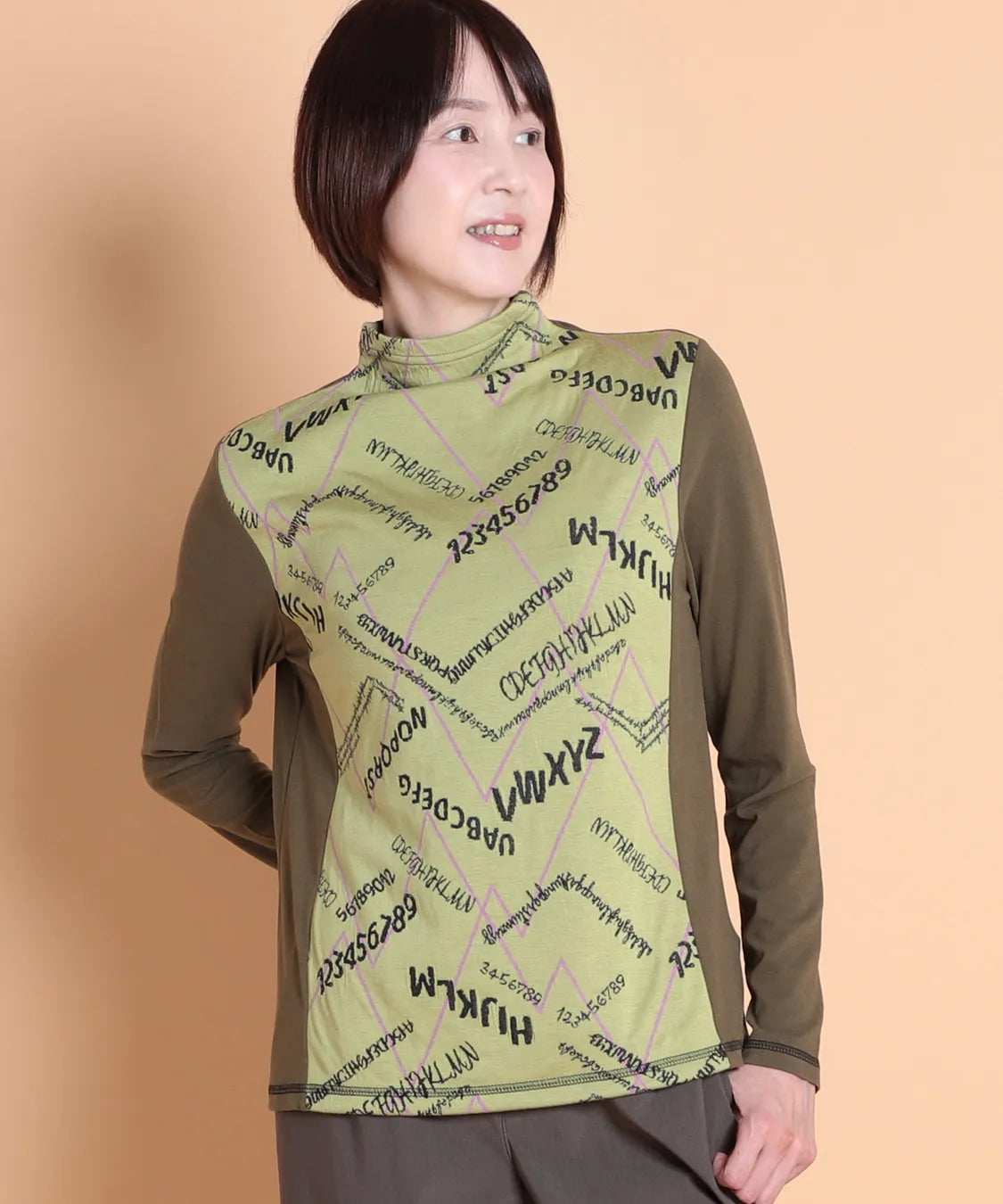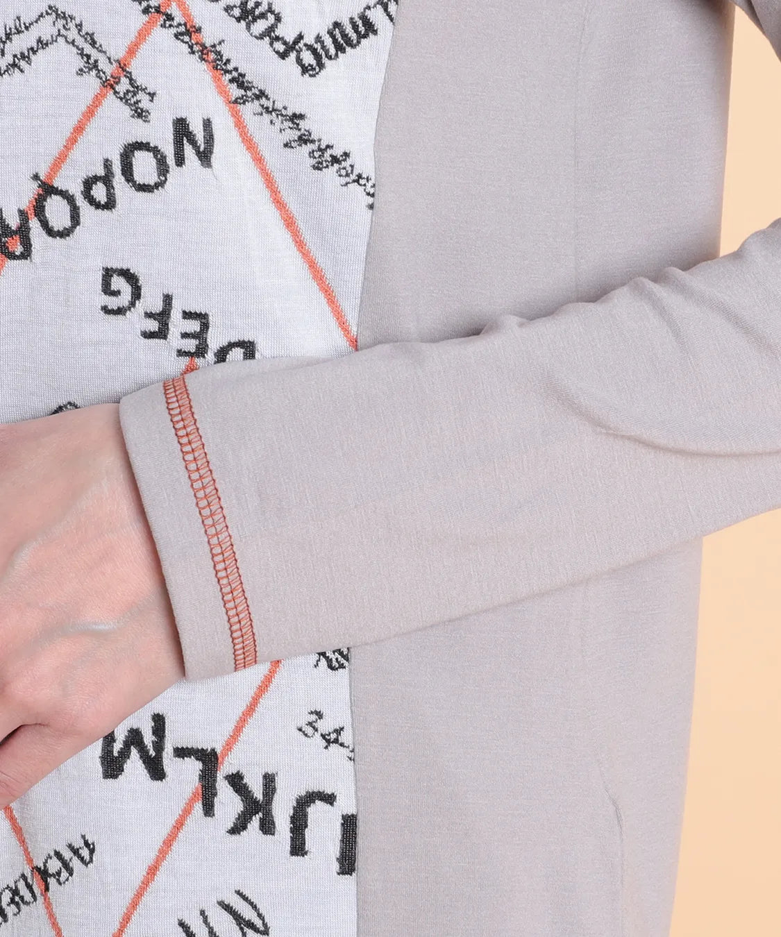 ・ジャカード柄の前身頃で、英字や数字が並ぶグラフィカルなデザイン。一枚でスタイリングが決まる存在感