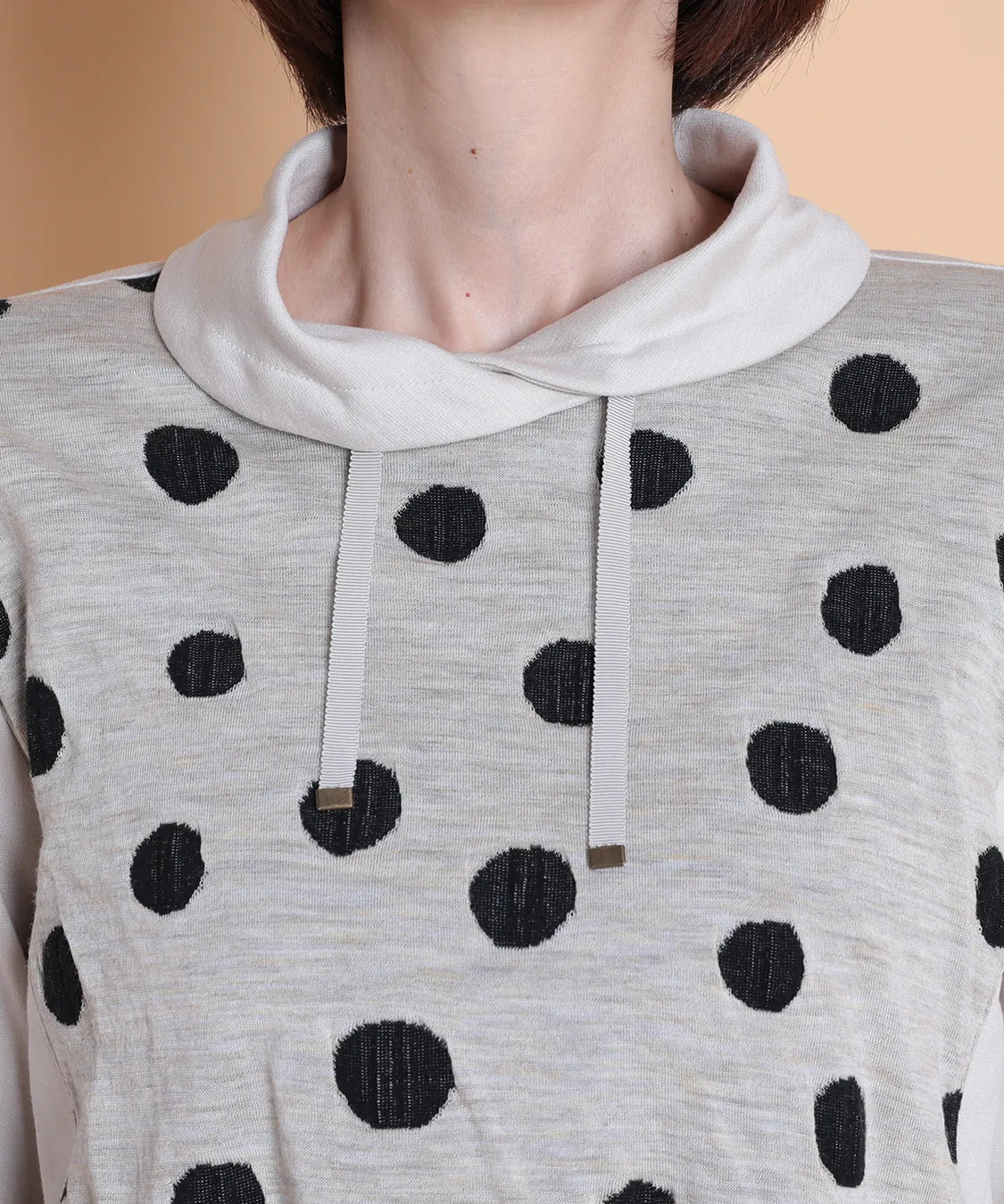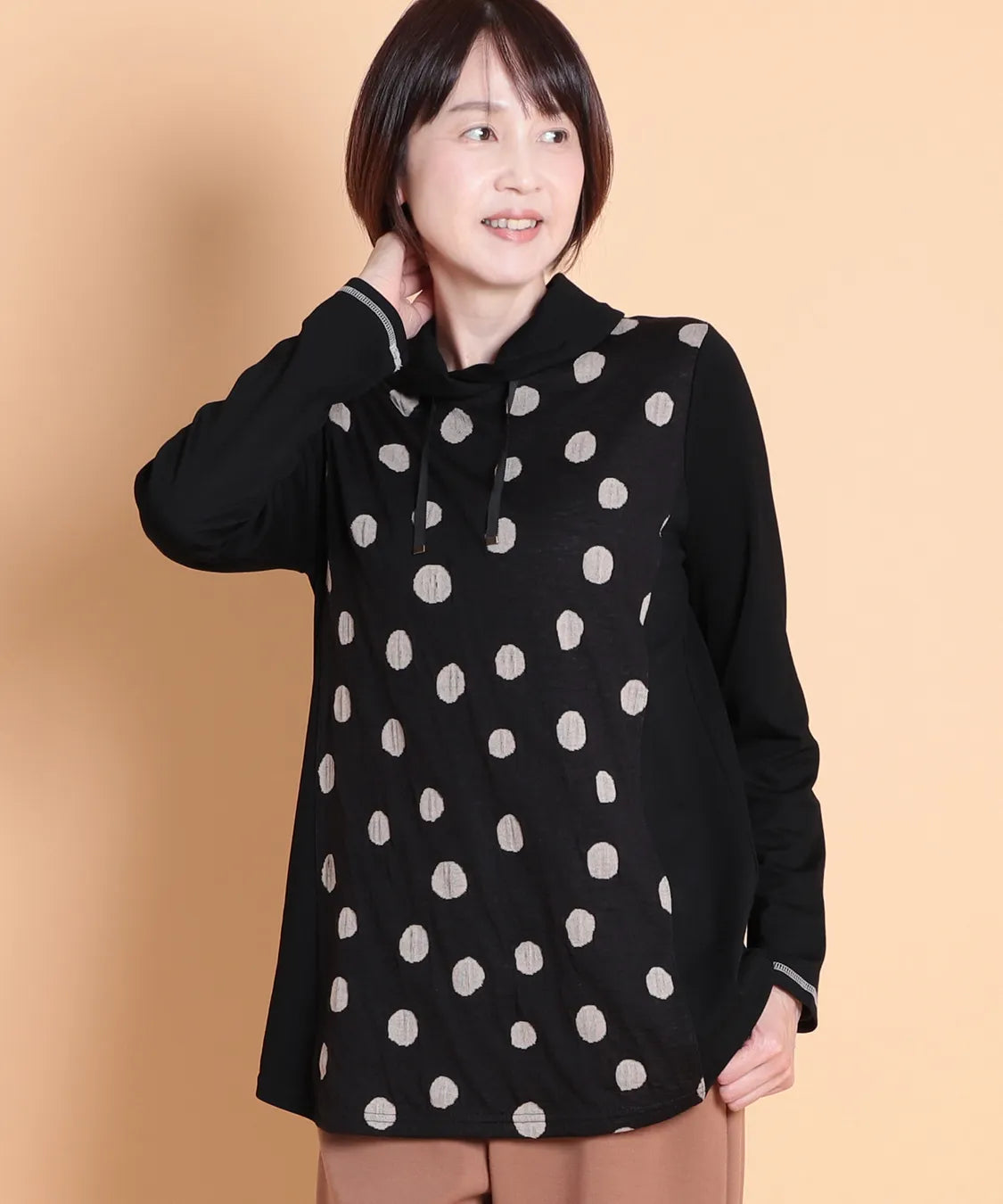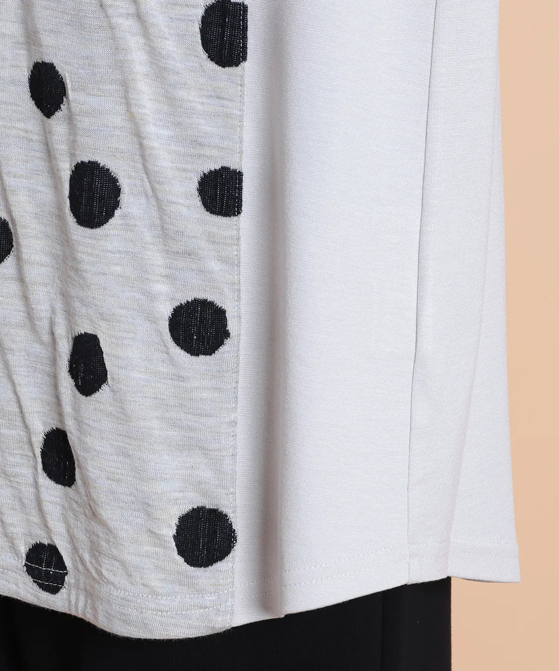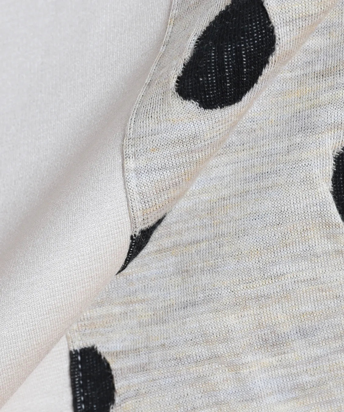 カットジャガードで施された立体的なドット柄が目を惹く、異素材ミックスのチュニック。