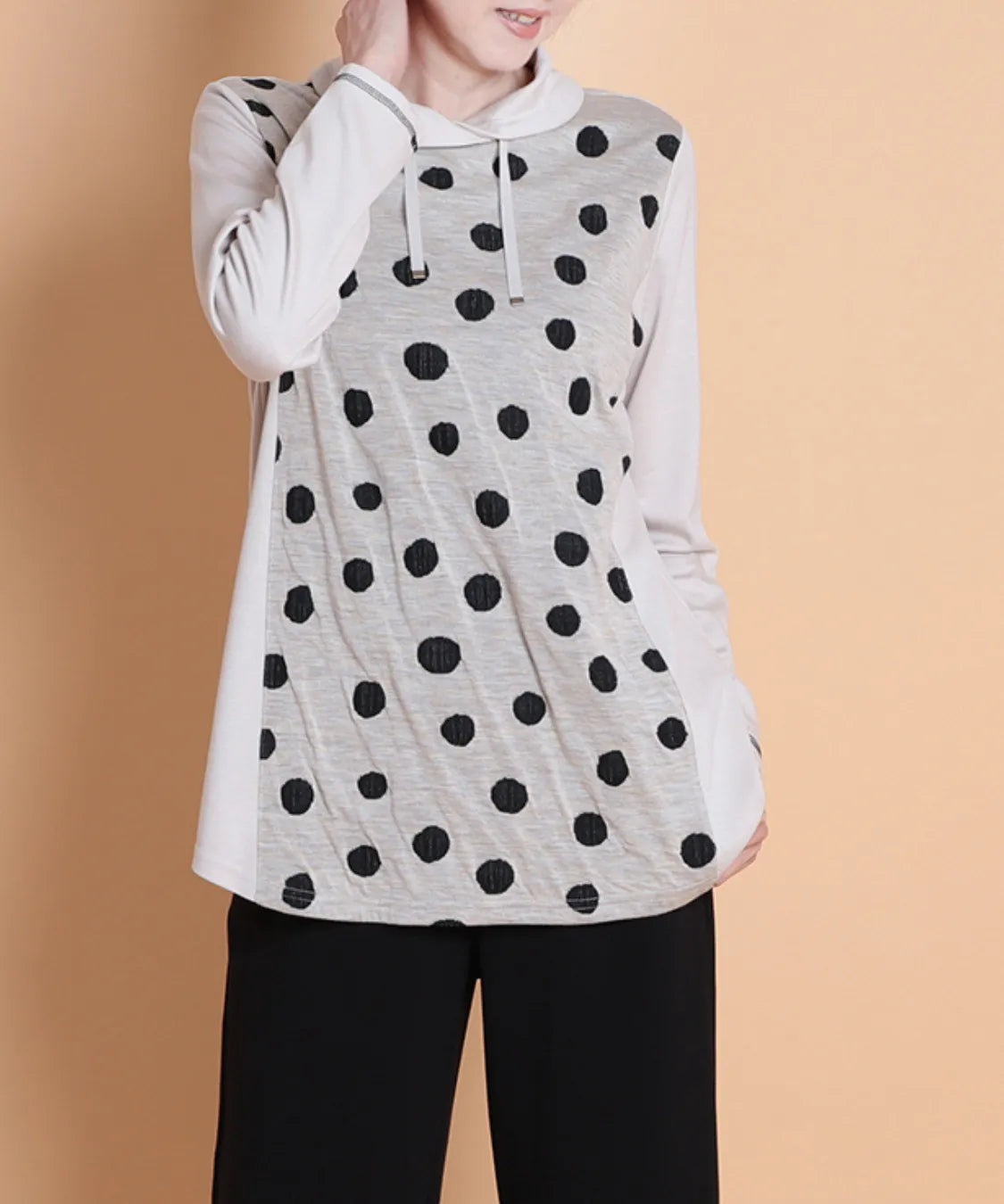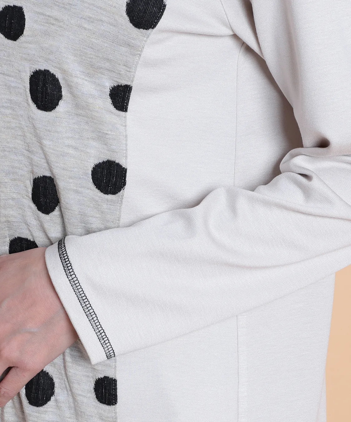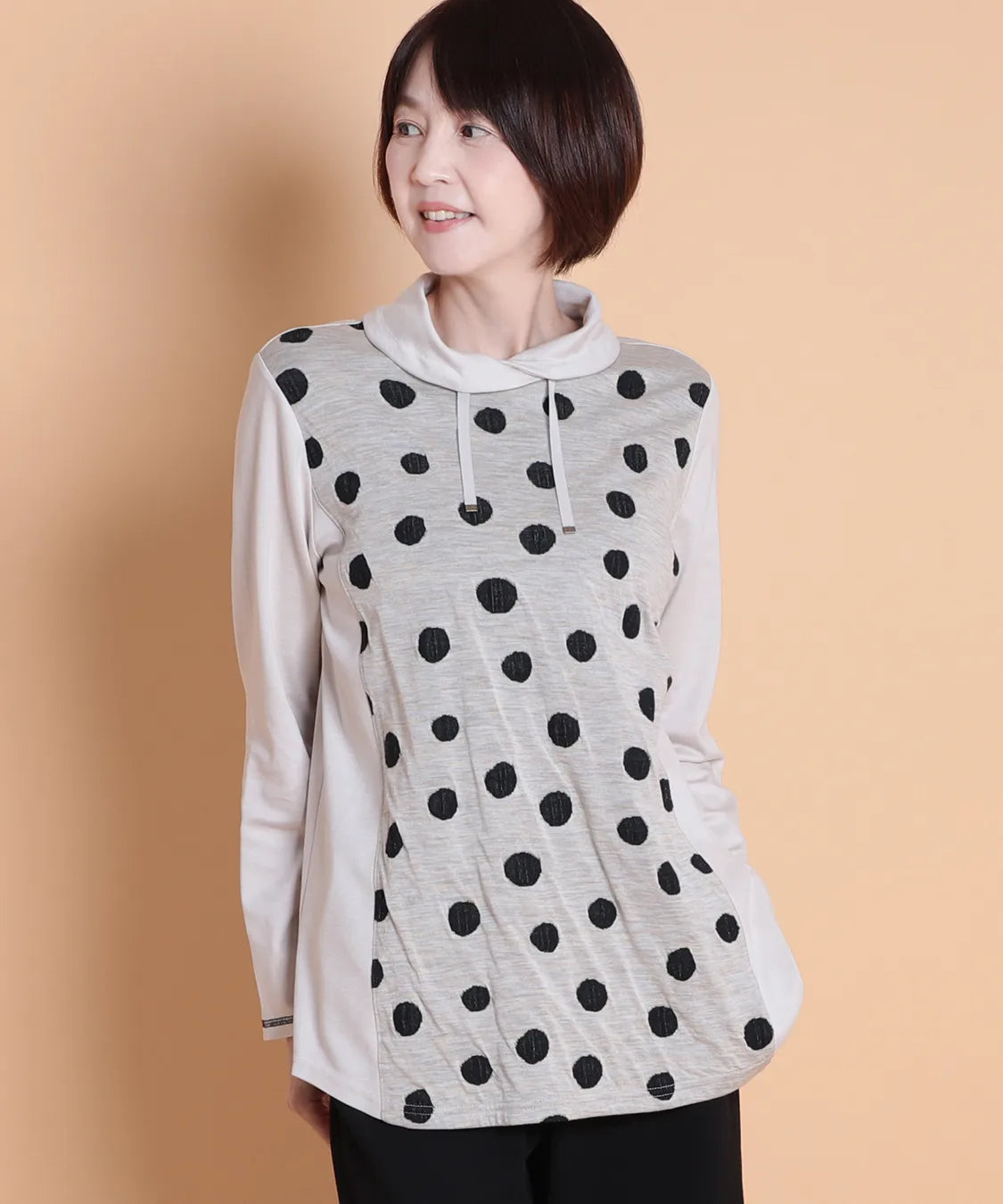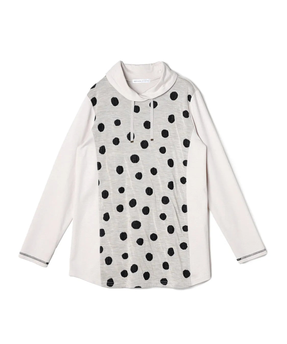 カットジャガードで施された立体的なドット柄が目を惹く、異素材ミックスのチュニック。