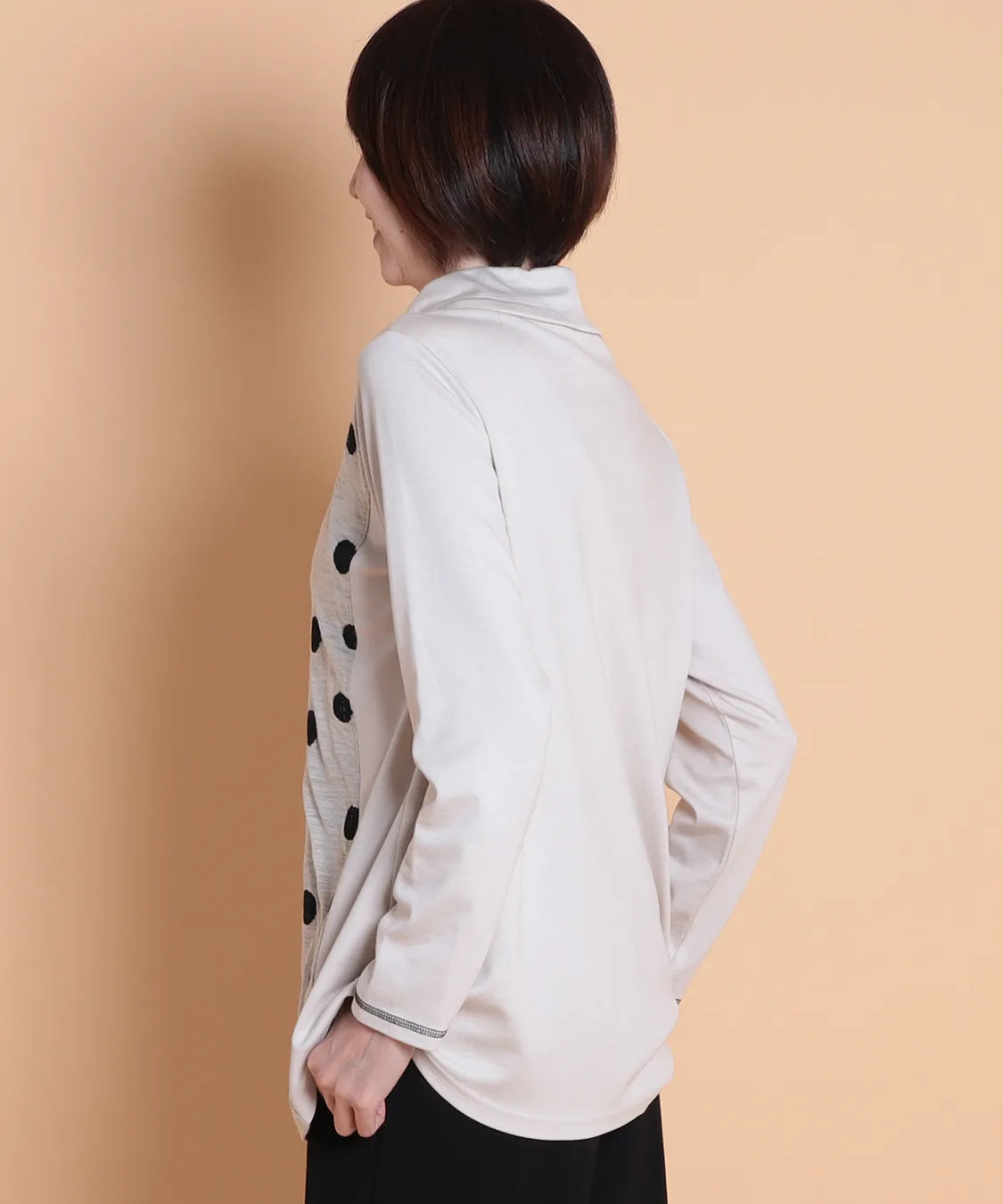 大人っぽく控えめに配されたドットと、スタンドカラーのディテールで、シックな装いを叶える一枚です。