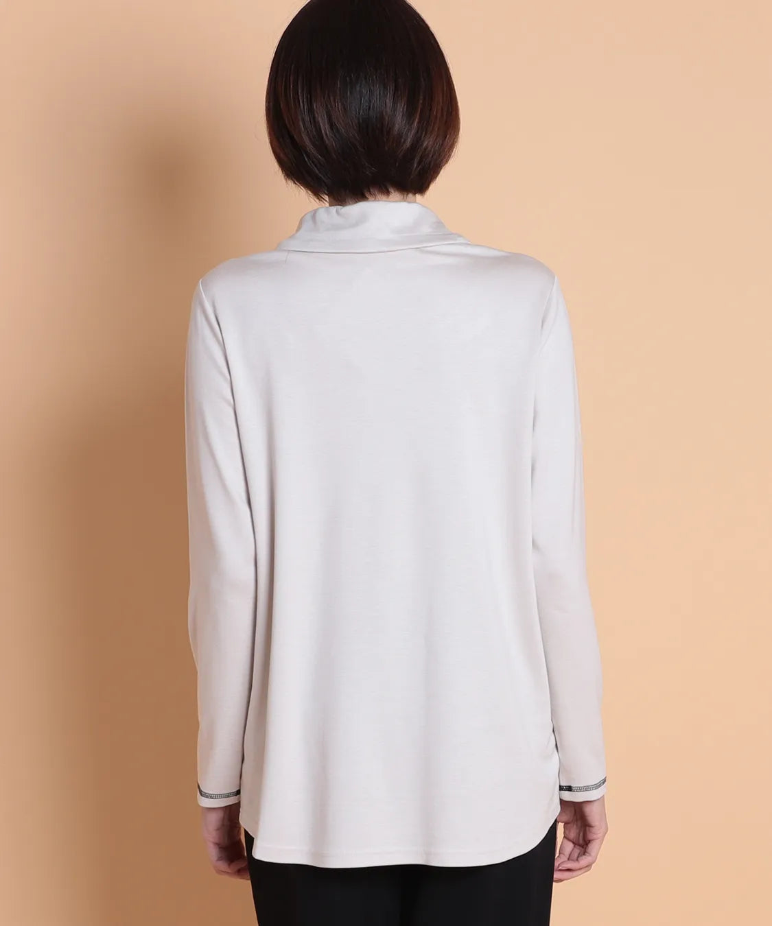 カットジャガードの立体感と、なめらかな無地部分の組み合わせで、快適な着心地を実現しています。