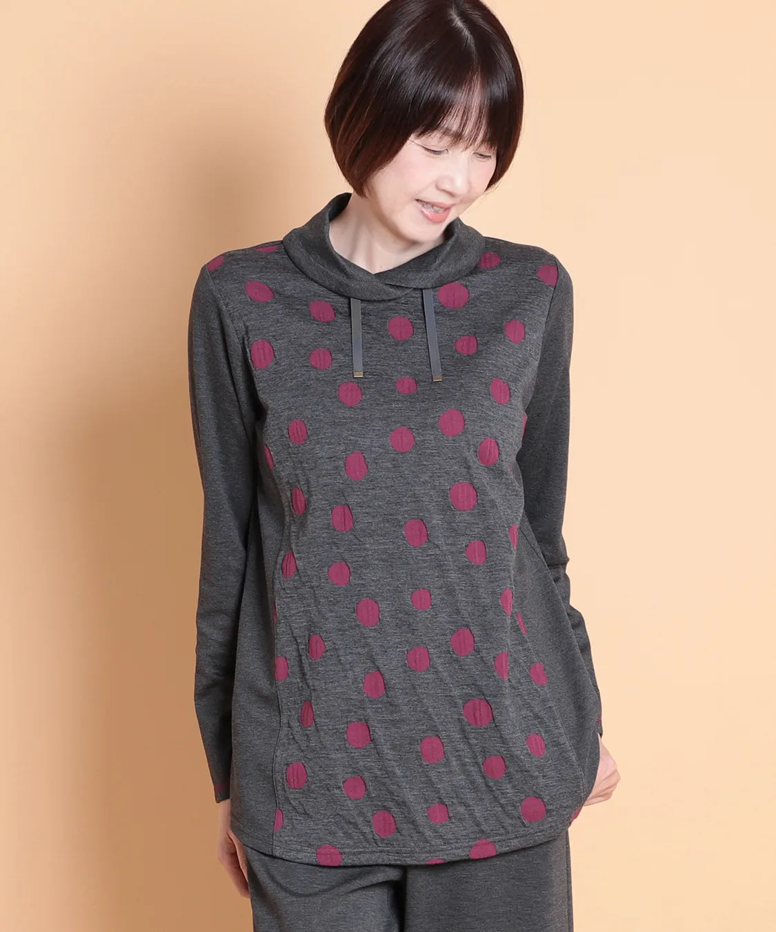 ・フロントのカットジャガードのドット柄が、立体感のある表情を演出