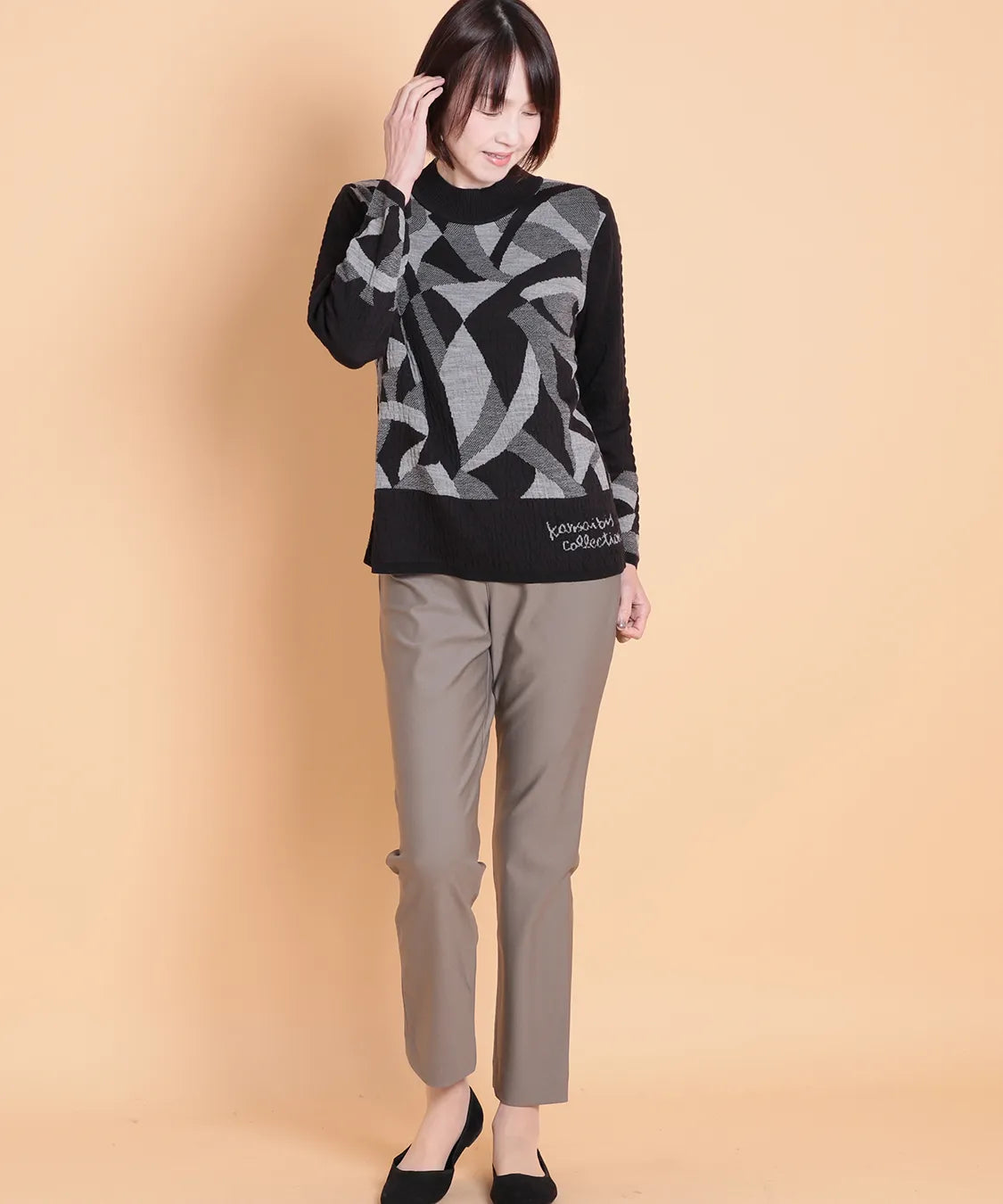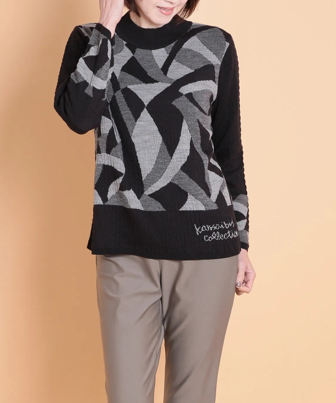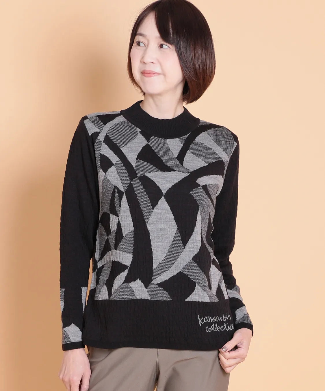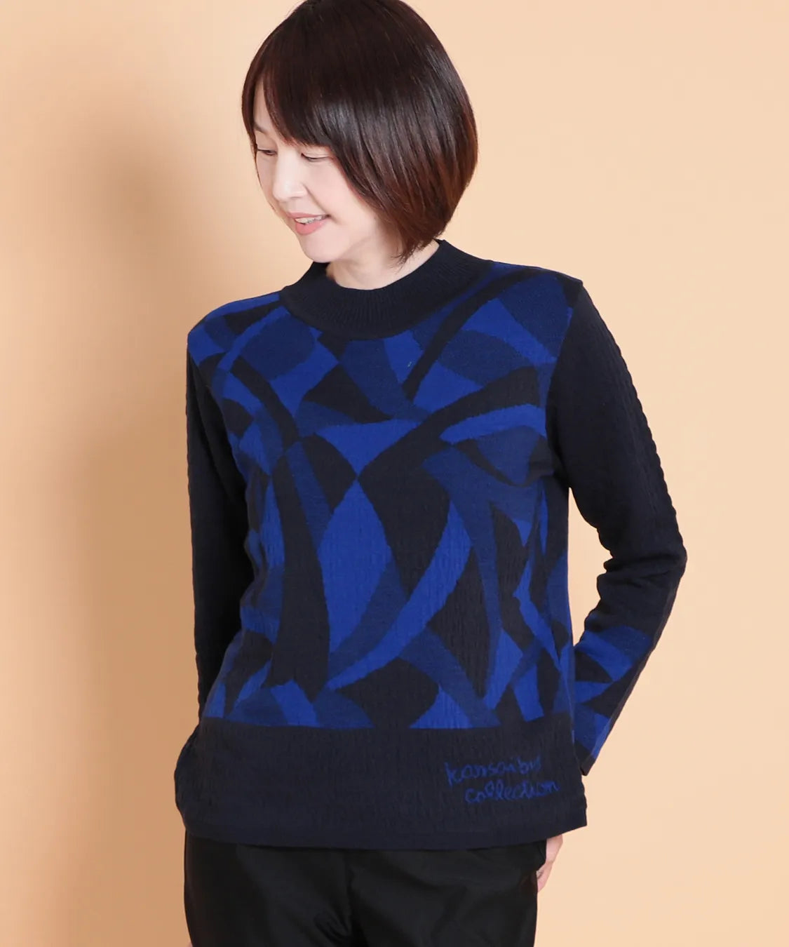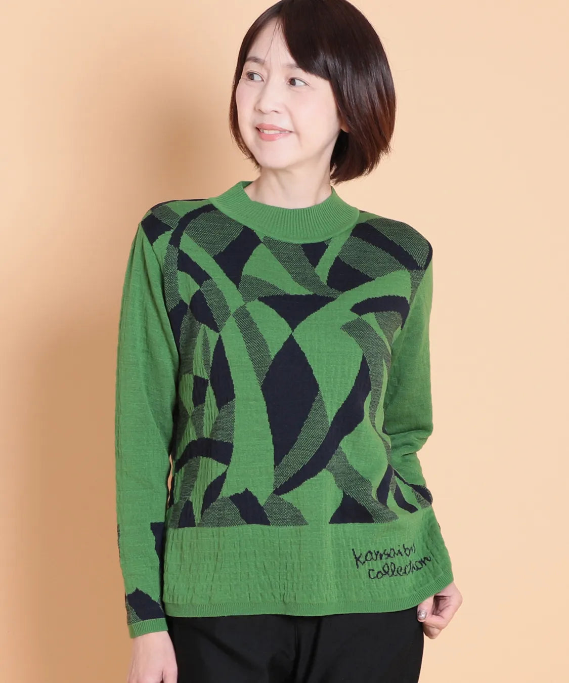 肌触りがしなやかで着心地の良いセーターは、大胆なジャガード柄がビスコレらしさのある1枚です。裾の「KANSAI BIS collection」のロゴもポイントになっています。コートやジャケットのインナーとして映える暖かさが魅力。グリーン・ブルー・レッド・ブラックの4色展開。落ち着いた色味から華やかなカラーまで、気分に合わせて選べる大人のニットトップスです。