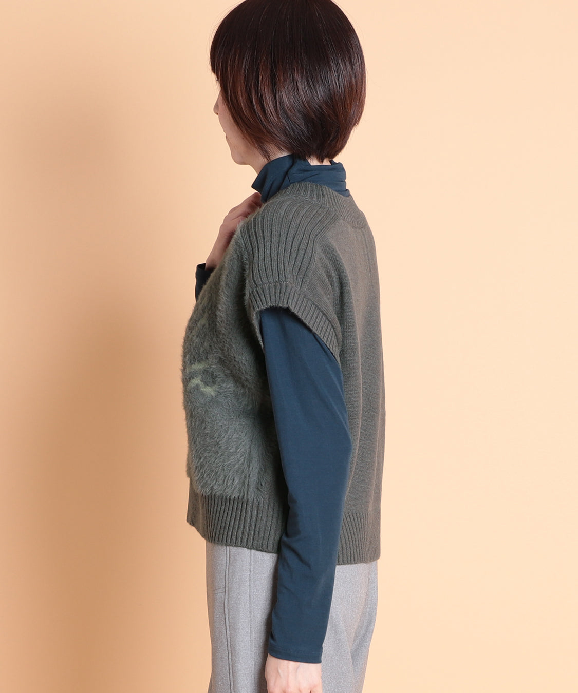 シャツやワンピース、カットソーなどにレイヤードすれば一気にこなれ感のあるスタイリングが完成するベスト。ふわふわとした表面感が特徴のファー素材で仕立てたコンパクト丈のアイテム。シーズンムードとトレンドさの両方を兼ね備えたオススメの1着です。