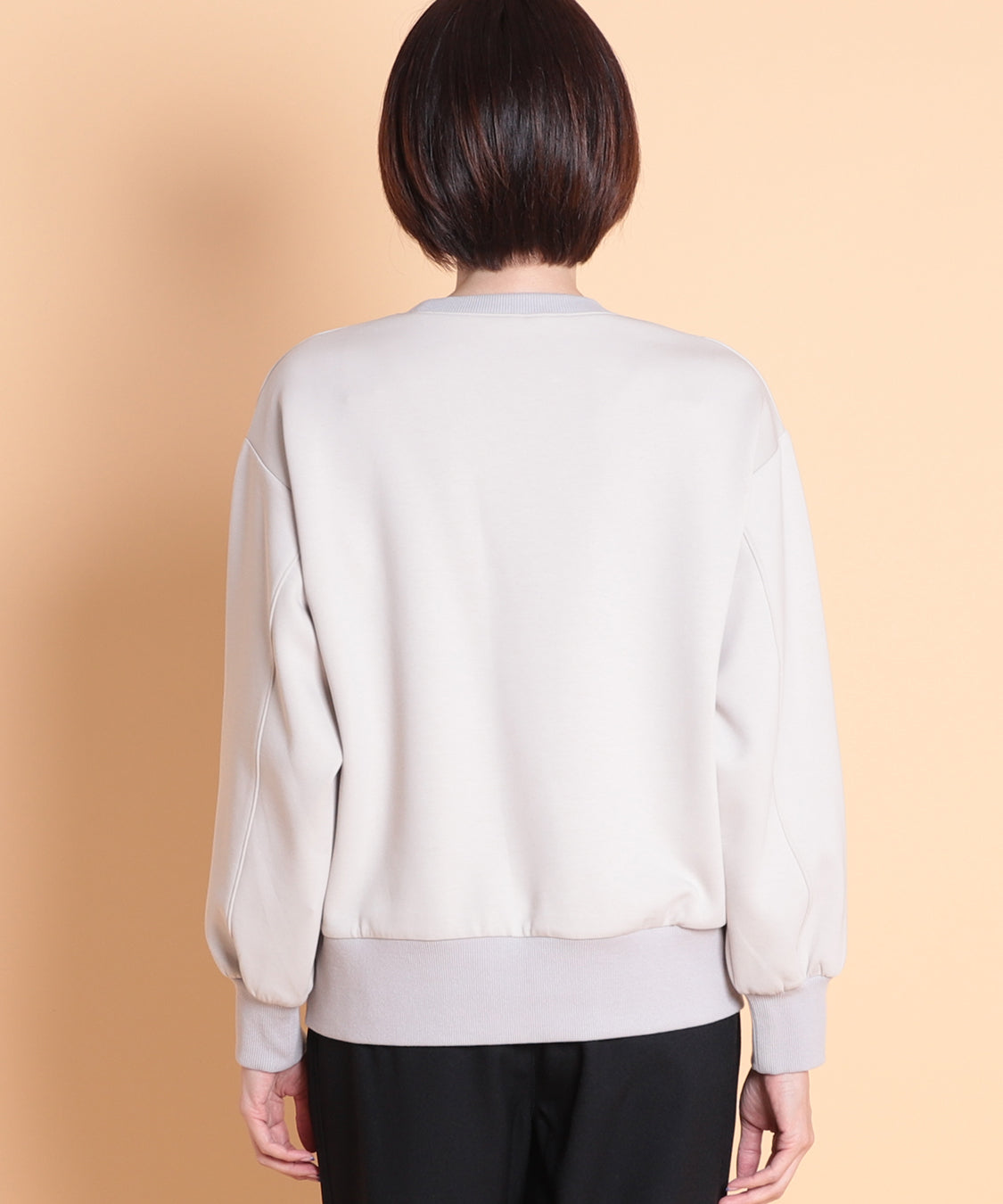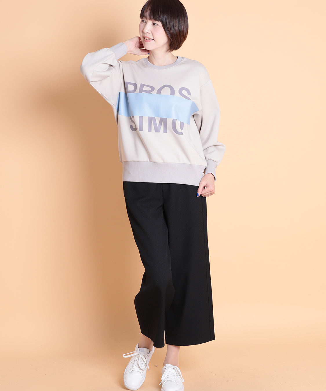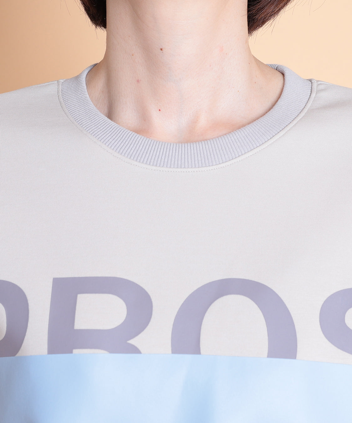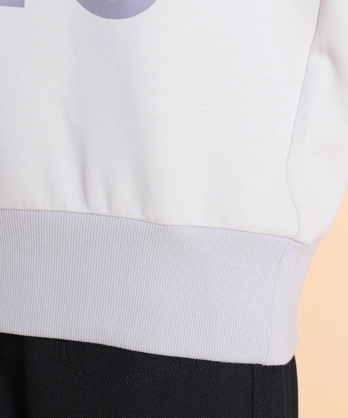 大胆なプリントロゴの組み合わせが目を惹くプルオーバー。コンパクトな丈感に対してゆったりめな身幅なので着心地も快適な1着。ふんわり柔らかな生地感。スウェットはカジュアル過ぎる、という方でも着こなしやすいデザインになっています。