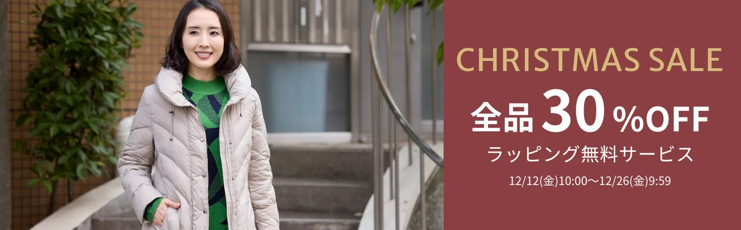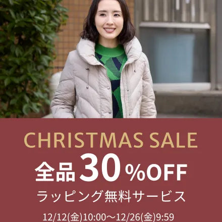 大切な人へ、そして自分自身へ。 クリスマスシーズンを彩る特別なセールを開催いたします。 12/12(金)AM10:00〜12/26(金)AM9:59の期間、 ストア内全品30%OFF に加え、ラッピング無料 でお届け。 冬の装いを豊かにするアウター・ニット・パンツから、 ギフトにも喜ばれるアイテムまで揃いました。 心温まるひとときに寄り添う、上質なセレクションをお楽しみください。 ※ラッピングご希望の場合、商品ページにございます、「クリスマス限定 ラッピング無料」バナーよりラッピング必要数量をカートに入れてください。 ラッピングサービスページはこちら