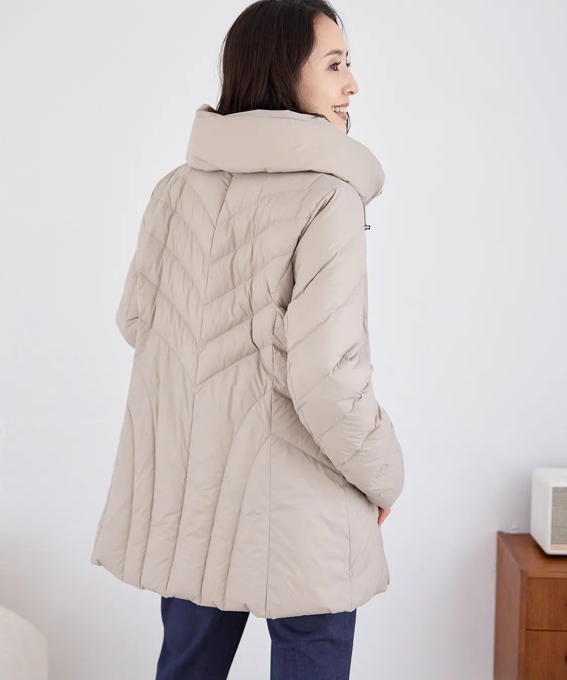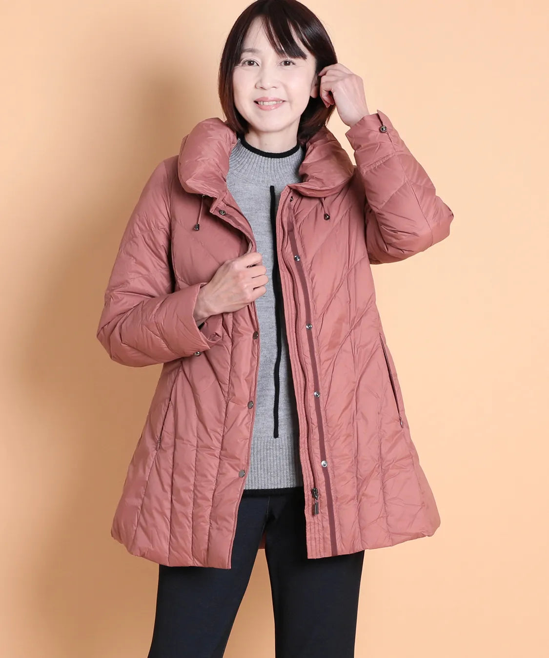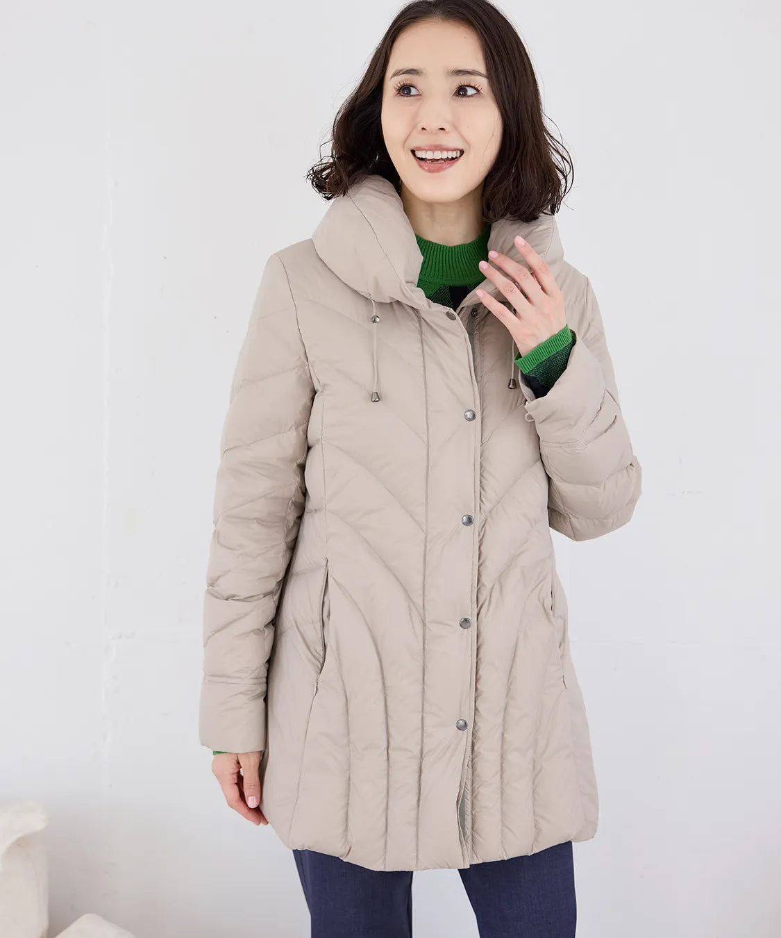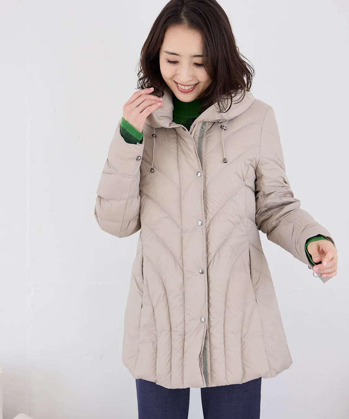 ふんわり軽い着心地ながら、しっかりと暖かさをキープするダウンコート。