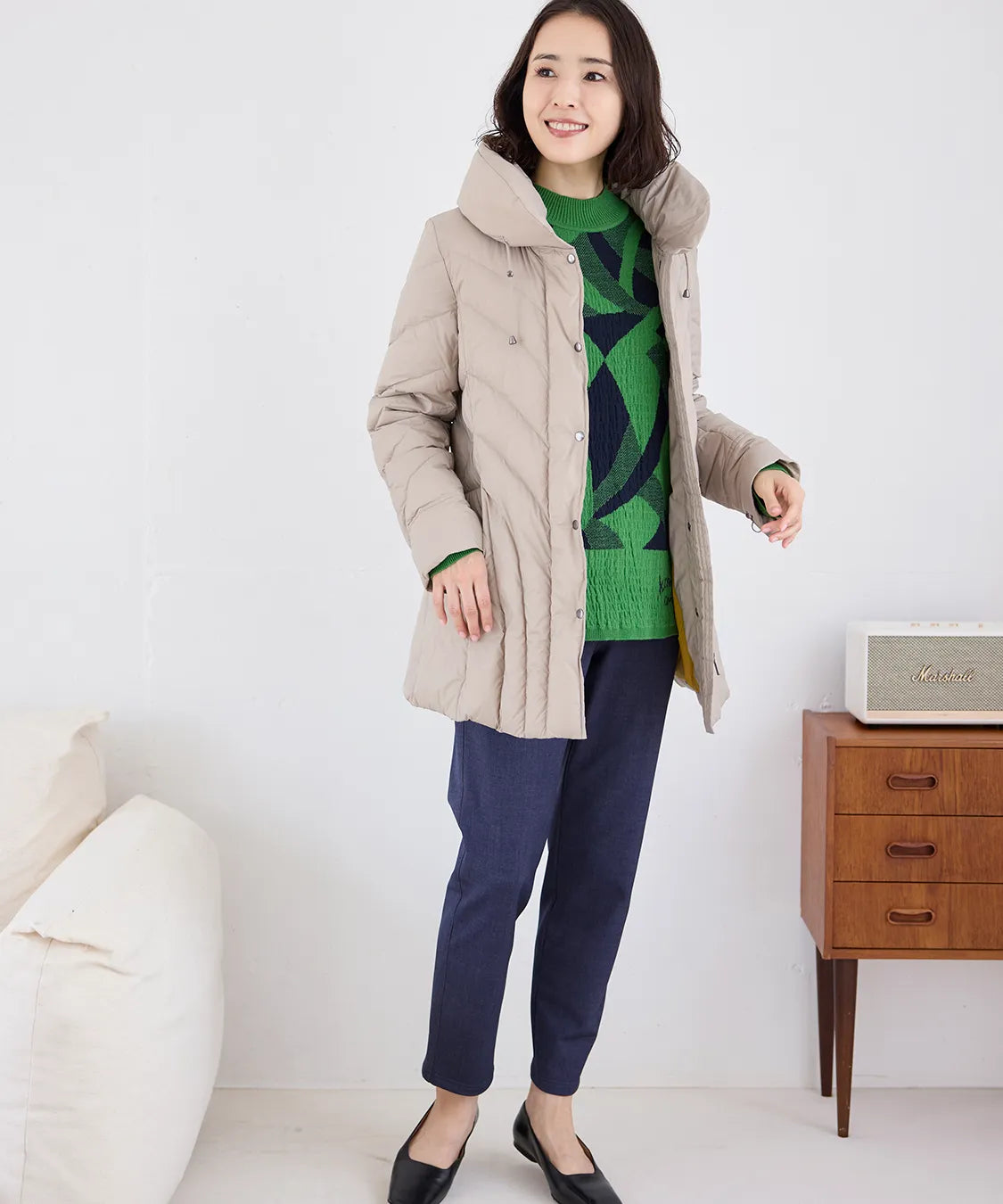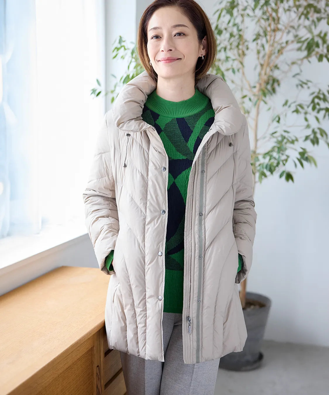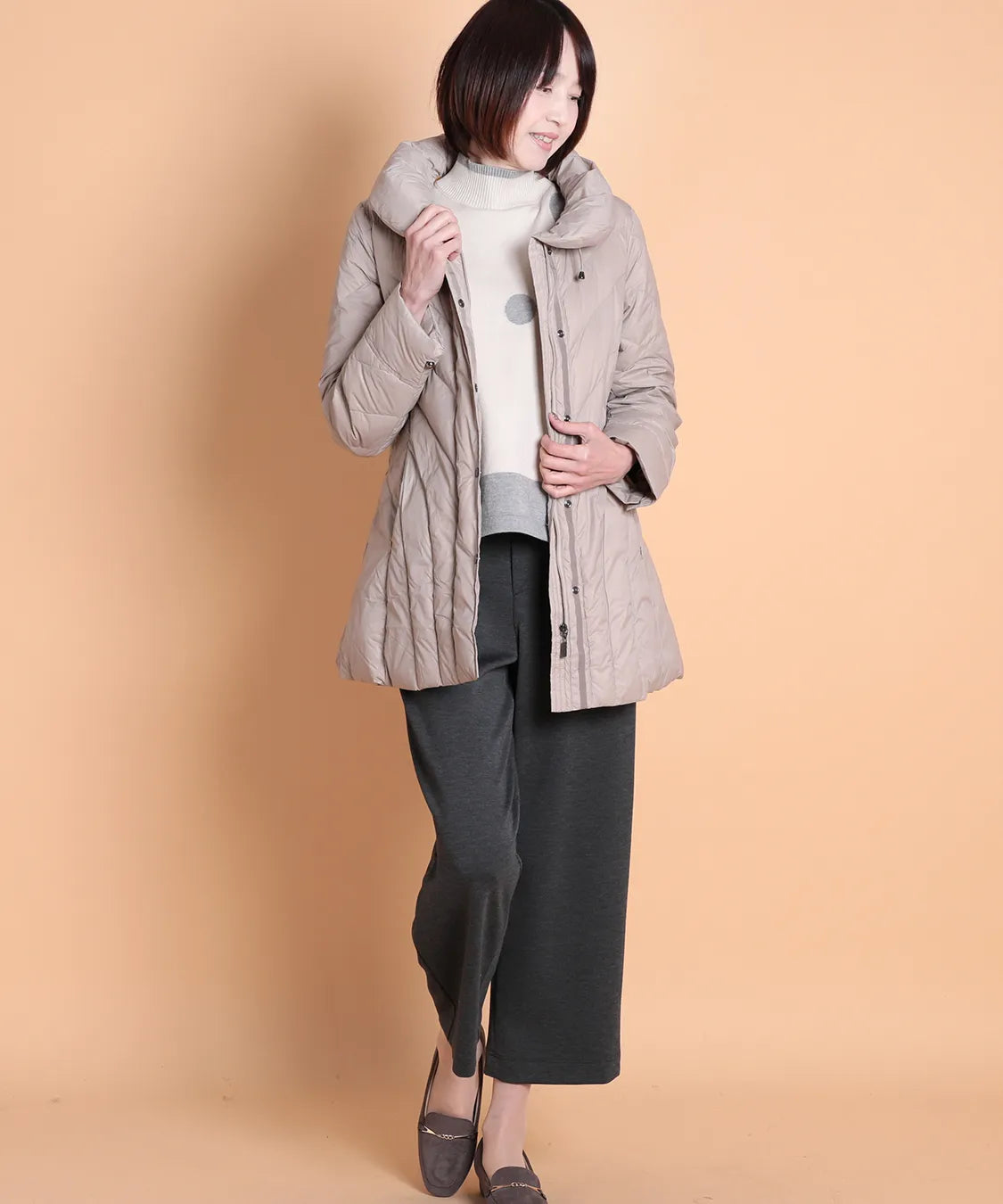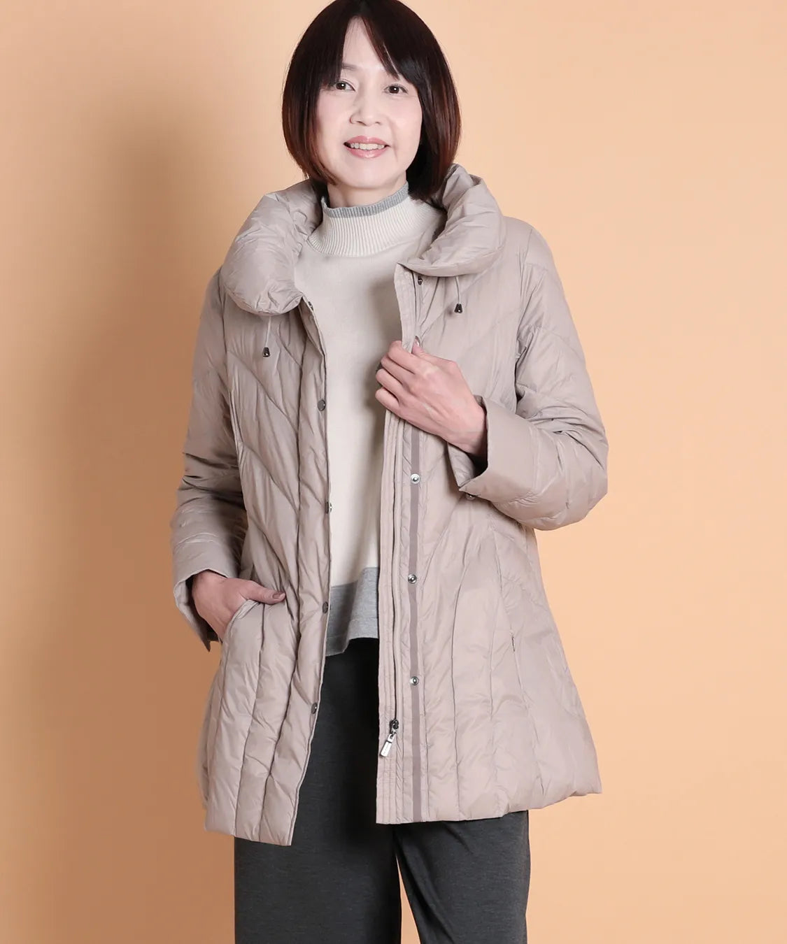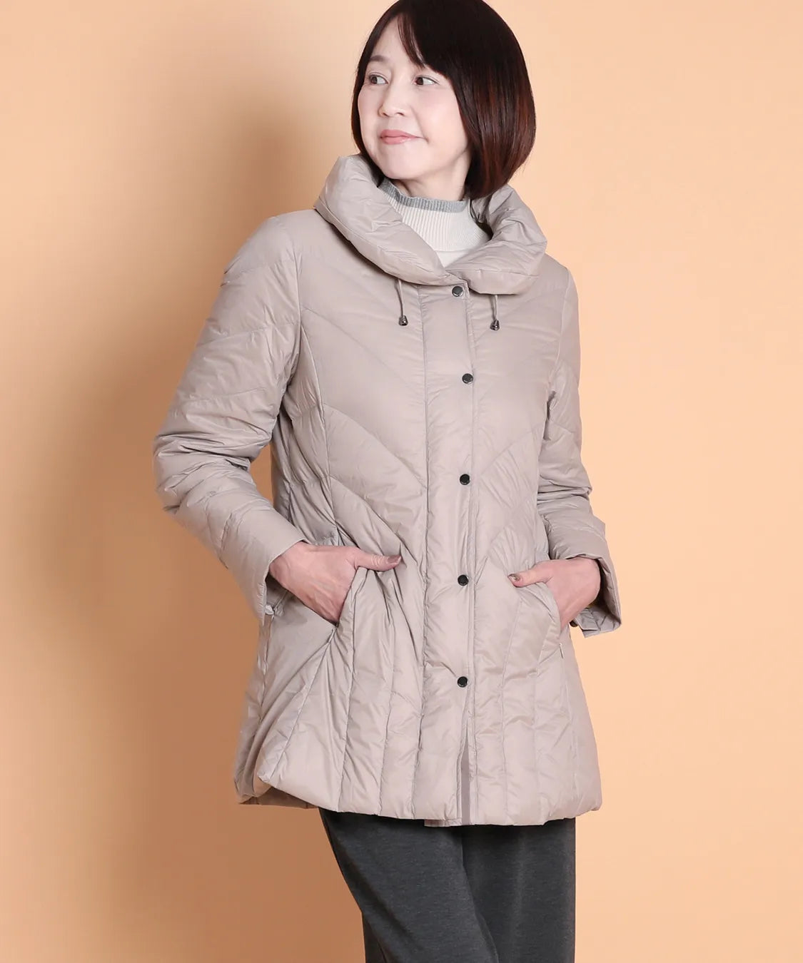 ふんわり軽い着心地ながら、しっかりと暖かさをキープするダウンコート。