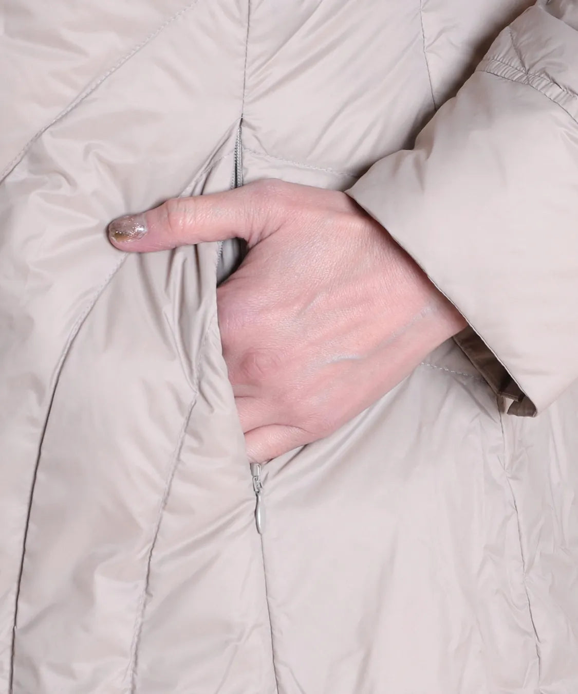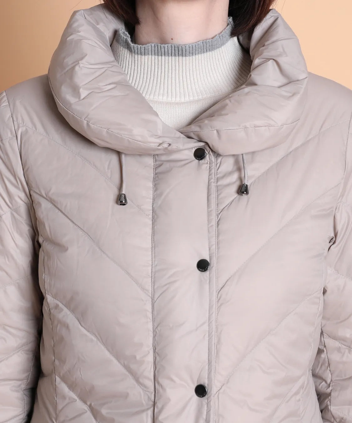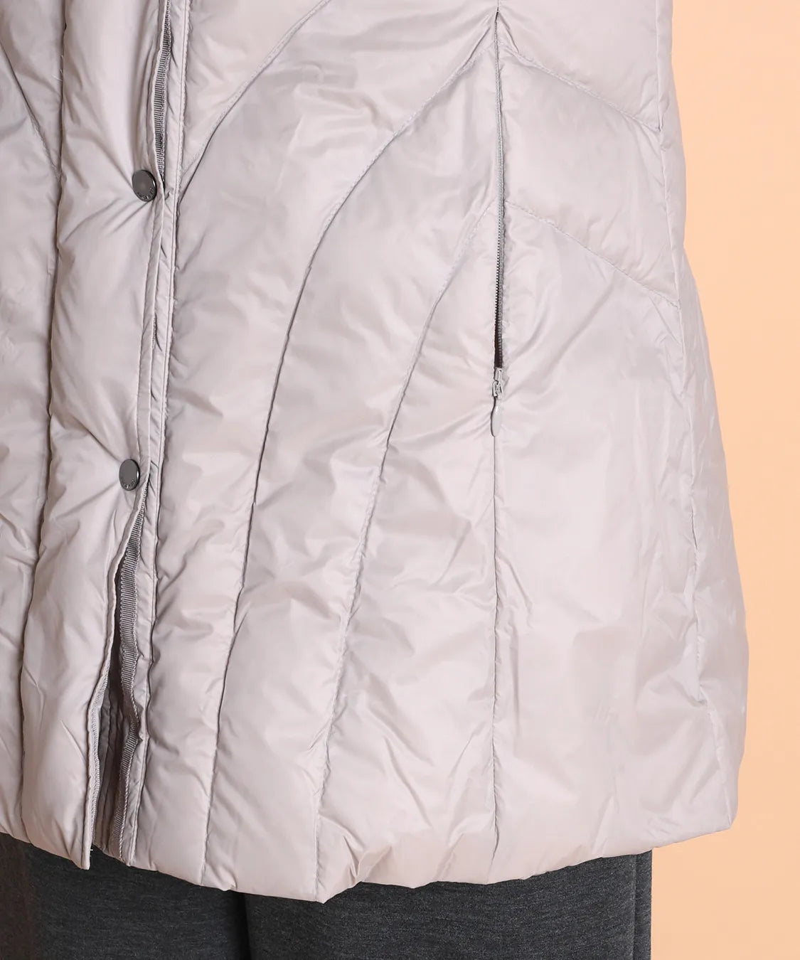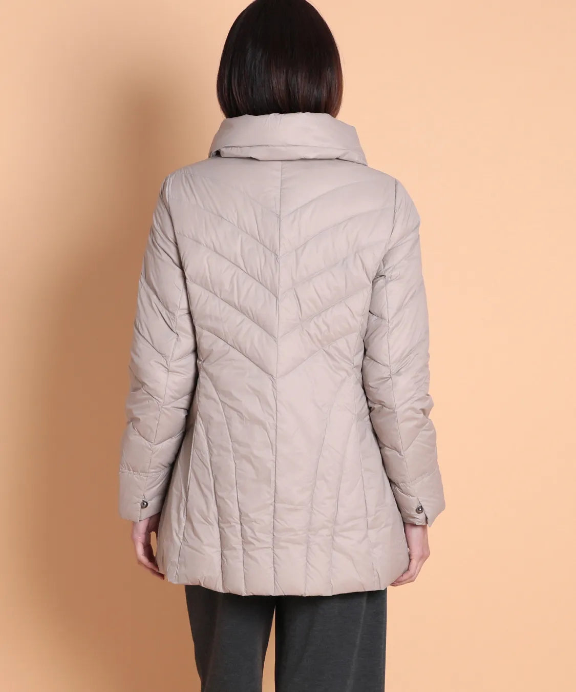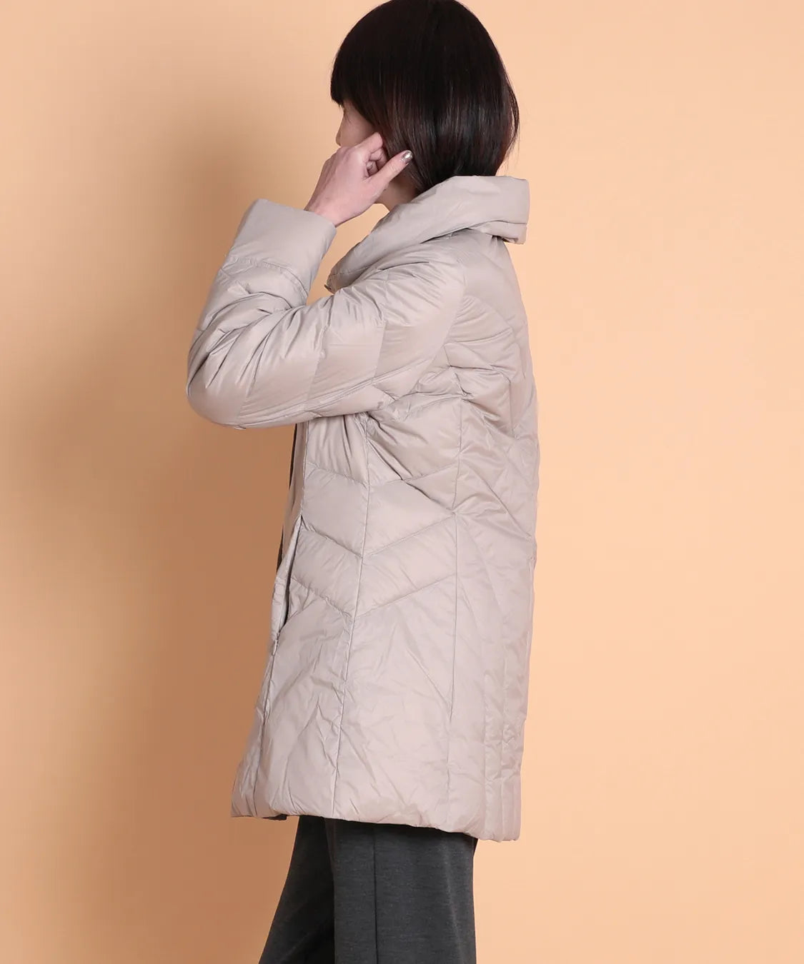 ダウン分量を少なめにしているのでボリュームが出過ぎずすっきり着用頂けます。