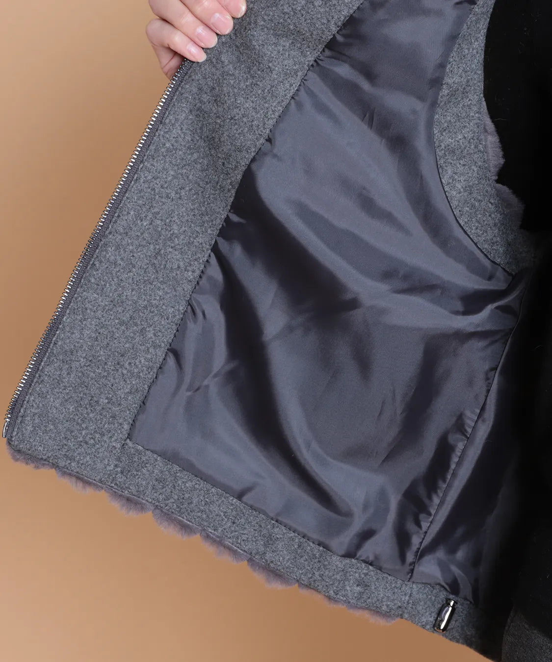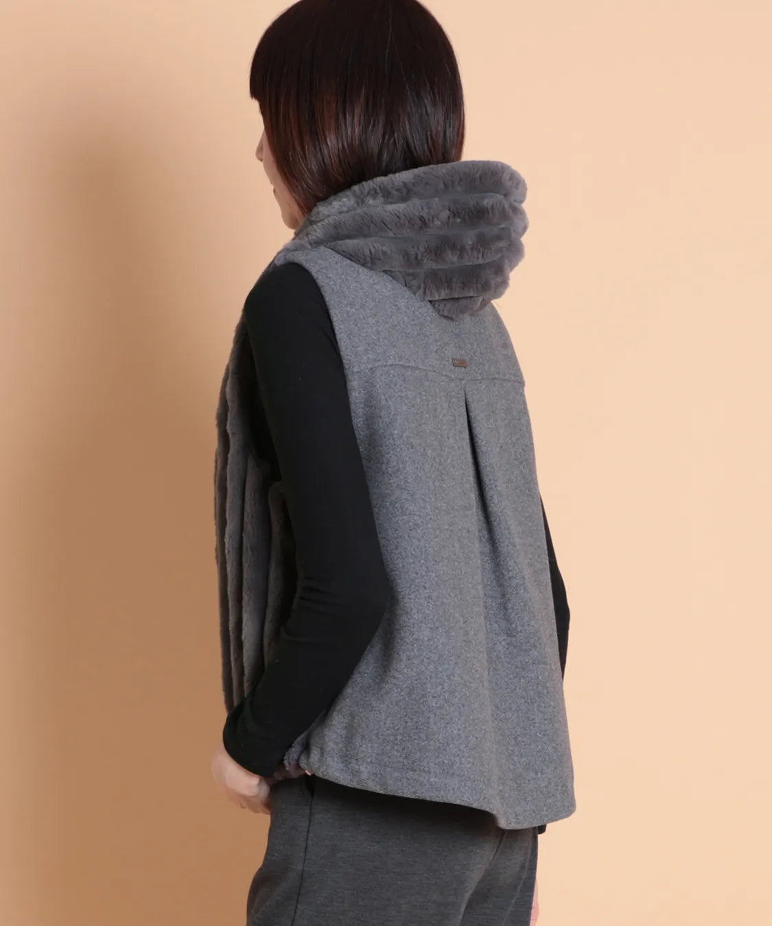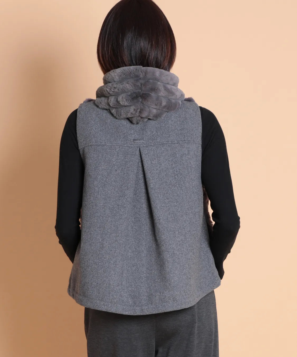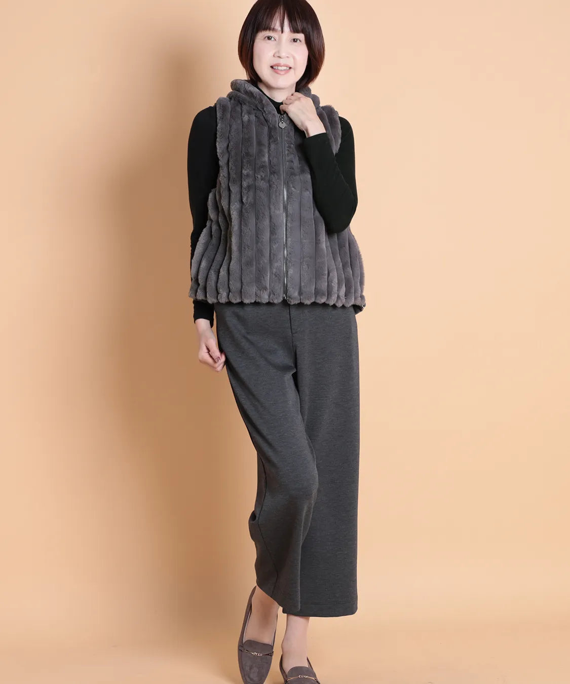 柔らかな肌触りと上品な光沢感が魅力のフェイクファーベスト。 軽量ながらしっかりとした保温性があります。ジップ仕様で着脱も簡単、両サイドには便利なポケット付き。 カジュアルにもエレガントにも合わせやすい万能アイテムです。