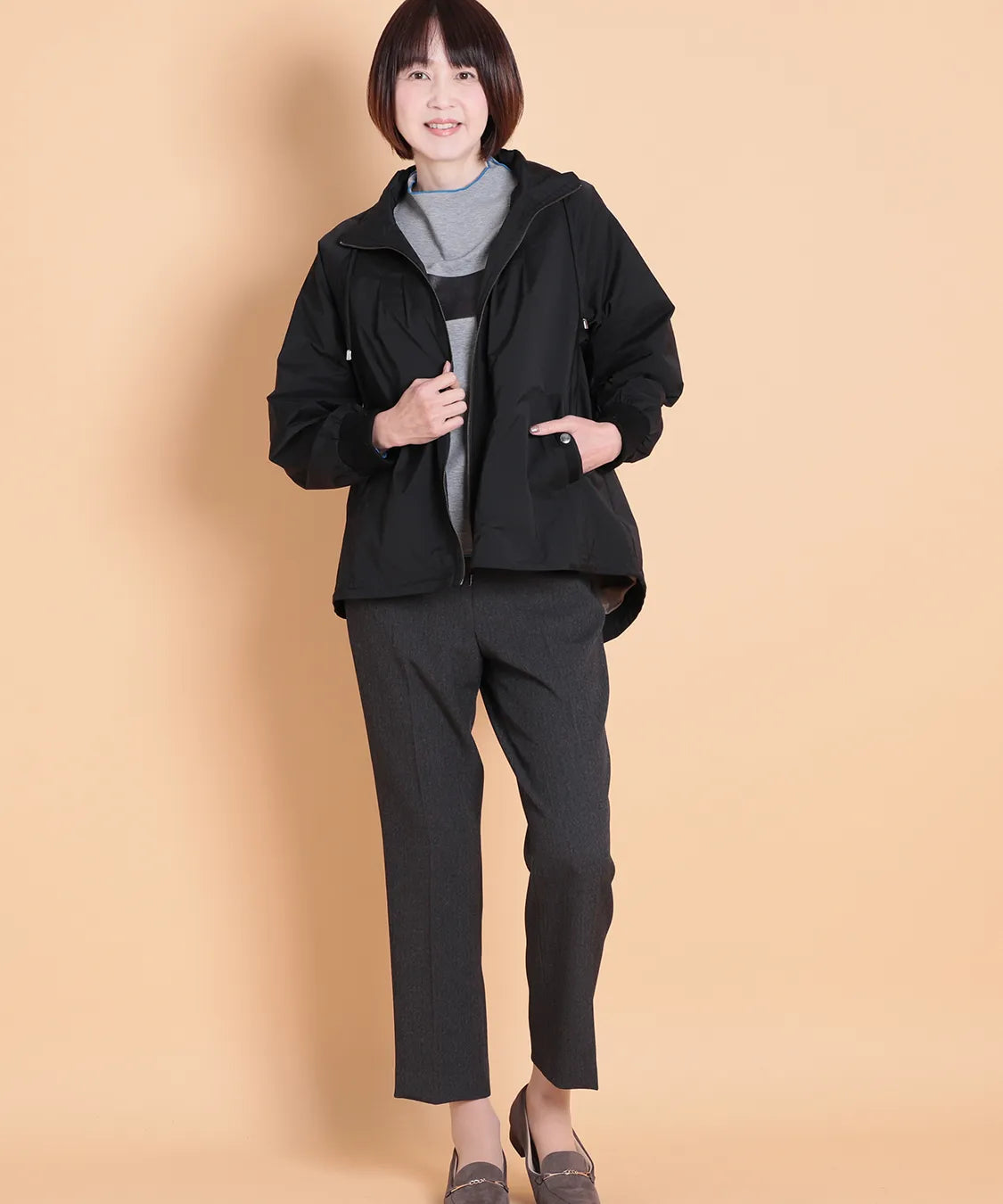 ・フード付きでカジュアルながらも、すっきりとした上品なシルエット