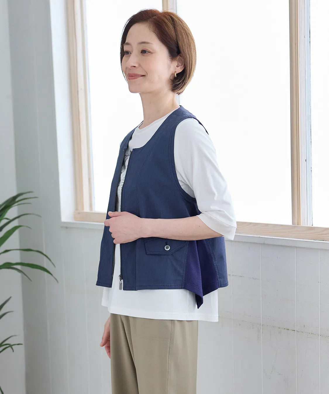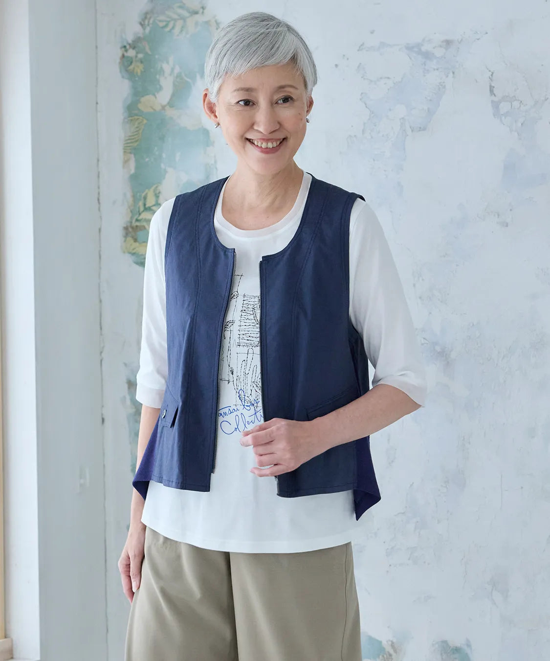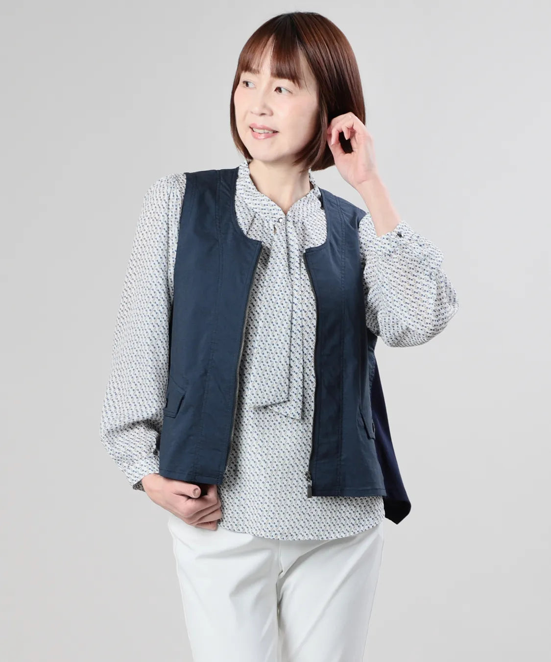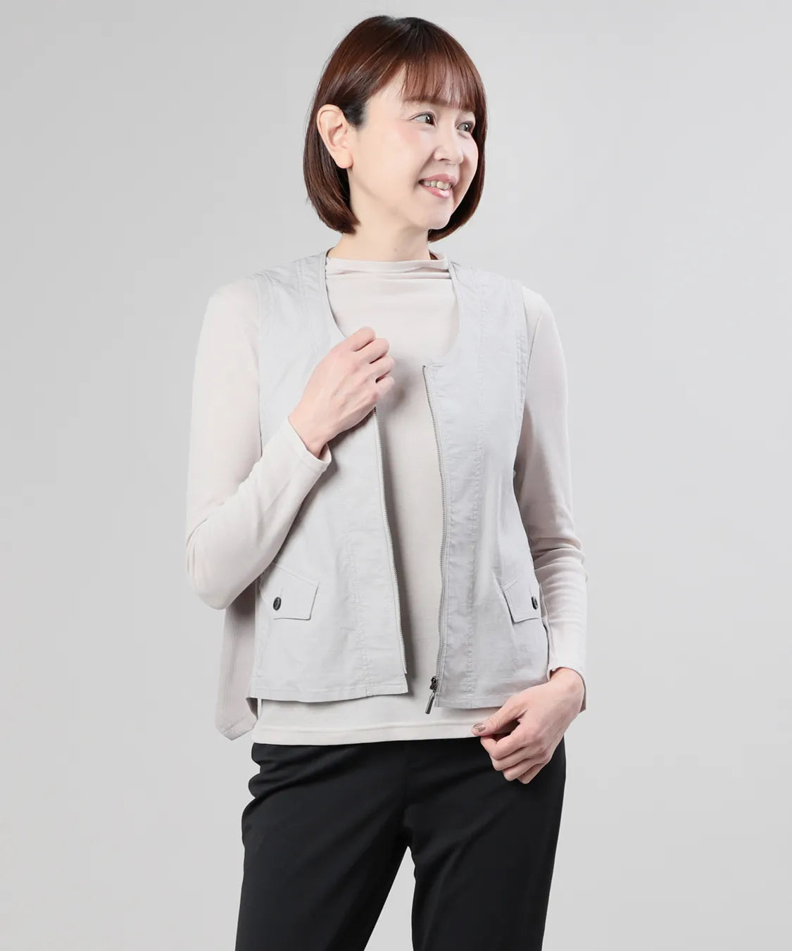 軽やかな着心地と上品な風合いが魅力のベスト。