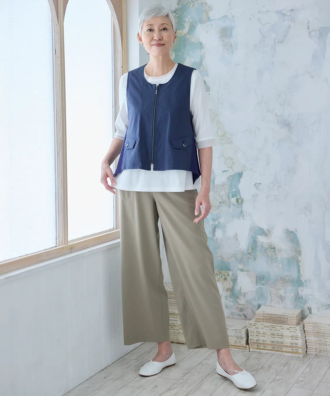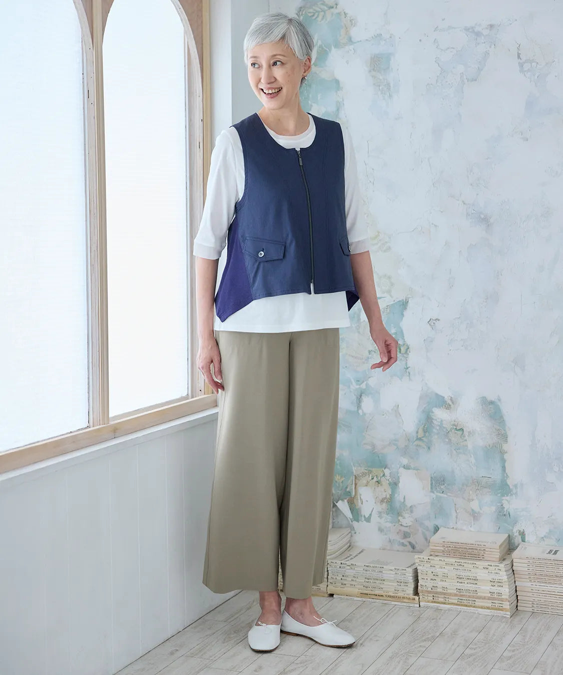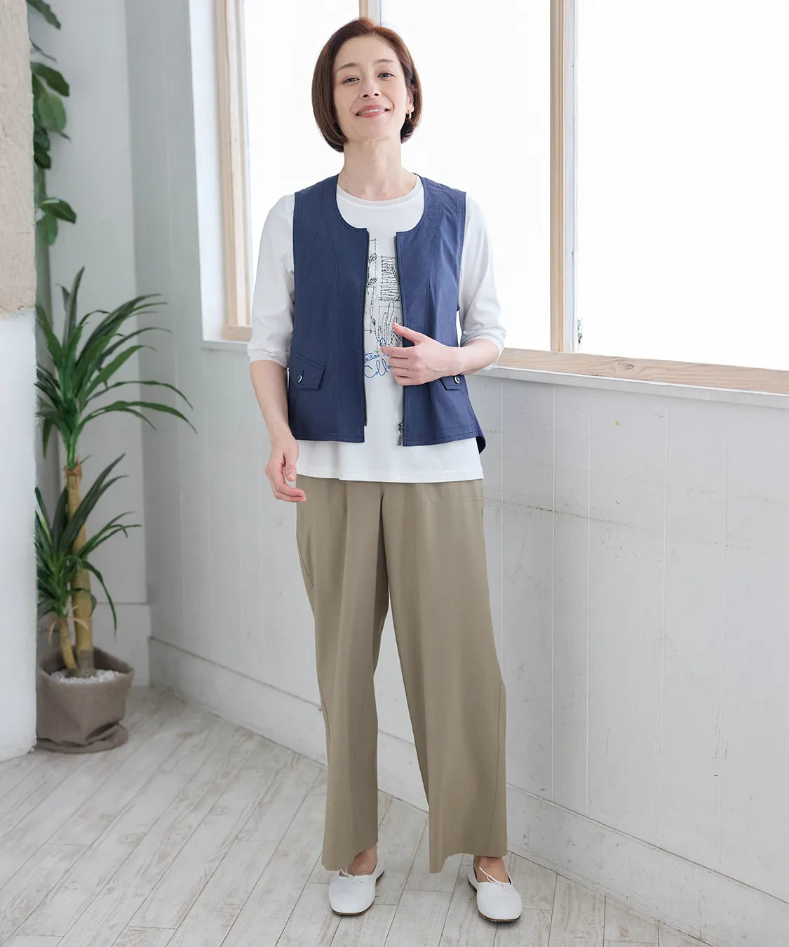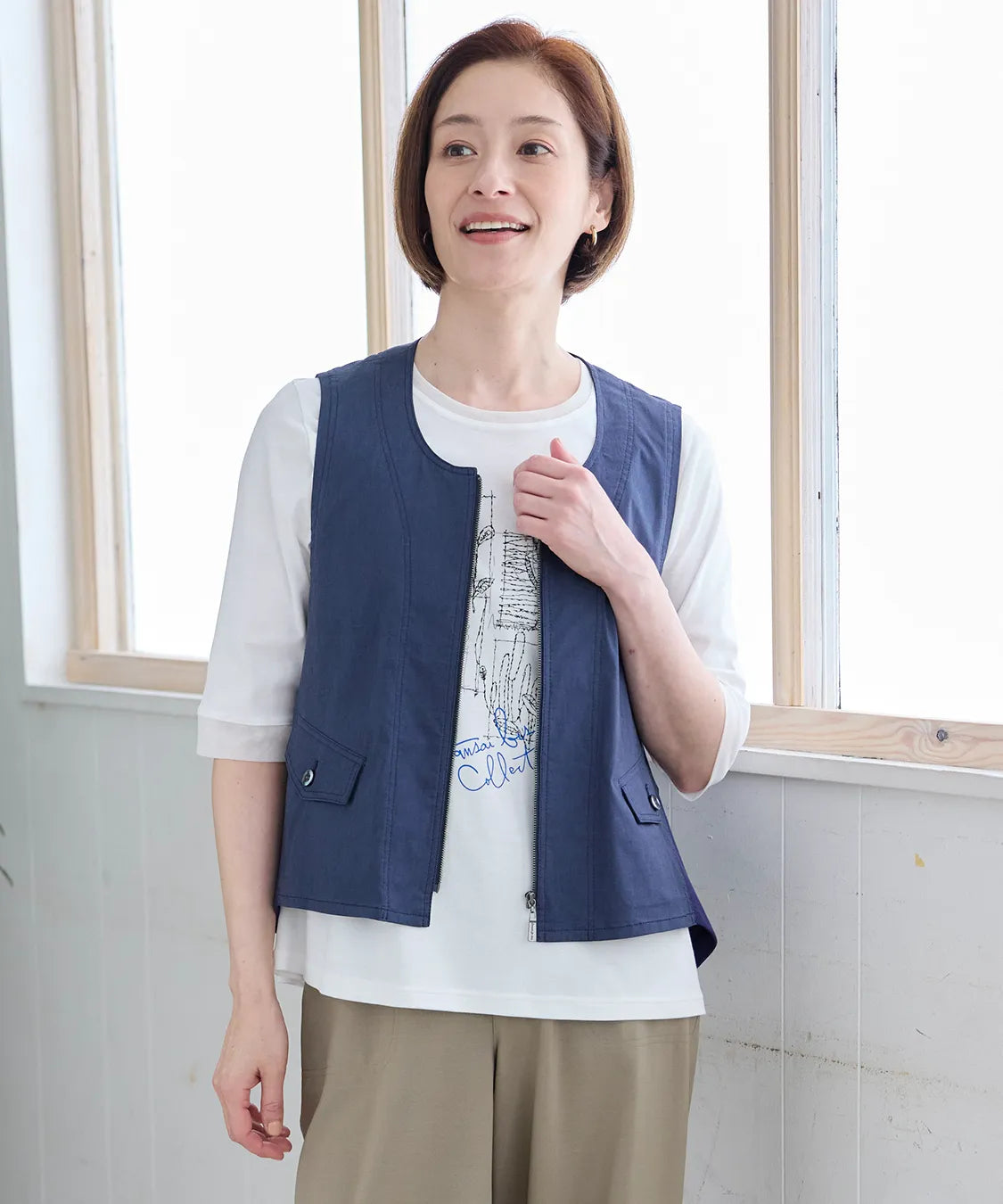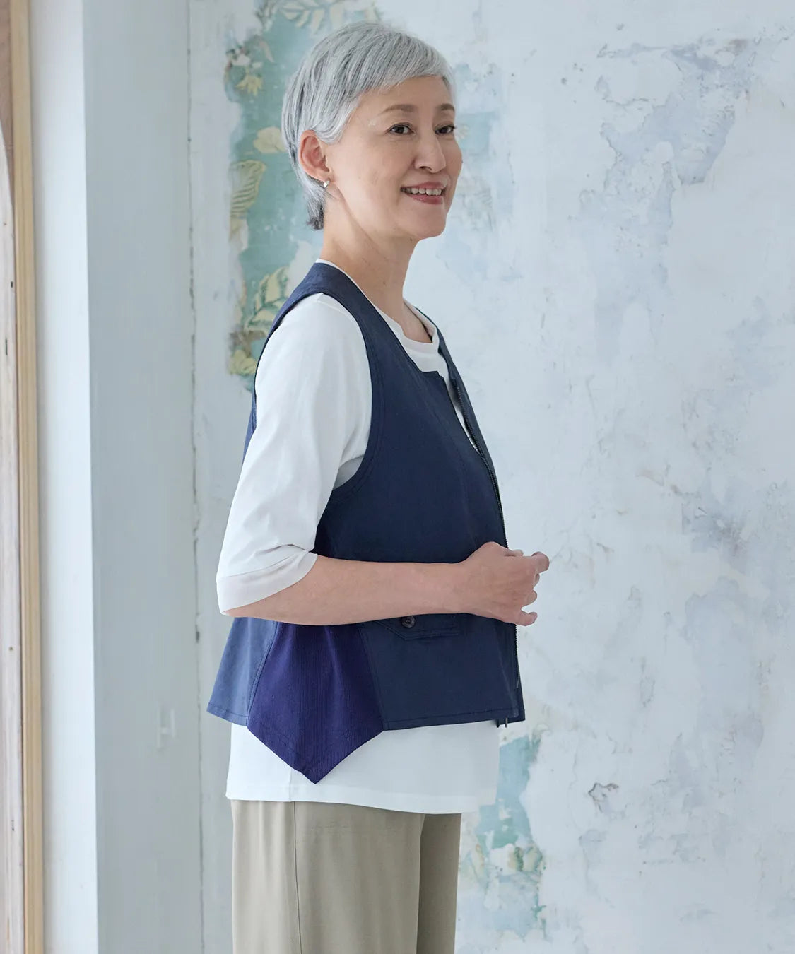 軽やかな着心地と上品な風合いが魅力のベスト。