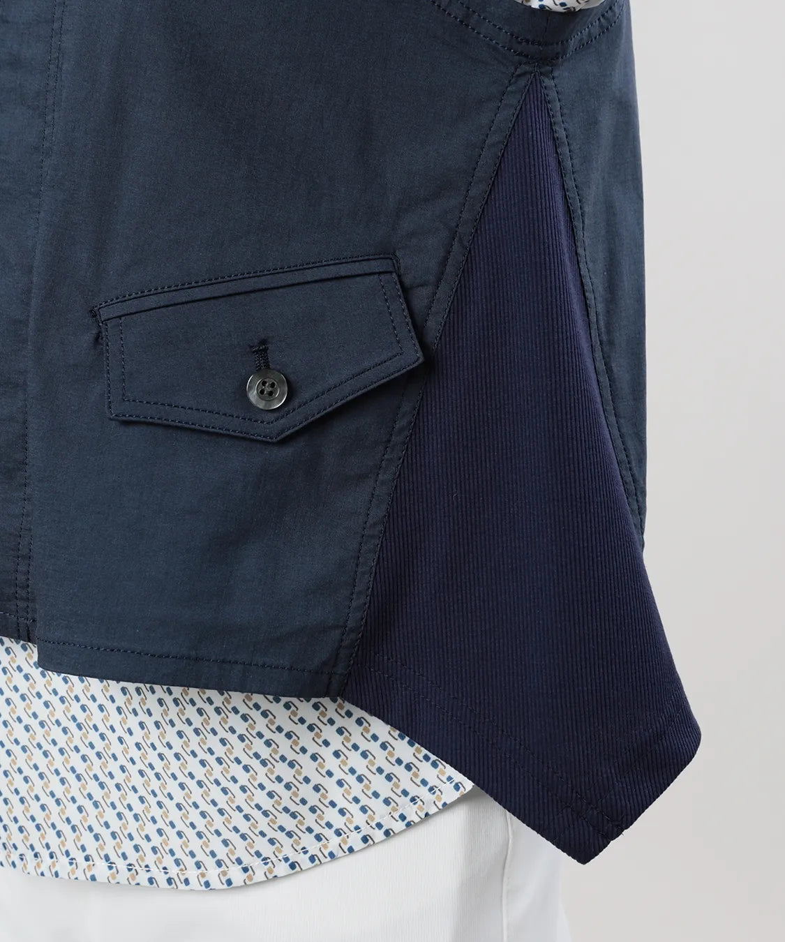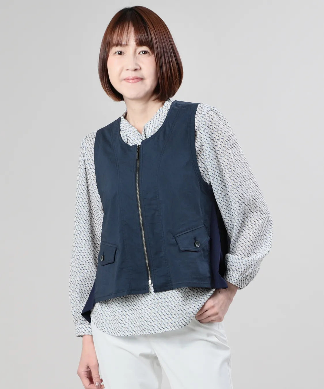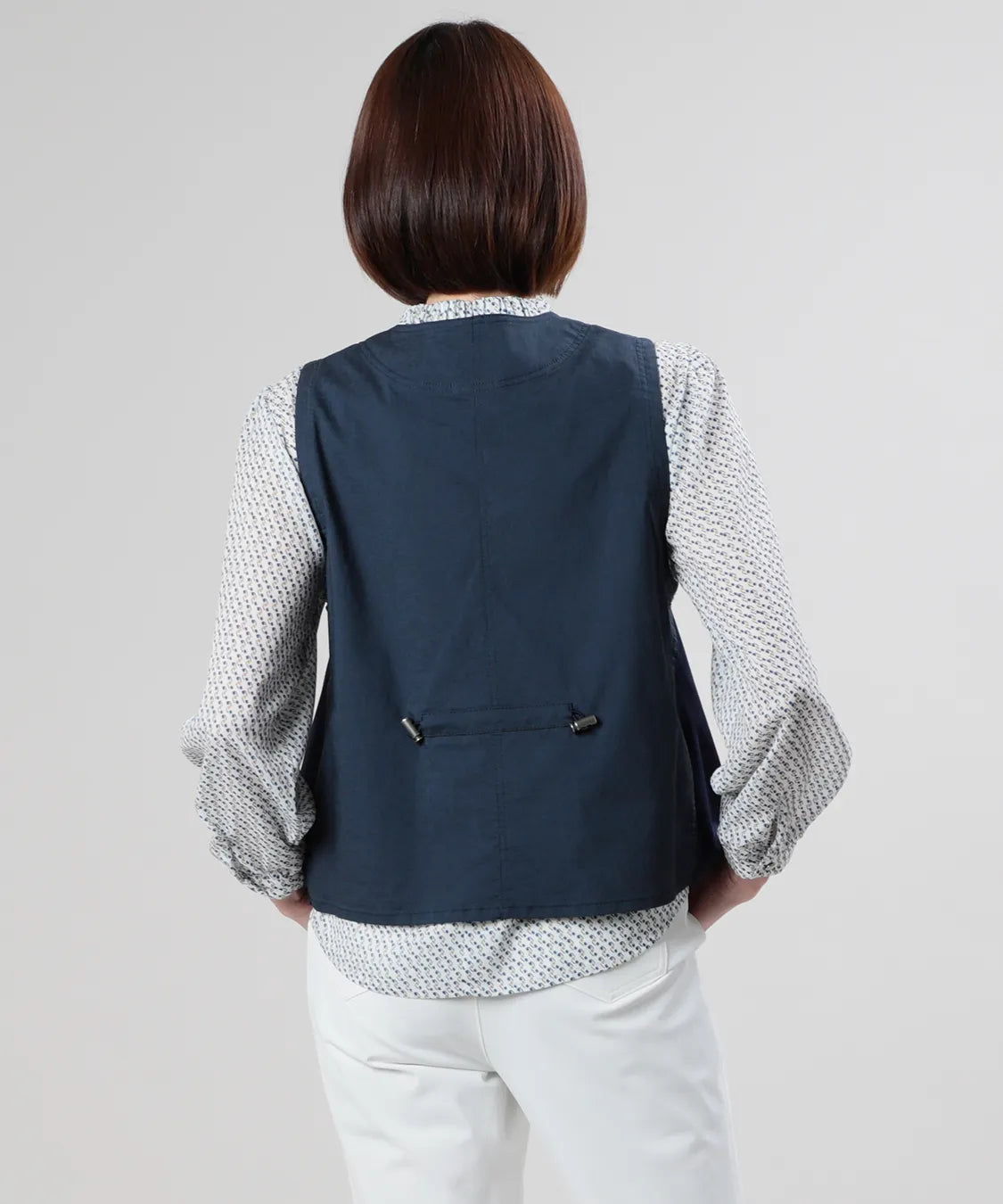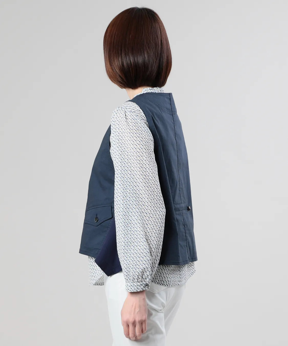 コンパクトな丈感とすっきりとしたシルエットで、パンツにもスカートにも好バランス。Tシャツやブラウスに重ねるだけで、装いが引き締まり、洗練された印象に仕上がります。
