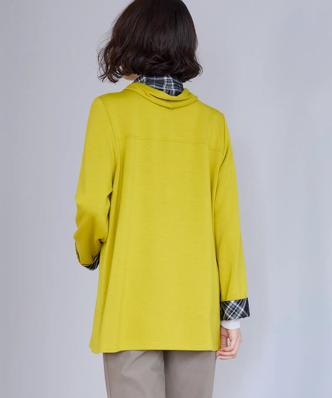 チェック柄の切り替えが際立ち、さりげないアクセントに。