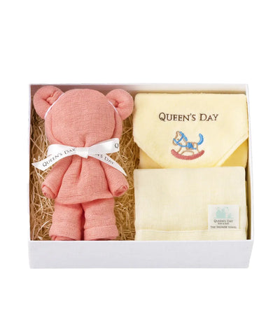 シャワータオル2枚(内1体 ベア仕様)+ハンドタオルセット BASIC BOX(M)