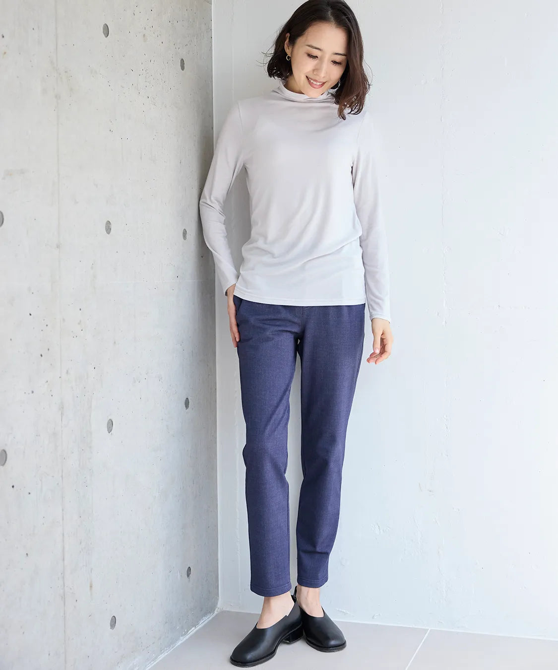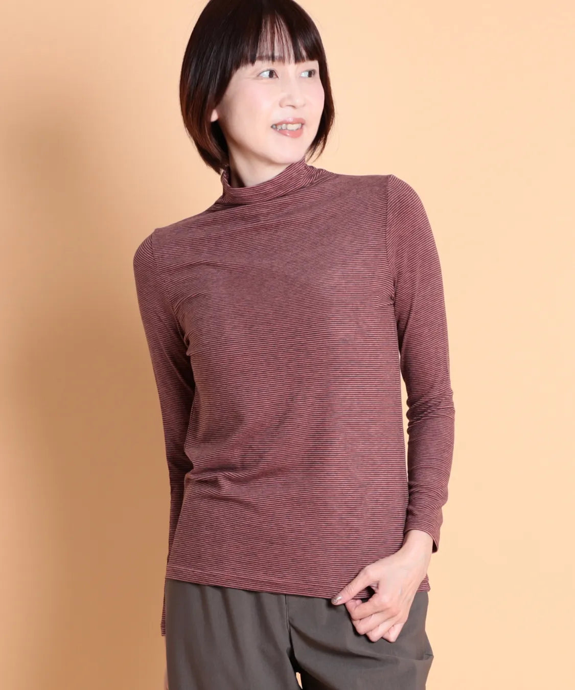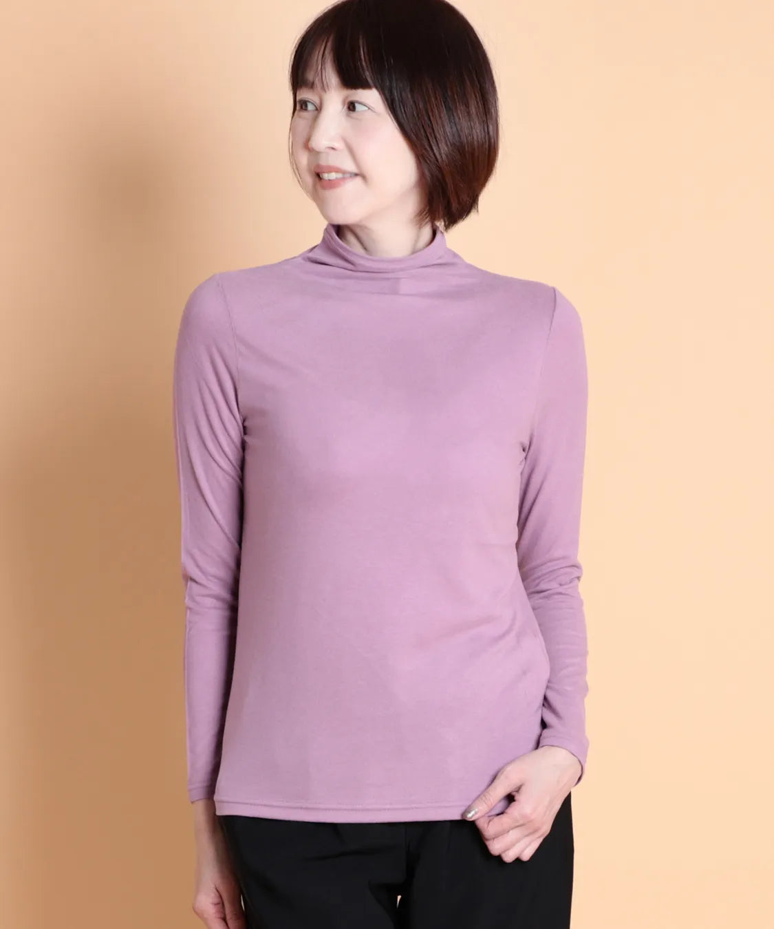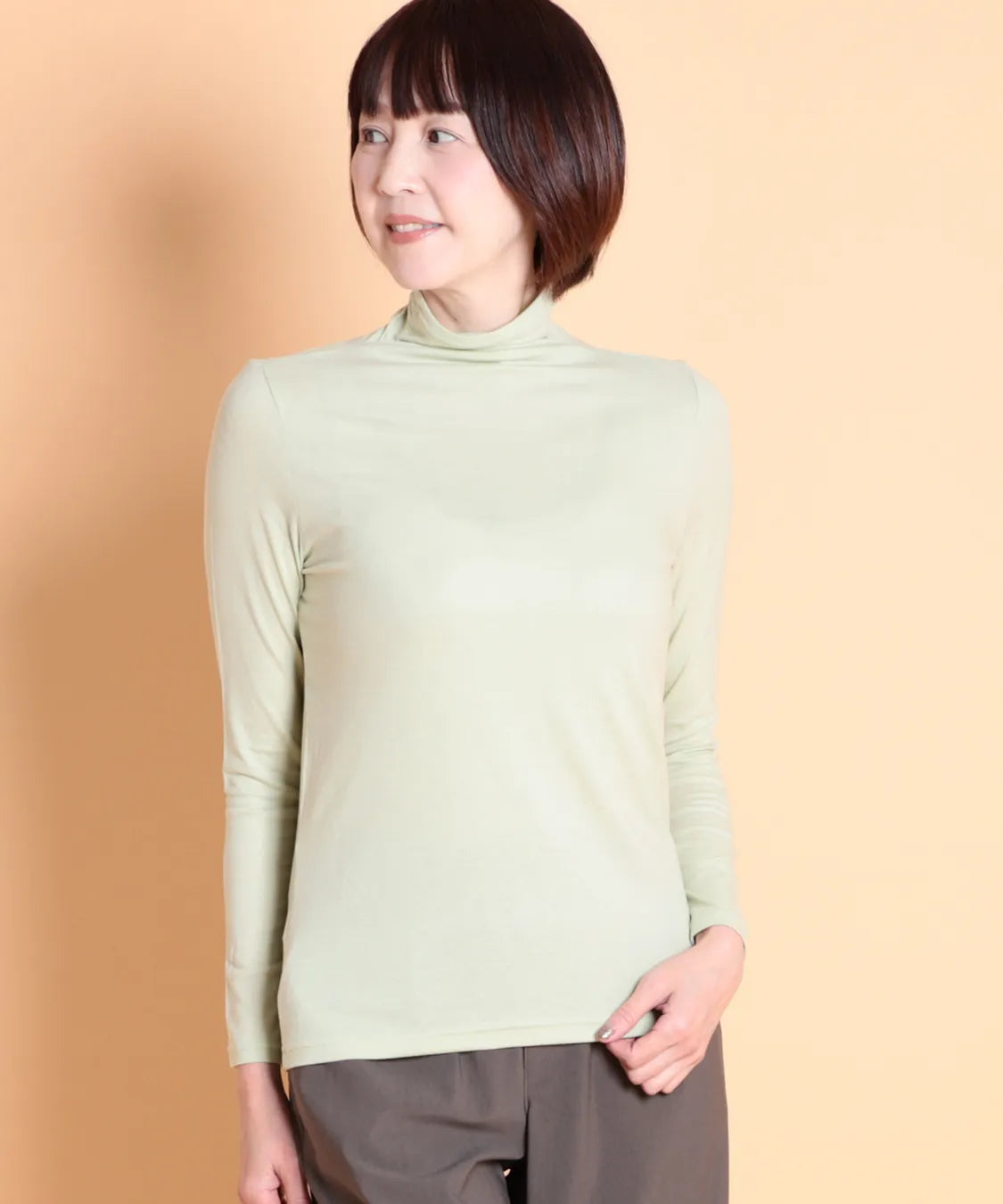 特殊な「ミップガーゼ」素材が生み出す、上品なとろみ感と柔らかなドレープのハイネックが魅力です。