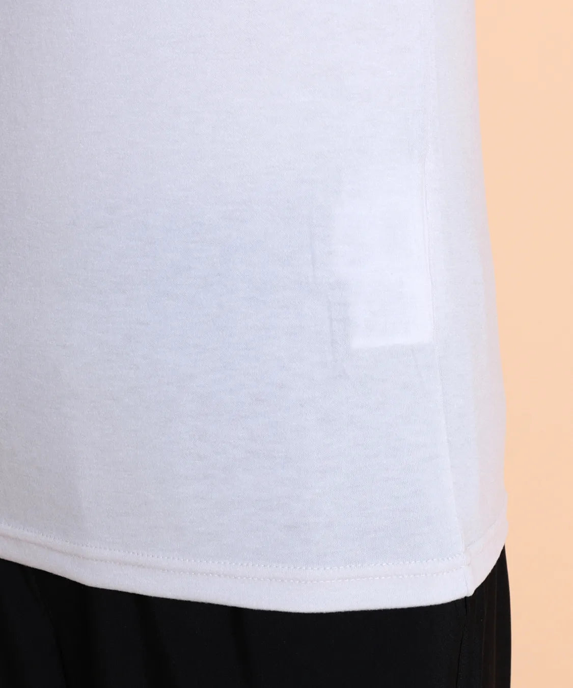 一枚で着ても、レイヤードスタイルの定番インナーとしても、幅広く着回せます。