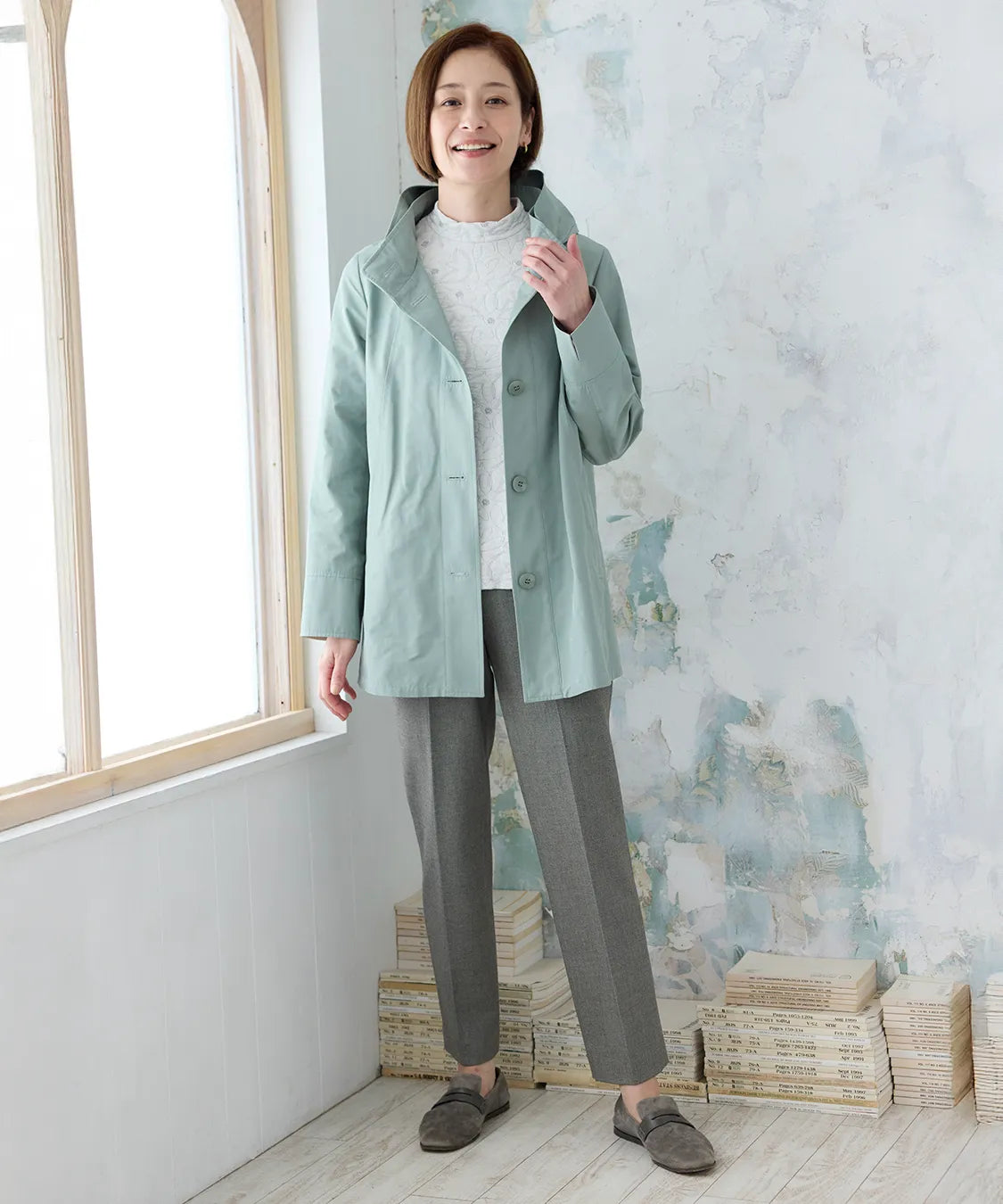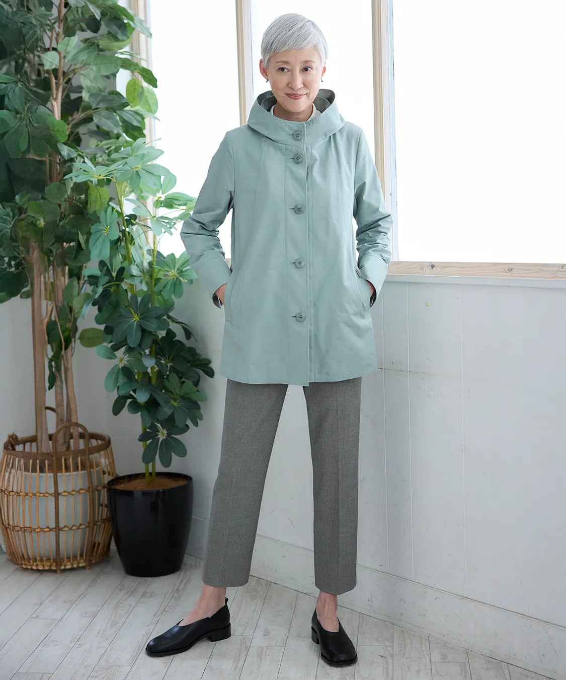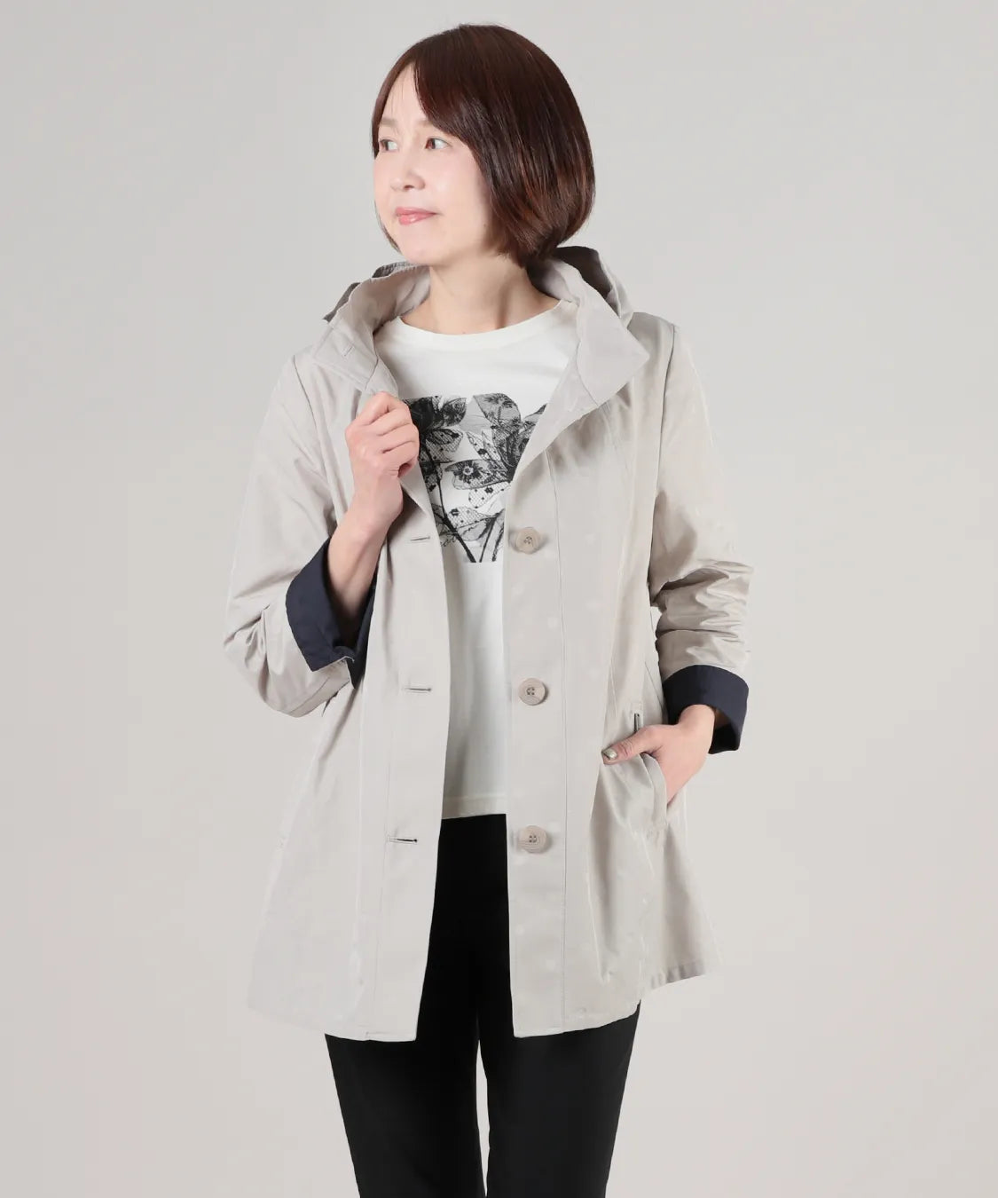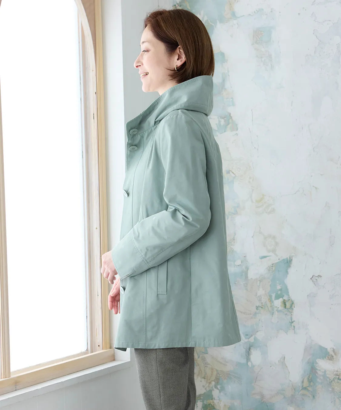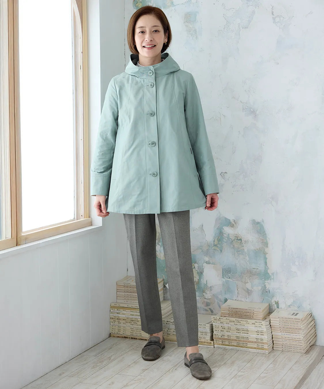 フードデザインが程よいカジュアル感を演出しつつ、きちんと感も兼ね備えた一枚です。