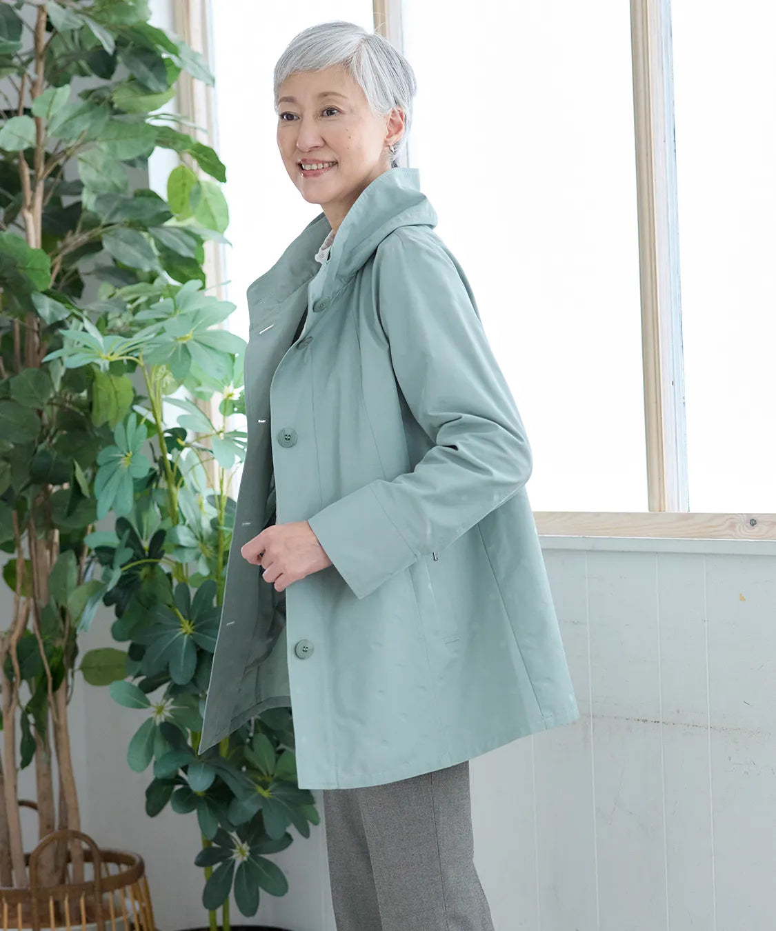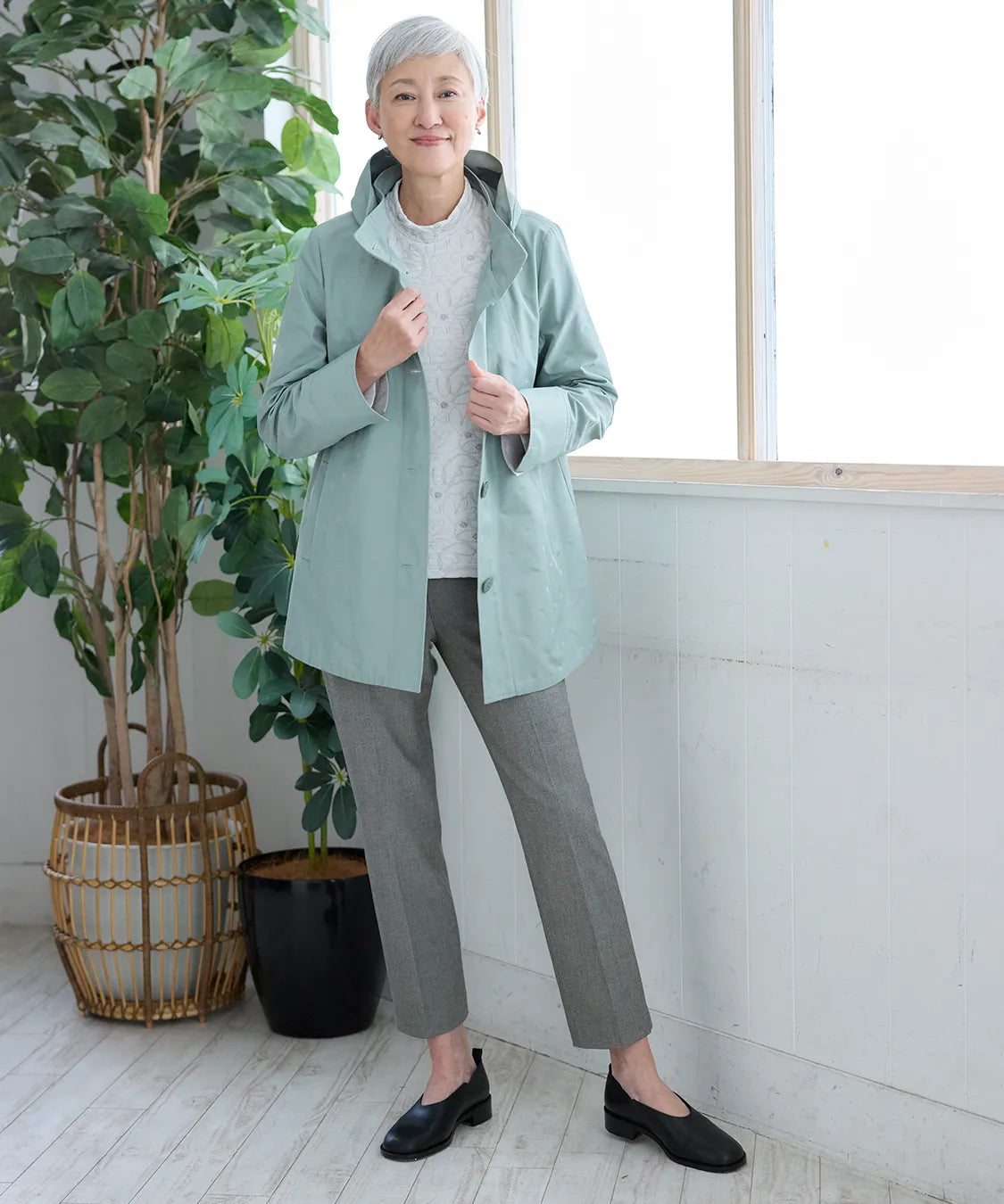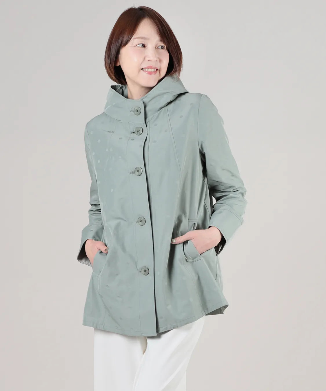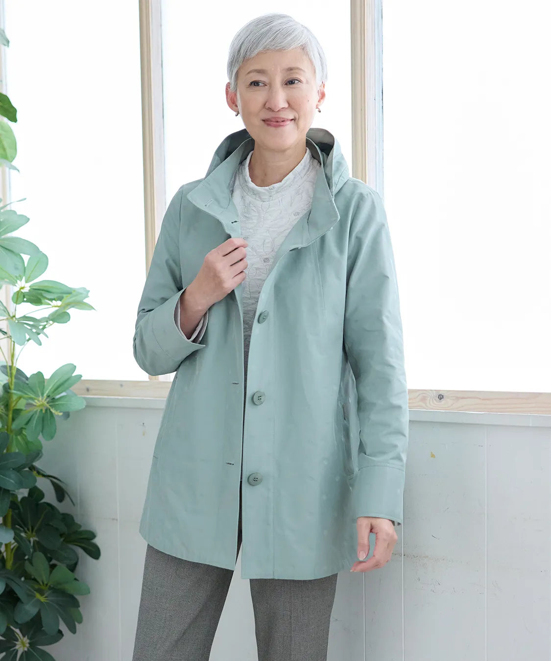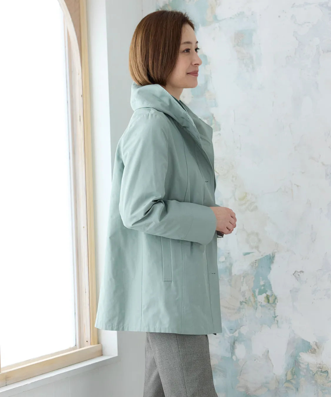 フードデザインが程よいカジュアル感を演出しつつ、きちんと感も兼ね備えた一枚です。
