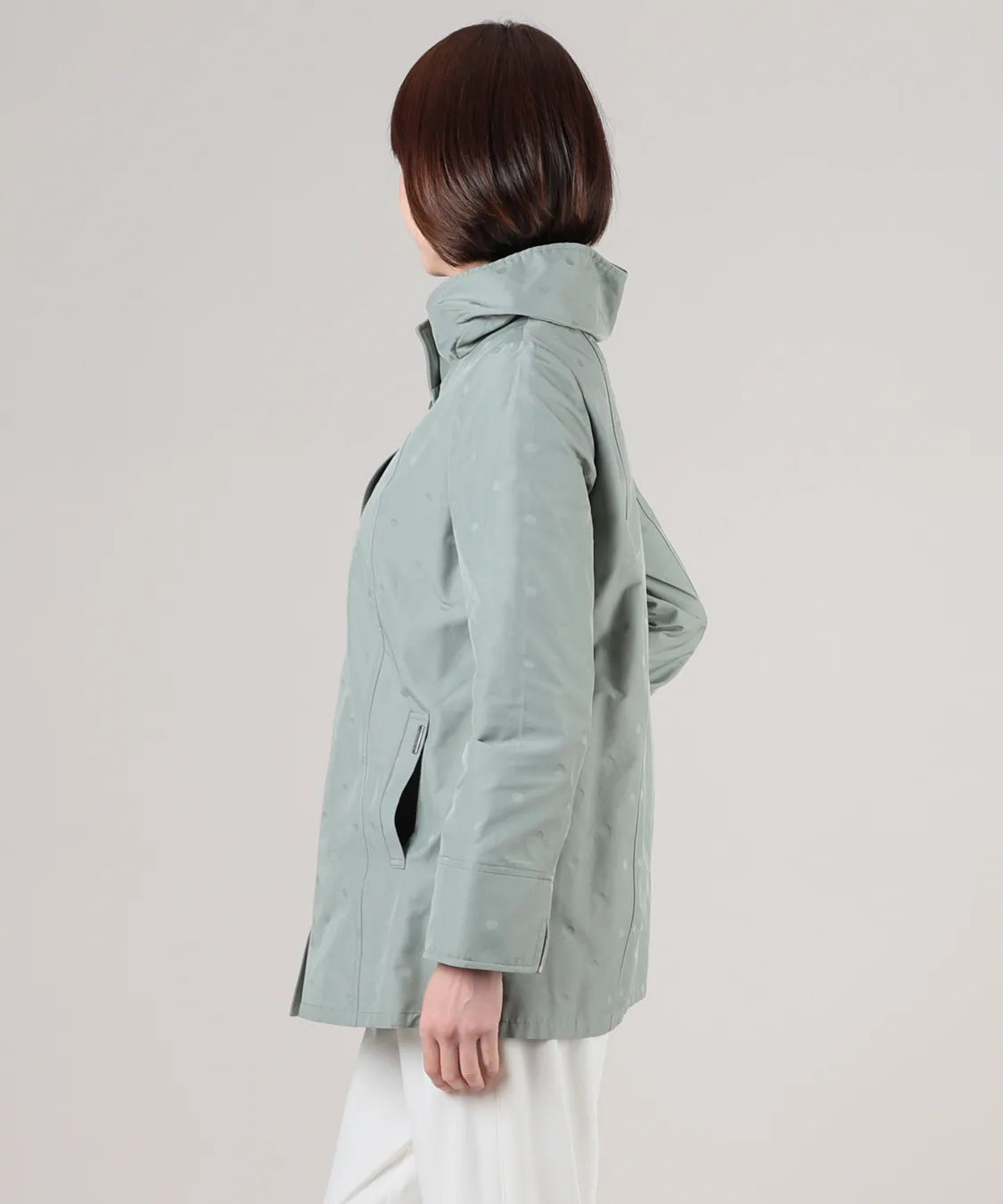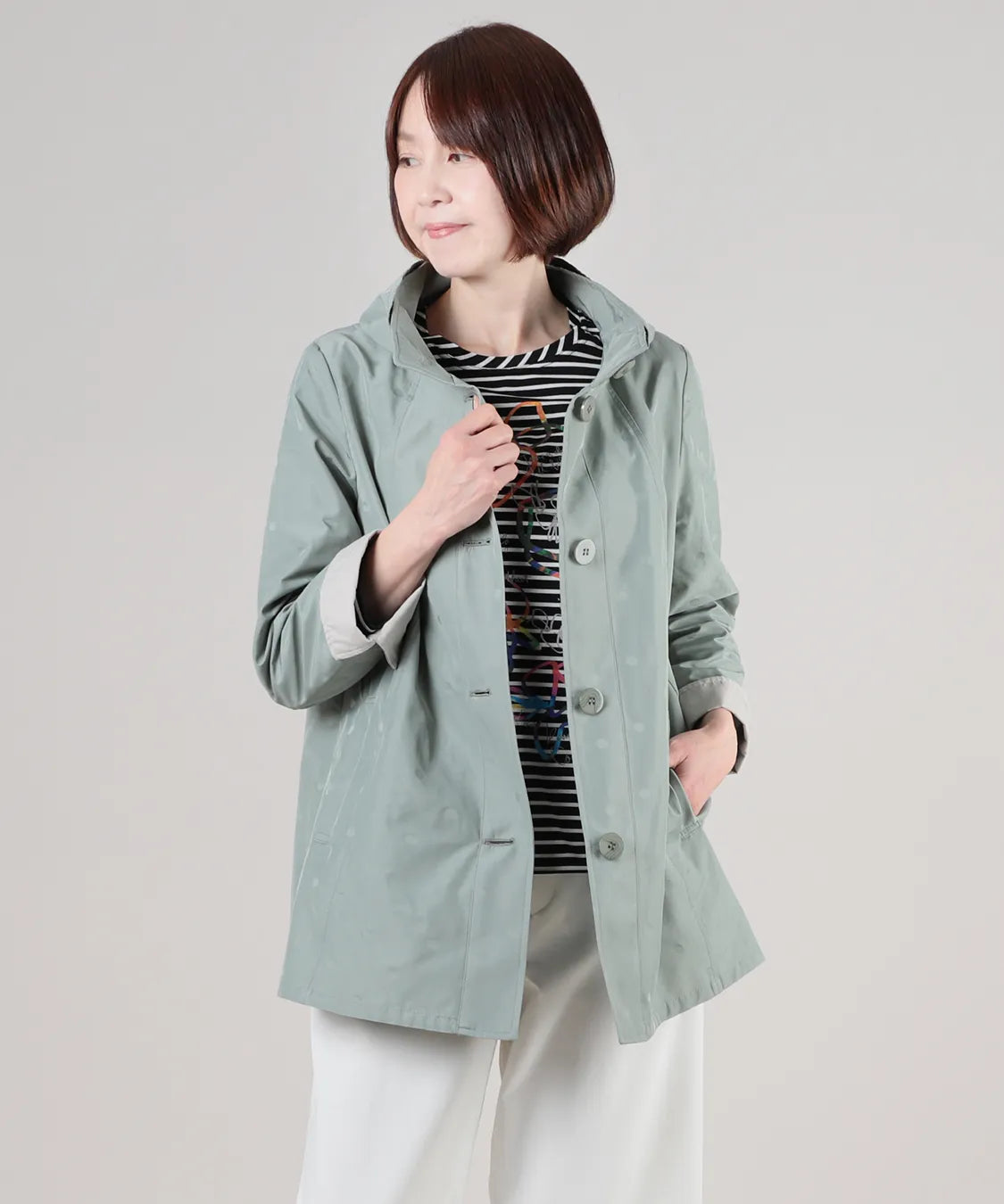 立体感のあるドットジャカード素材が上品な印象を与えるジャケット。