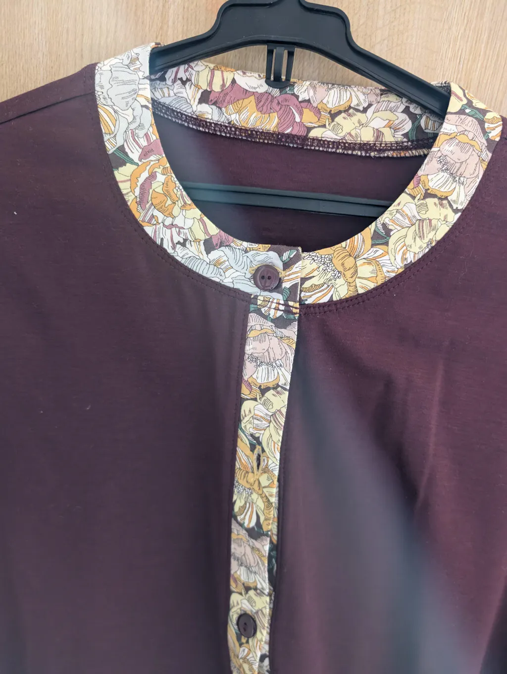 品があり、着るだけでぱっと華やかになれるカーディガン。上品な配色使いで、着こなしがぐっと洗練された印象に。襟ぐりと前立て、袖の部分には、リバディ柄を使用しました。柔らかく肌触りが良く、着心地抜群です。