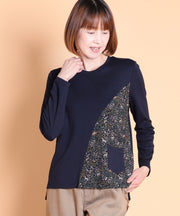 無地とリバティ柄の絶妙な切り替えがポイントのプルオーバー。