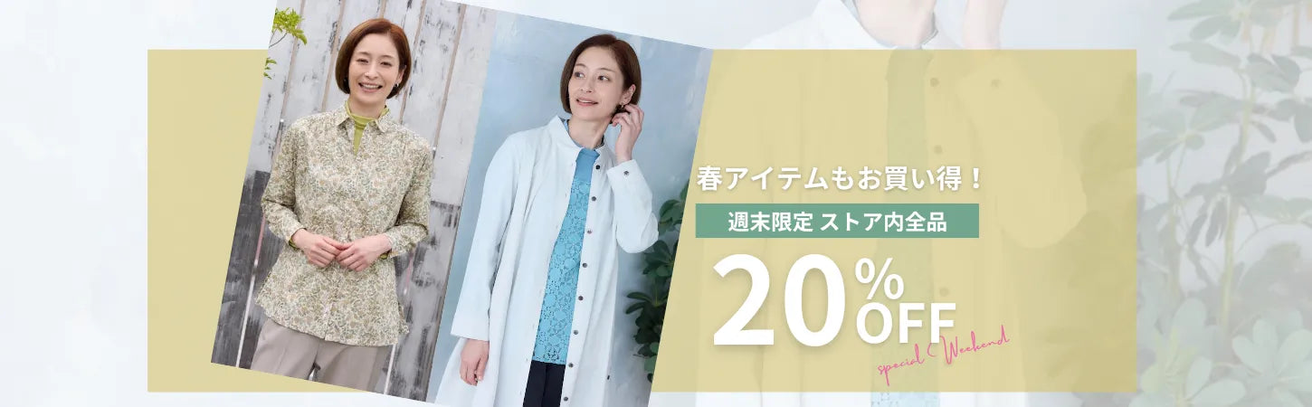 春のお買い物をお楽しみいただけるよう、 期間限定でストア内全品20%OFFとなる 特別イベントを開催。