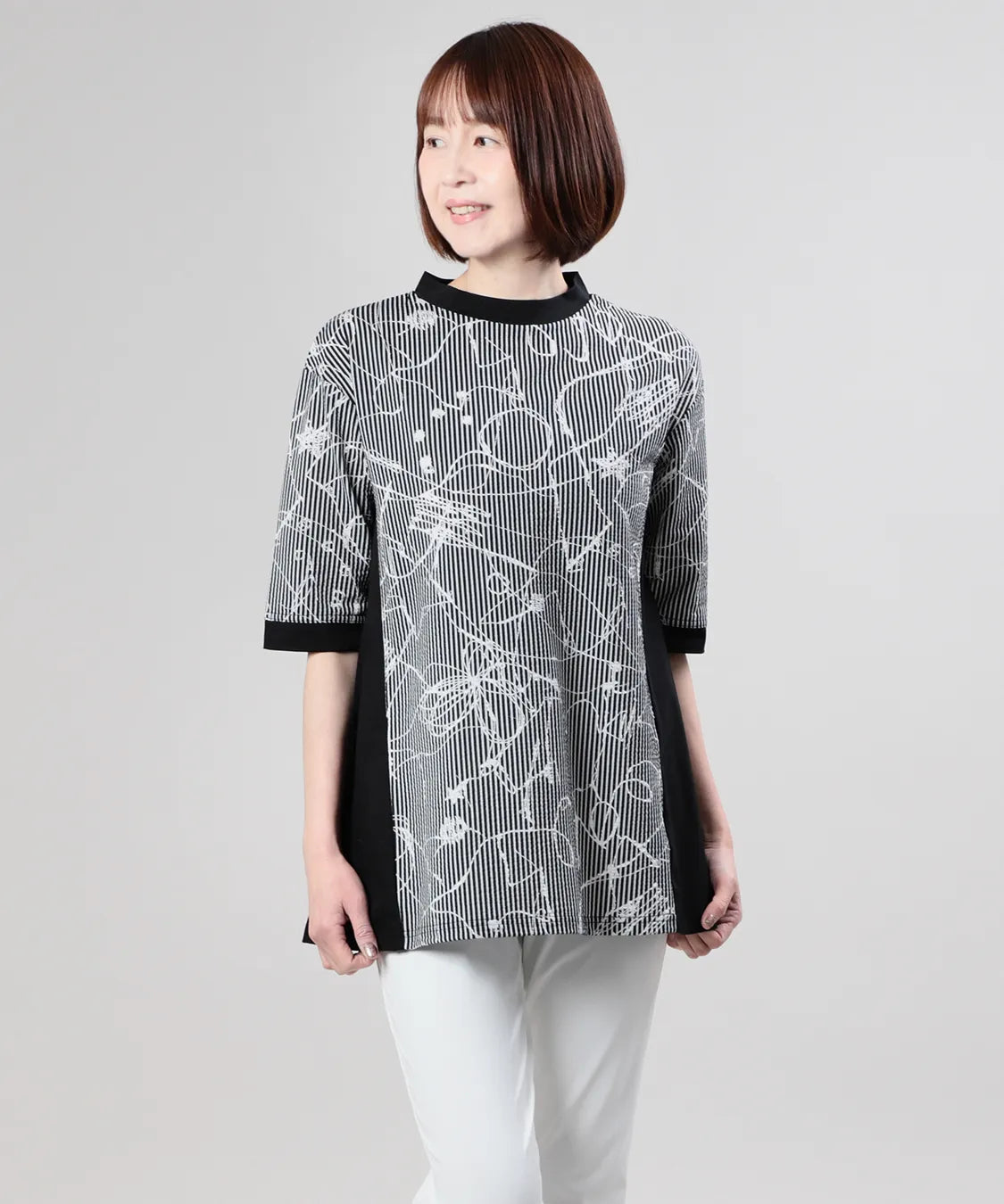 程よくゆとりのあるシルエットが身体のラインをやさしくカバーし、自然なドレープが大人の女性らしさを演出。パンツと合わせるだけで、軽やかで洗練されたスタイリングが完成します。