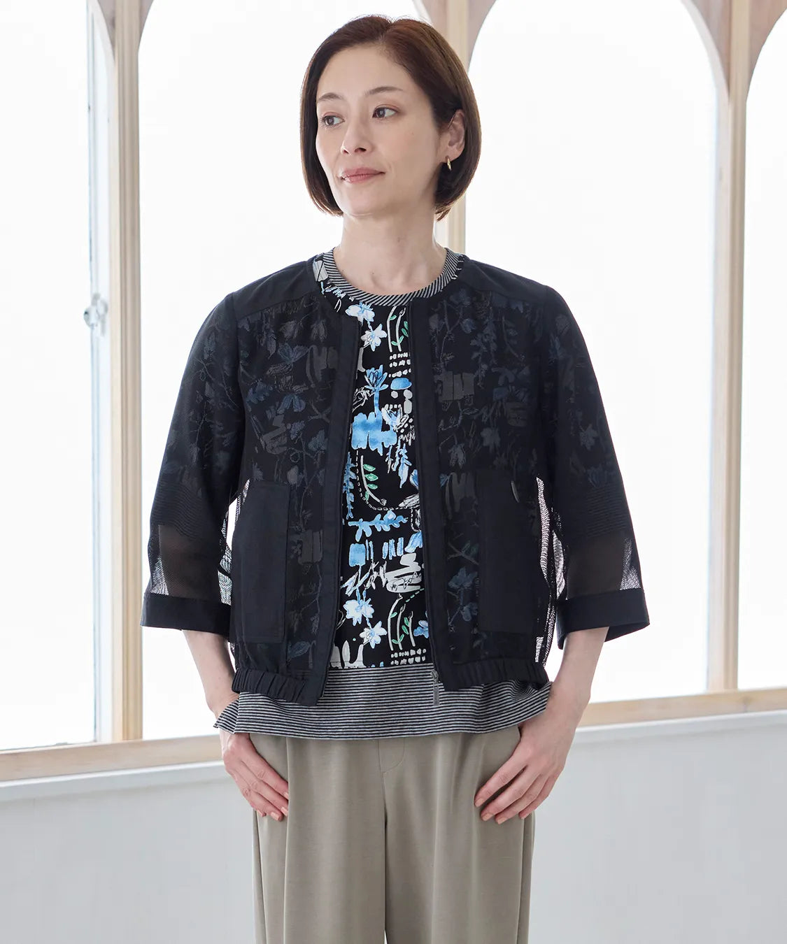 軽やかな着心地と上品な透け感が魅力のメッシュブルゾン。