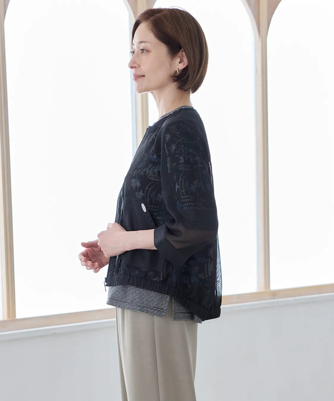 冷房対策や日差しよけとしても活躍し、季節の変わり目に頼れる大人の軽やかアウターです。