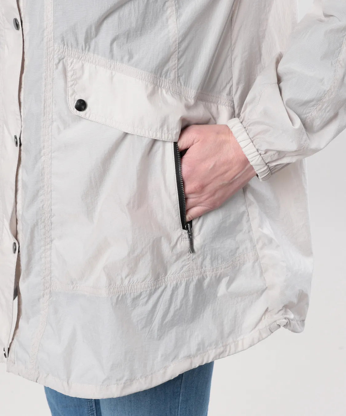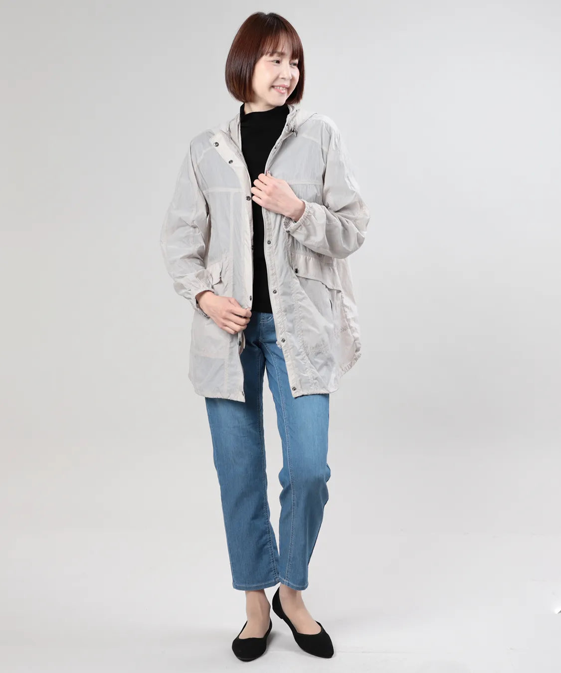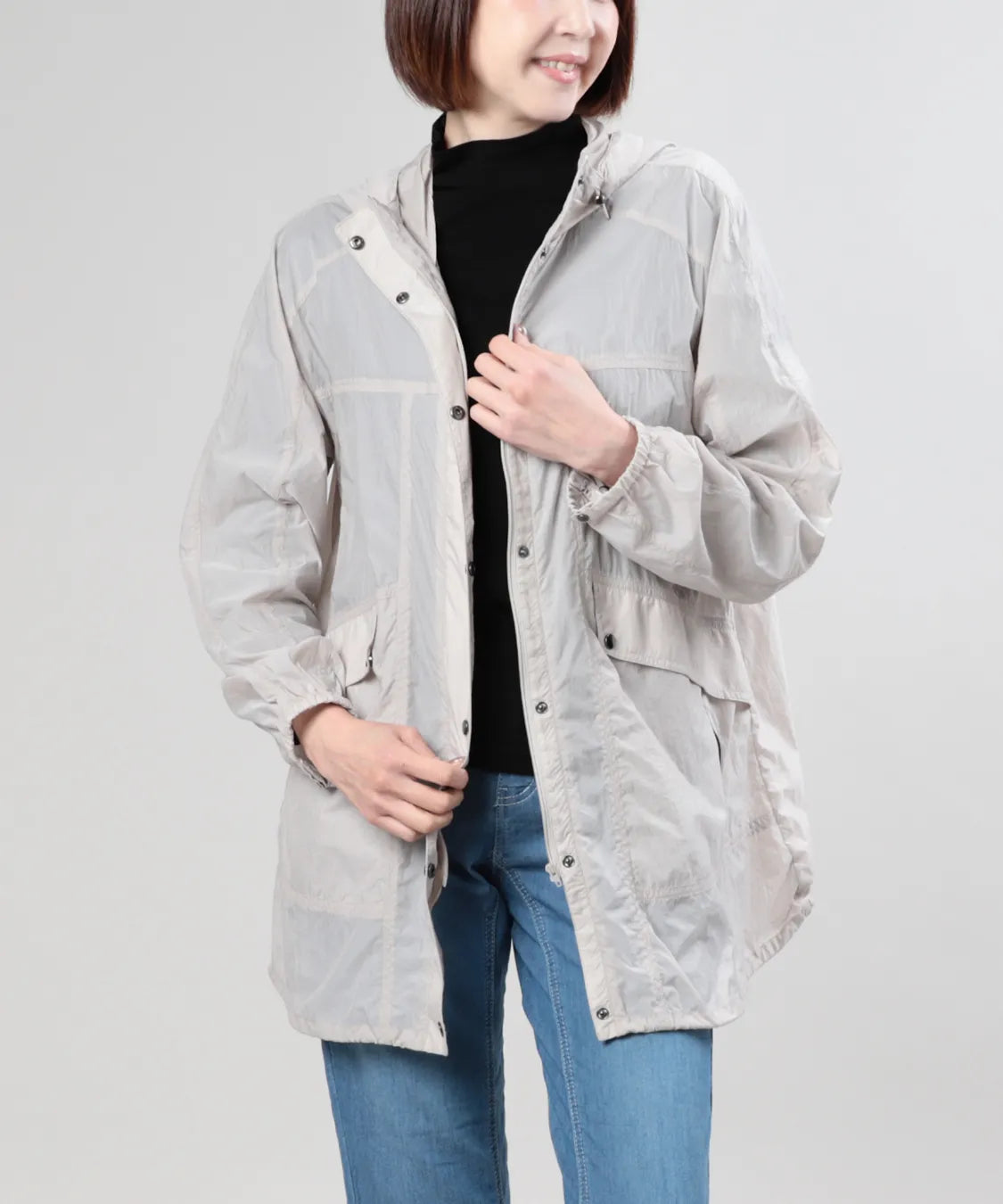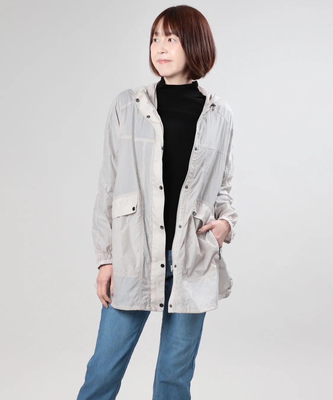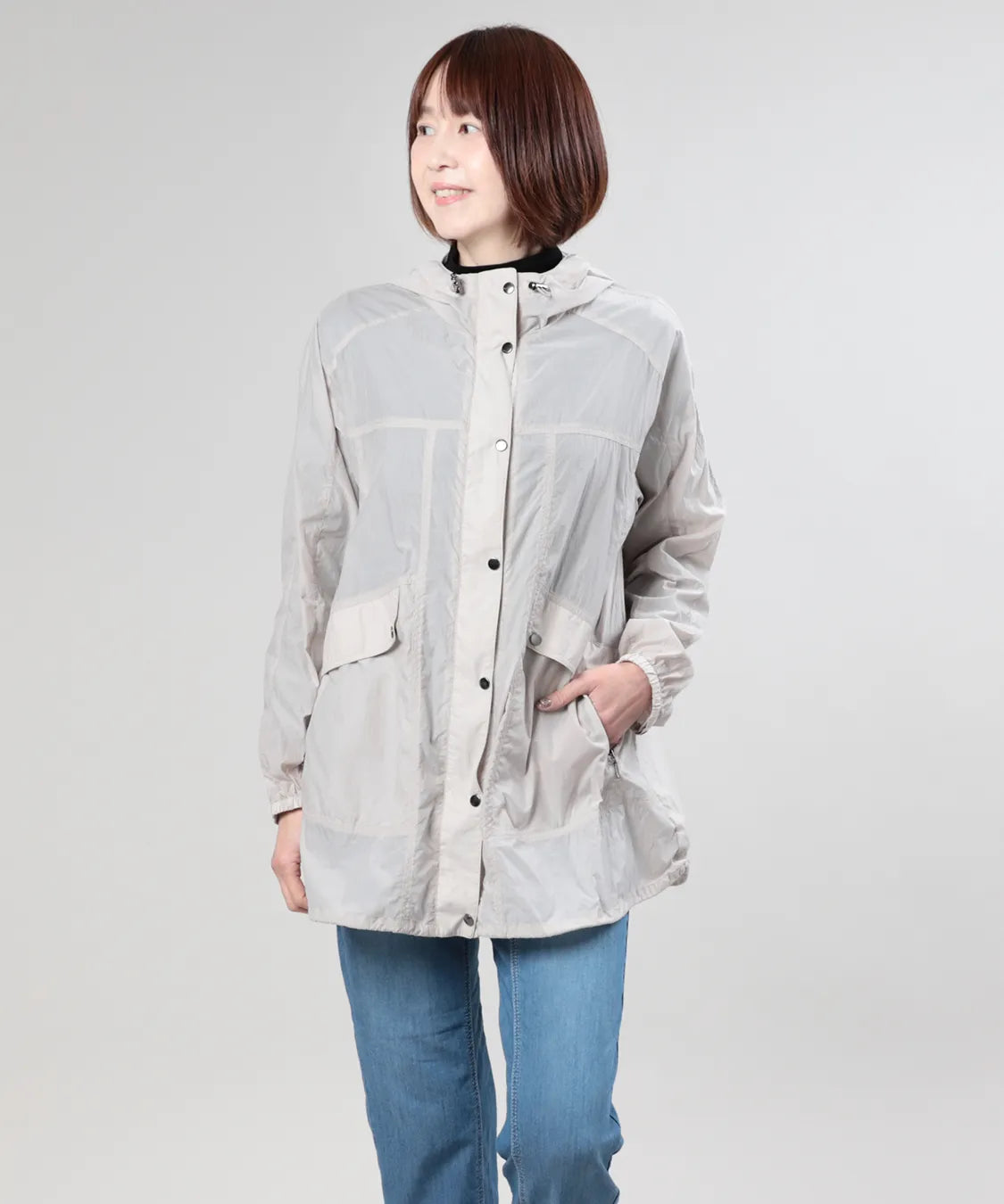 軽やかな着心地が魅力のタフタジャケット。薄手で軽量なタフタ素材を使用し、さっと羽織れる快適な着心地に仕上げました。フード付きのカジュアルなデザインながら、すっきりとしたシルエットで大人らしい上品な印象に。軽やかな素材感で季節の変わり目にも活躍し、デニムやパンツスタイルにも自然に馴染みます。日常のお出かけや旅行など、さまざまなシーンで活躍する大人のライトアウターです。