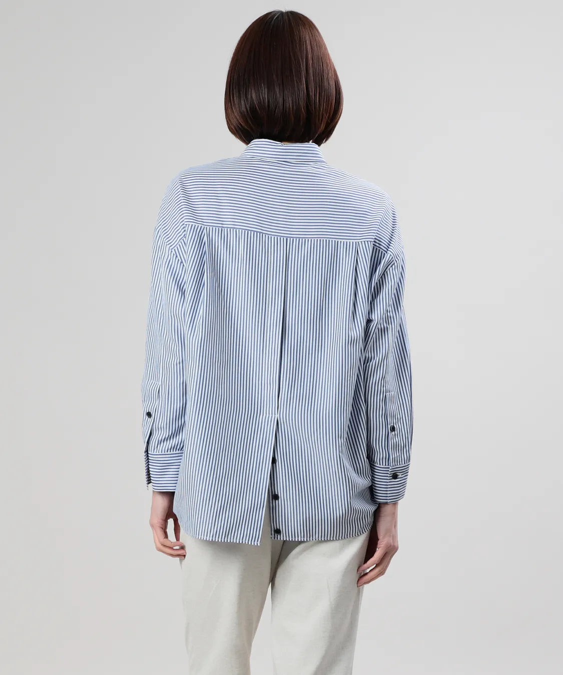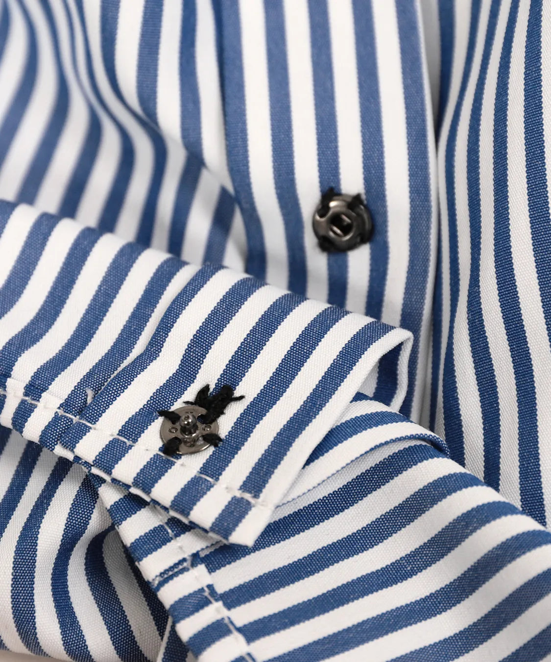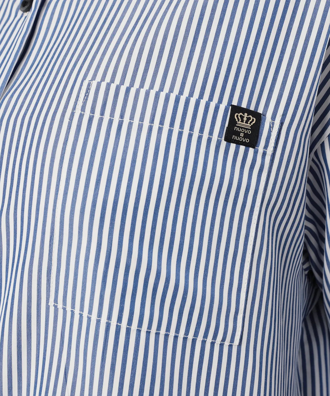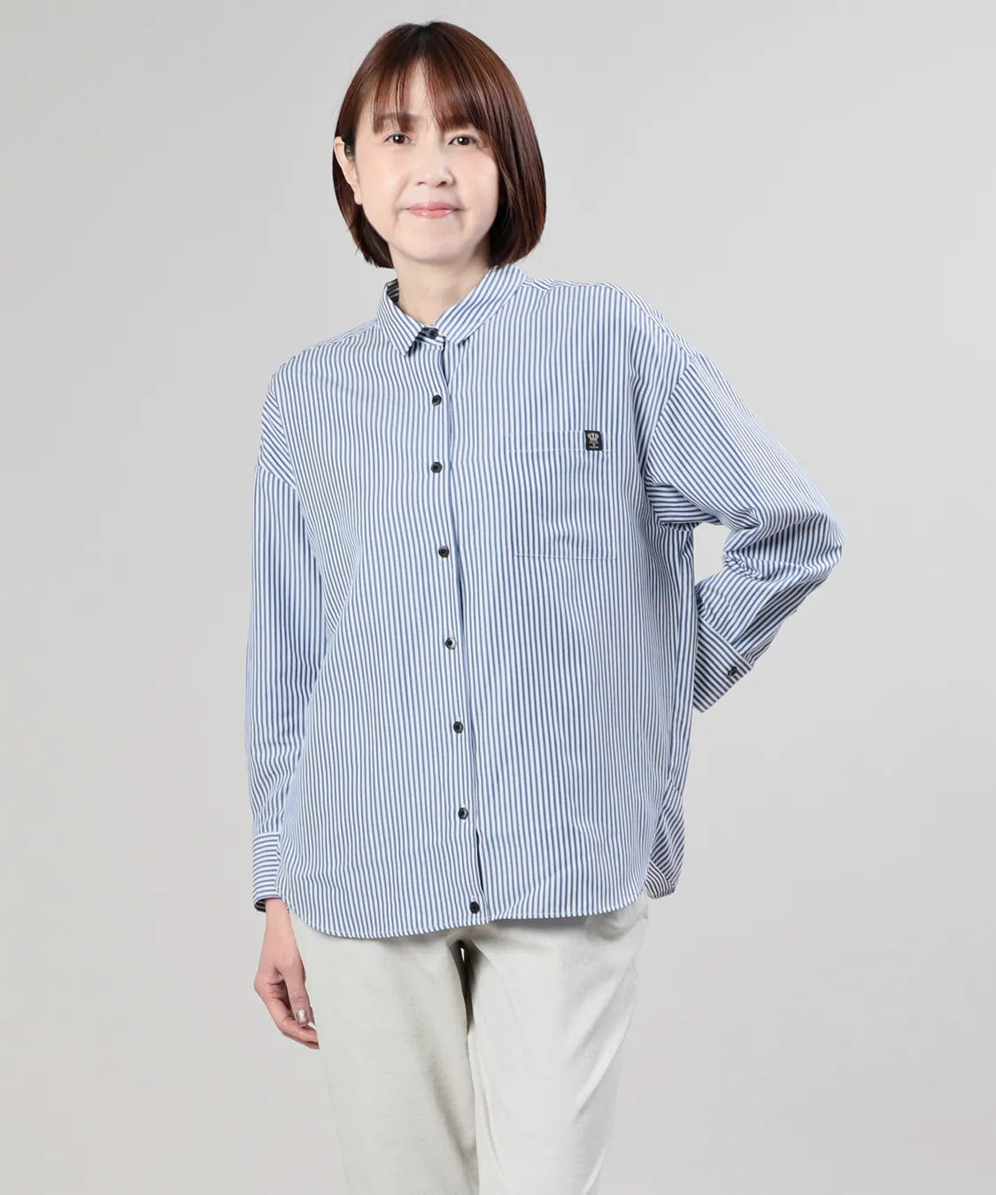 爽やかなストライプ柄が印象的な2WAYシャツ。すっきりとした縦ラインが大人らしい上品さを演出し、軽やかな着こなしを叶えます。裾のスナップボタンでシルエットをアレンジでき、スタイリングに合わせて表情を変えられるのも魅力。ゆとりのあるシルエットでリラックス感がありながら、きちんと感も兼ね備えた一枚です。パンツスタイルにも合わせやすく、日常からお出かけまで幅広く活躍する大人のデザインシャツです。