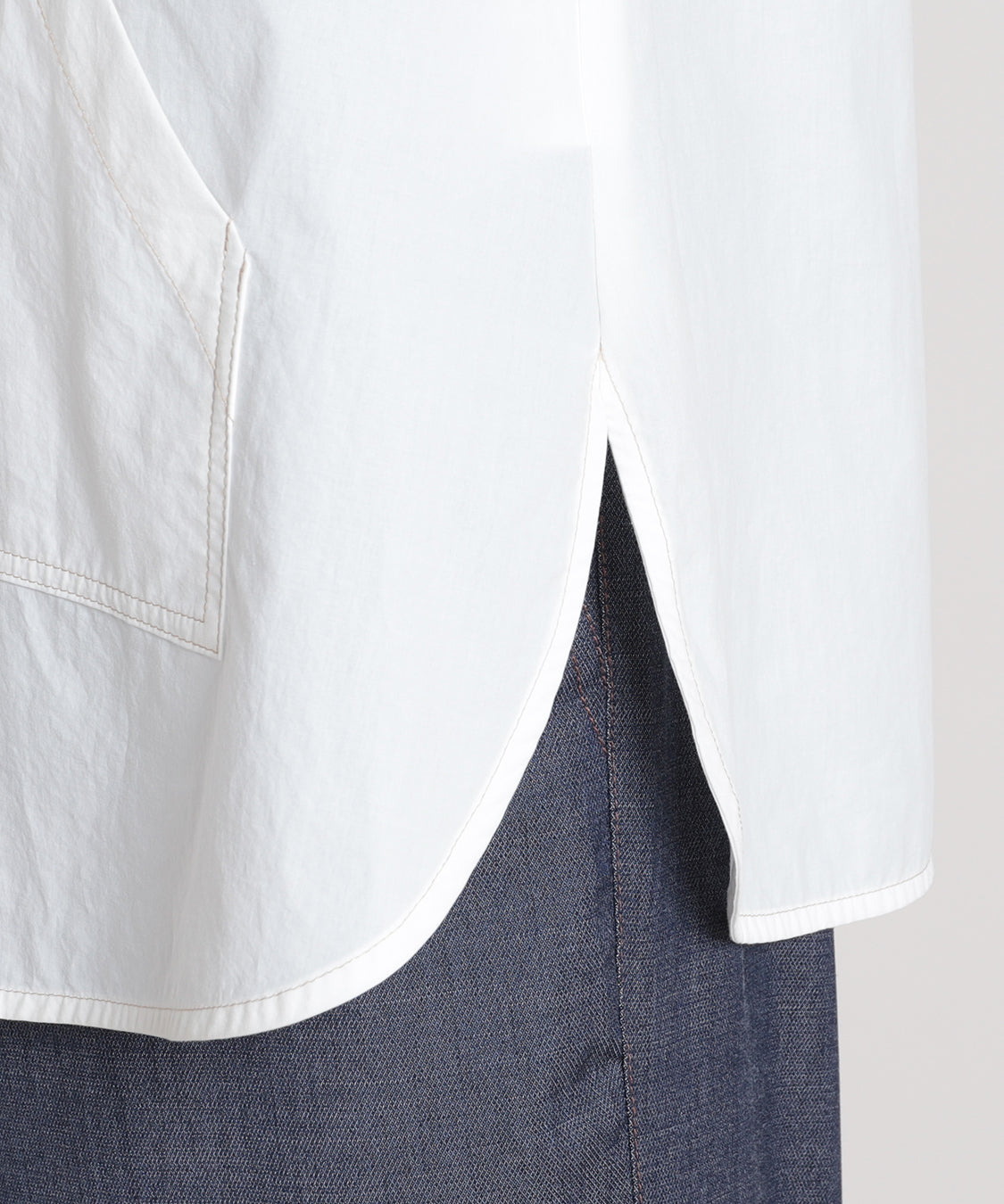 爽やかなカラーが春らしいシャツ。一枚でもサマになるデザインです。さらっとハリ感の綿素材で着心地◎フロントはスタンダードなシャツの雰囲気なので、ワンピースやカットソーの羽織としても◎