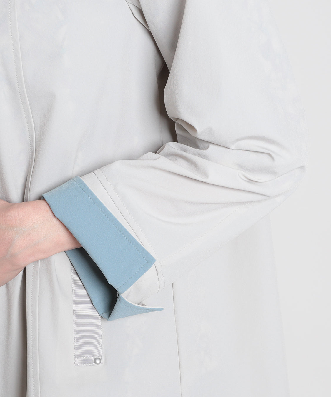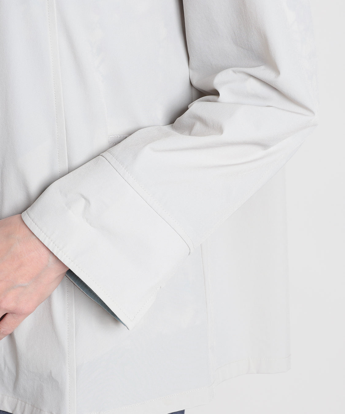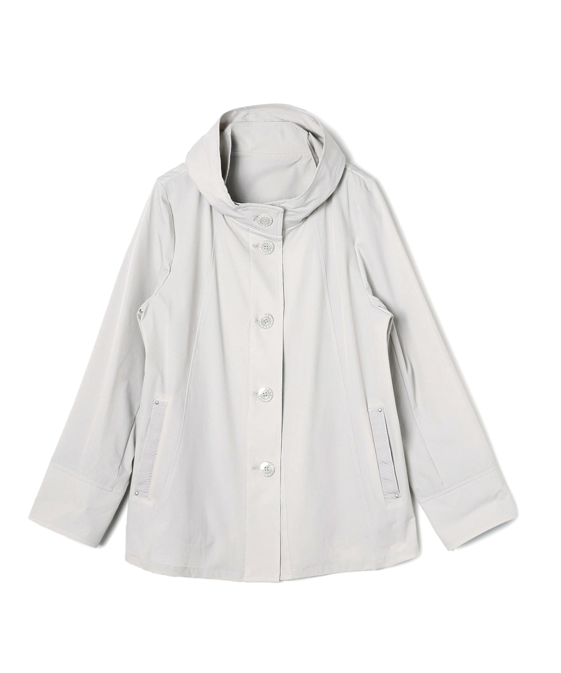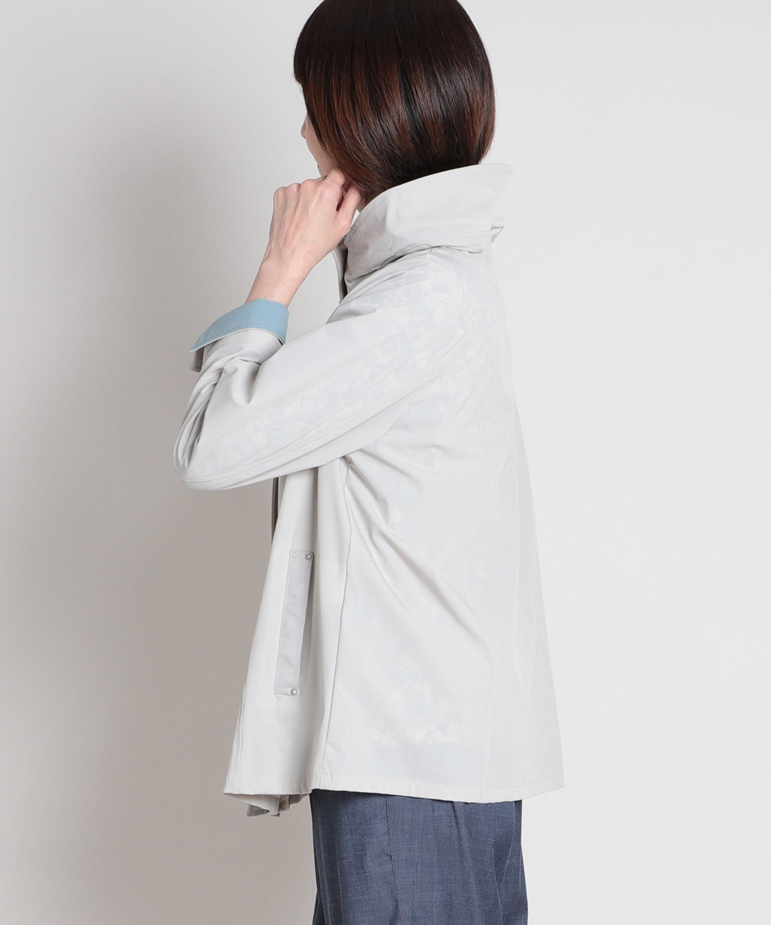 春らしい色柄のトップスと合わせたいスプリングコート。ナイロンストレッチ素材で、柔らかく軽やかな羽織り心地が特徴。袖口を一折りすれば裏色がアクセントに。裏地はなく、軽快に羽織っていただけます。