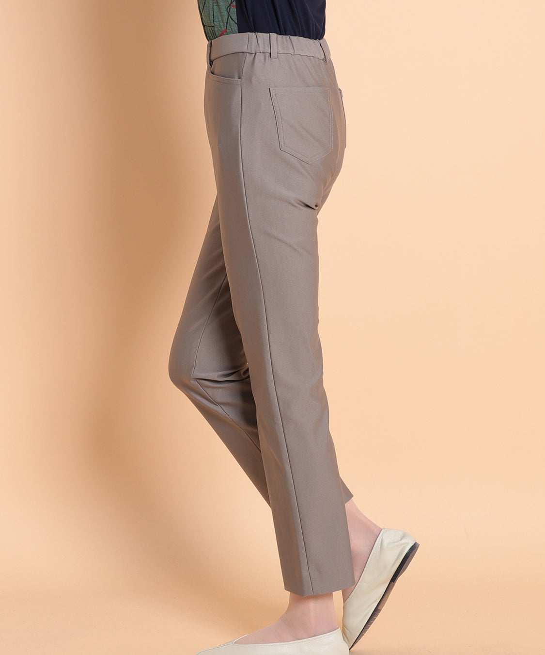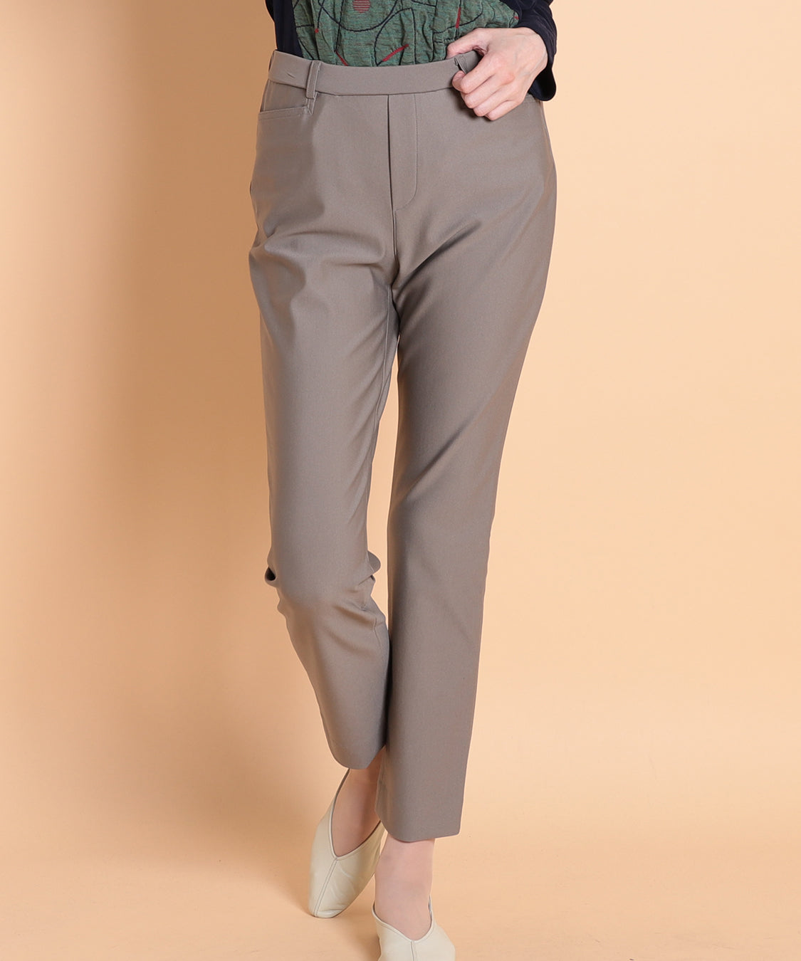 素材の伸縮性を活かした細身のストレッチパンツ。さらさらとした滑らかな肌触りで、程よいホールド感と動きやすさにやみつきです。秋に着たいこっくりカラーで幅広いトップスとも相性抜群◎