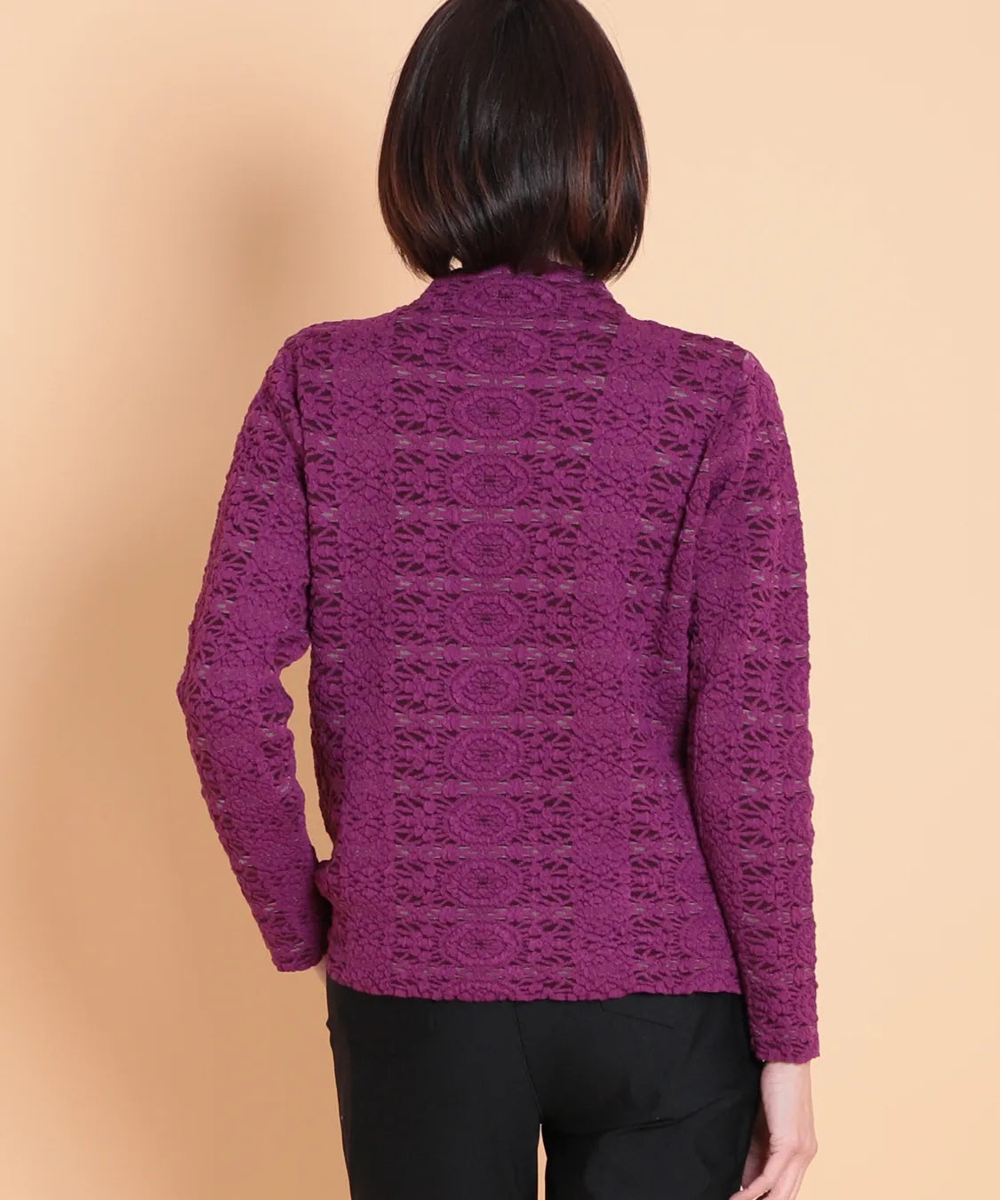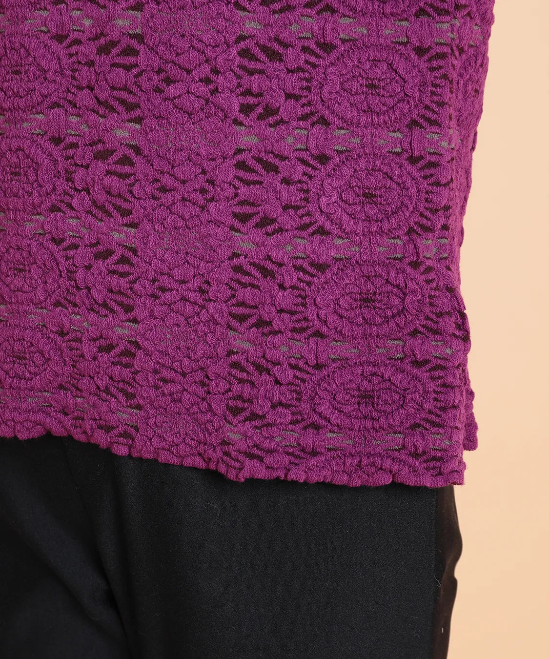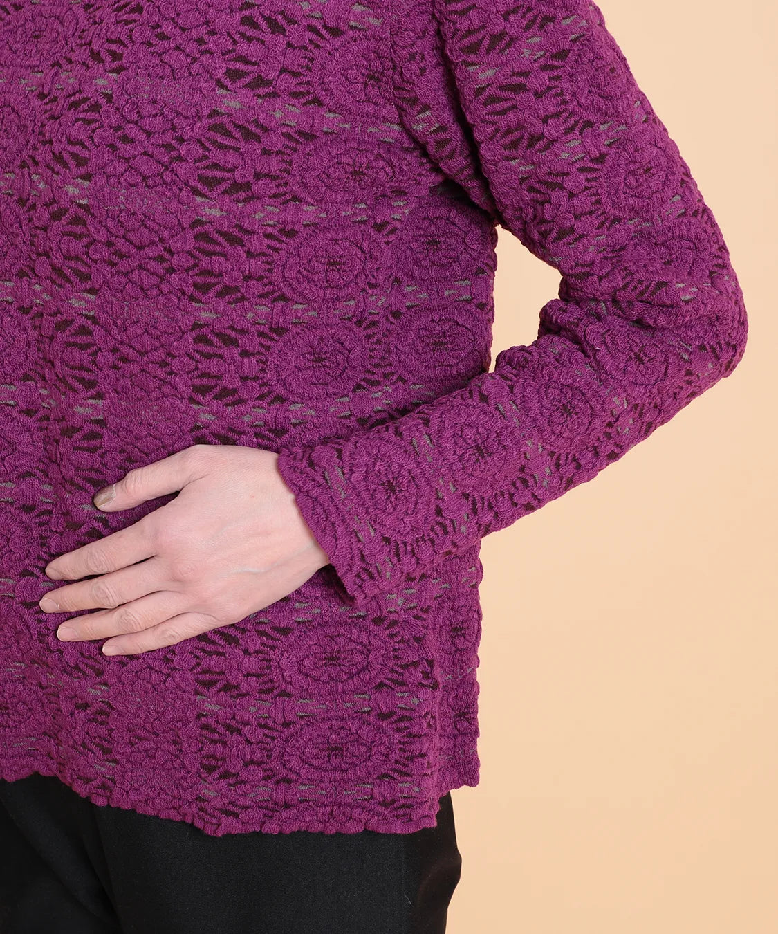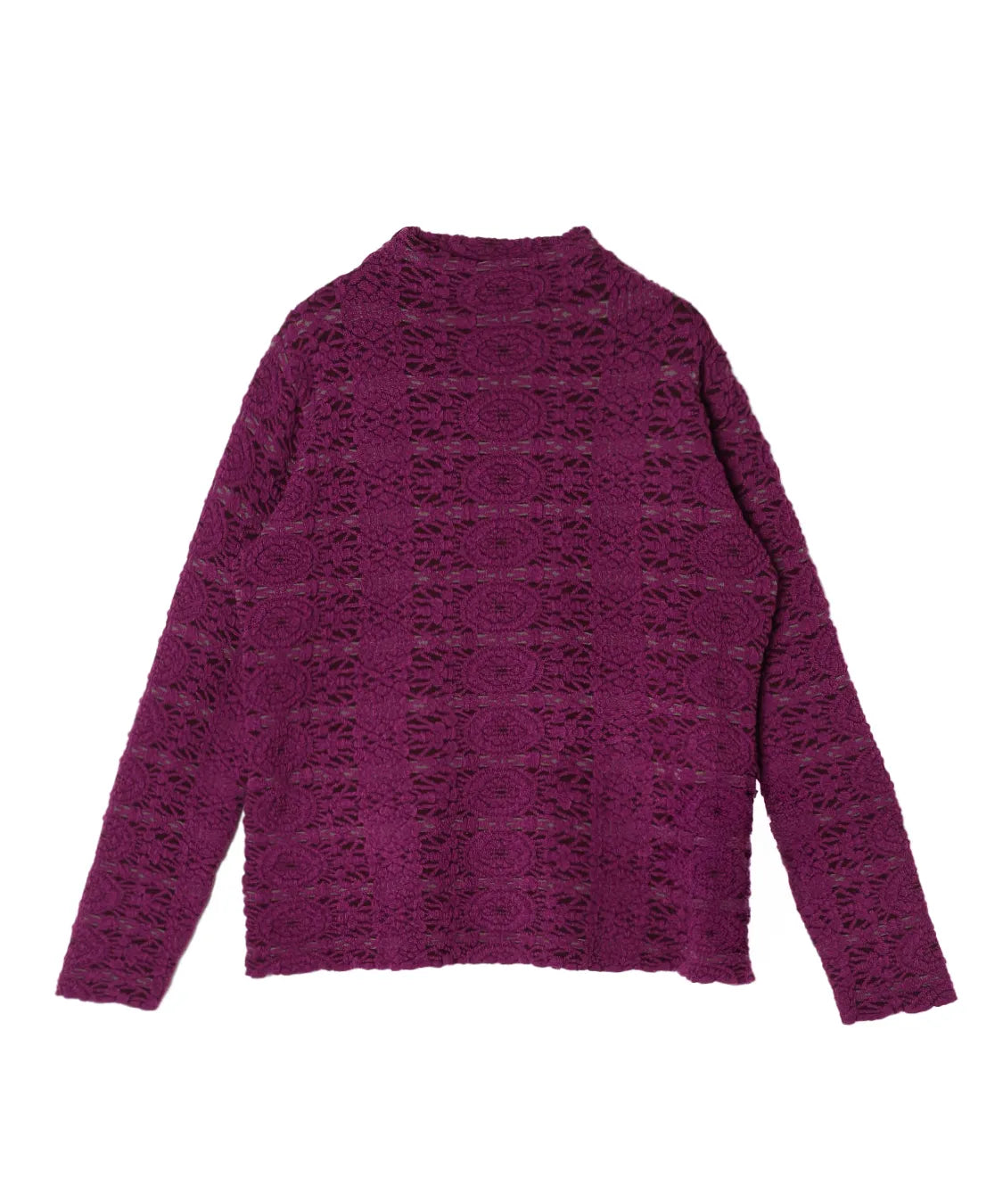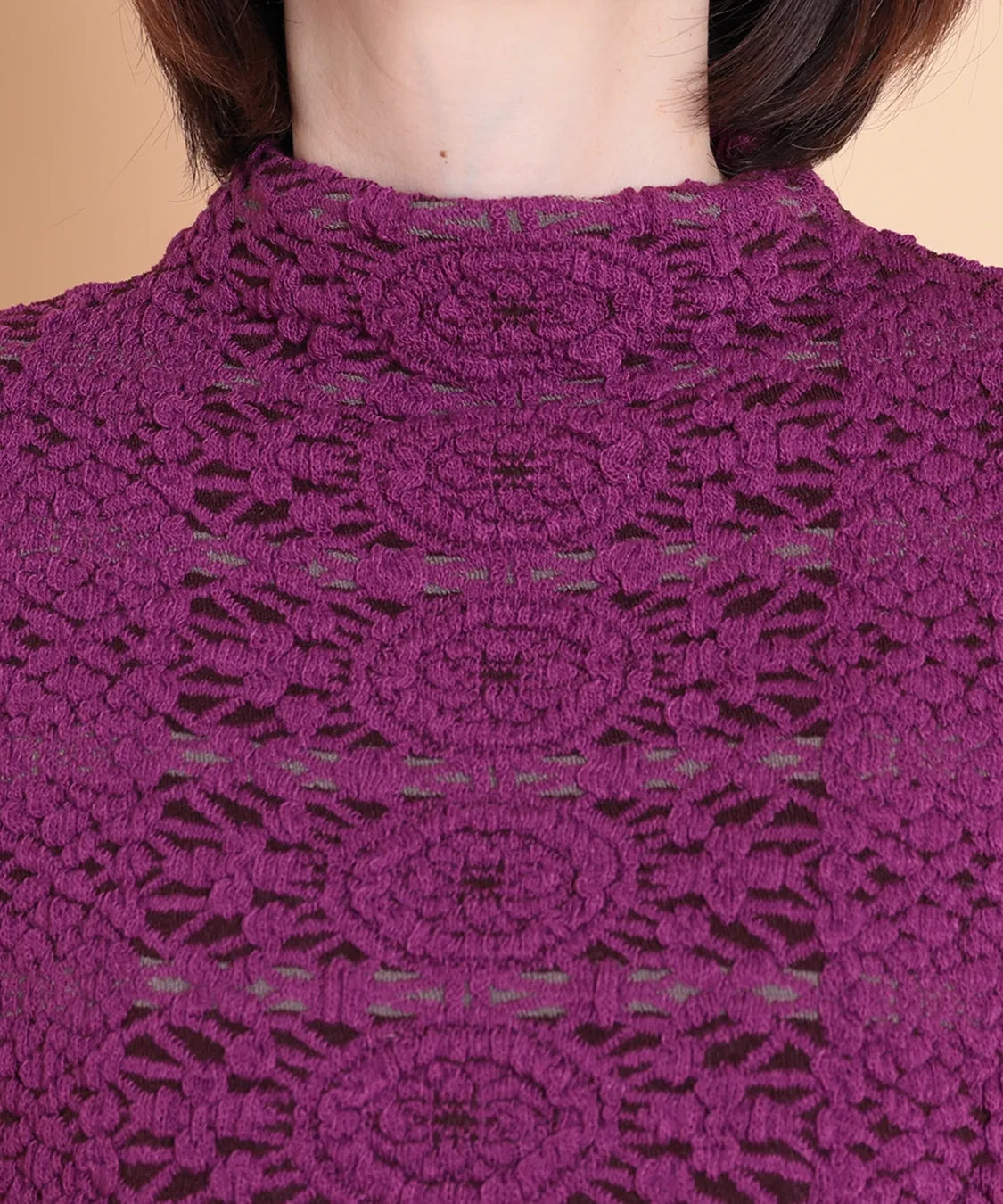 繊細なレース素材が、装いにさりげない華やかさを添える長袖トップスです。
